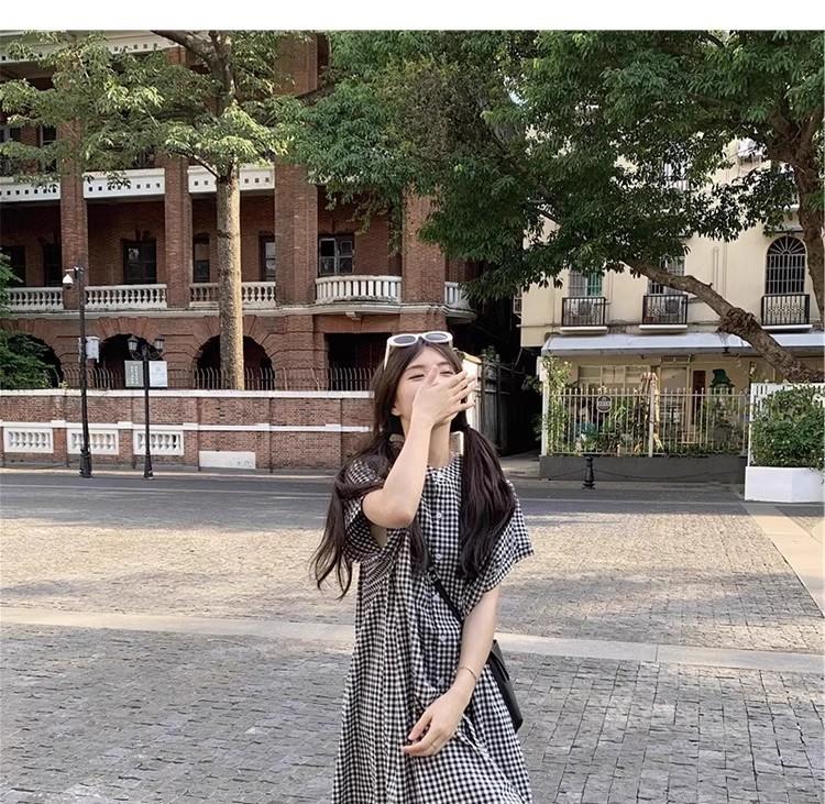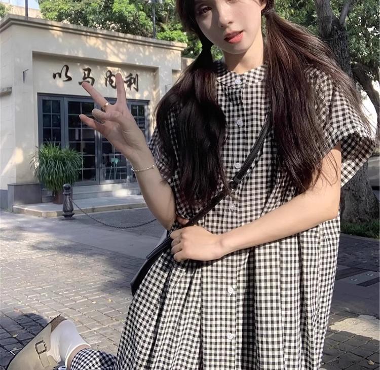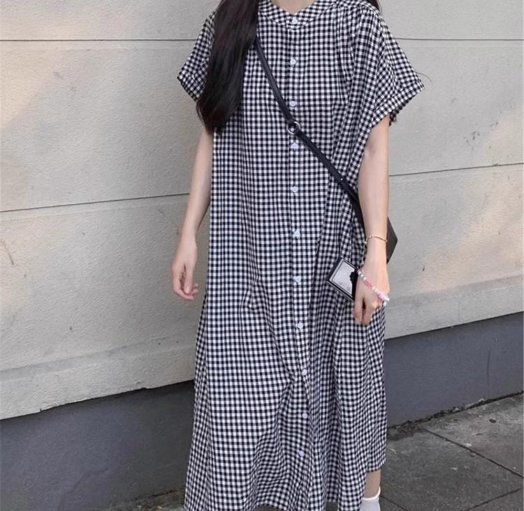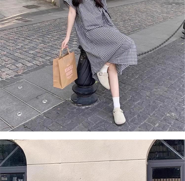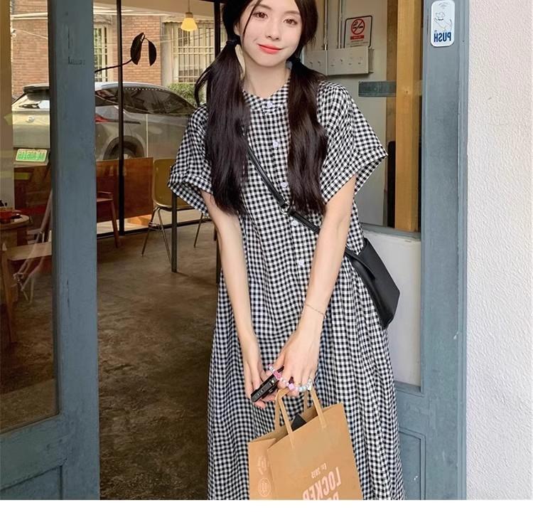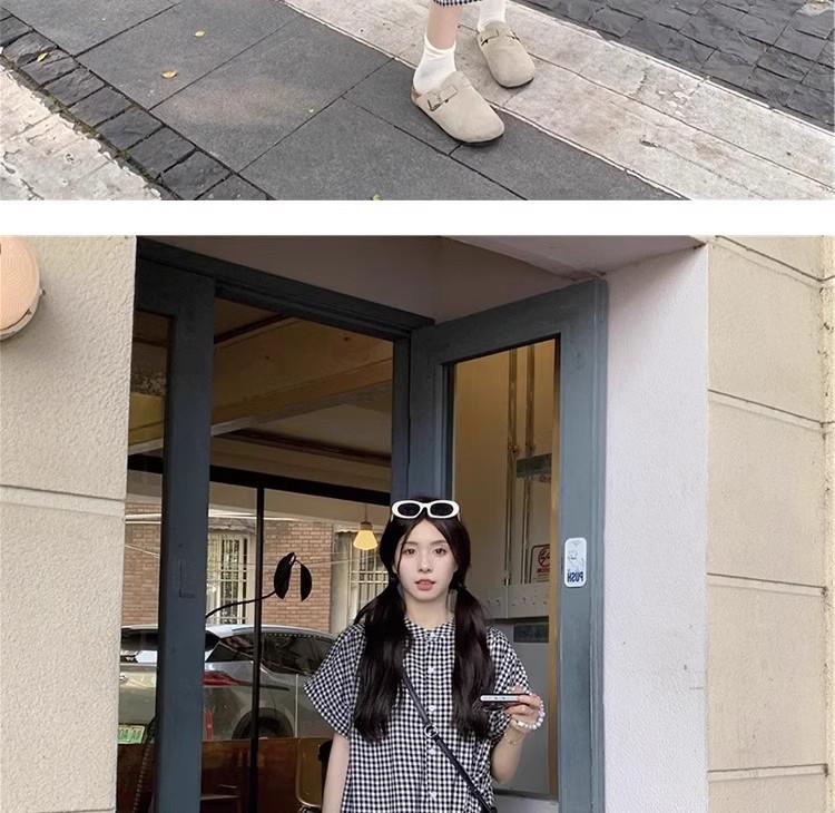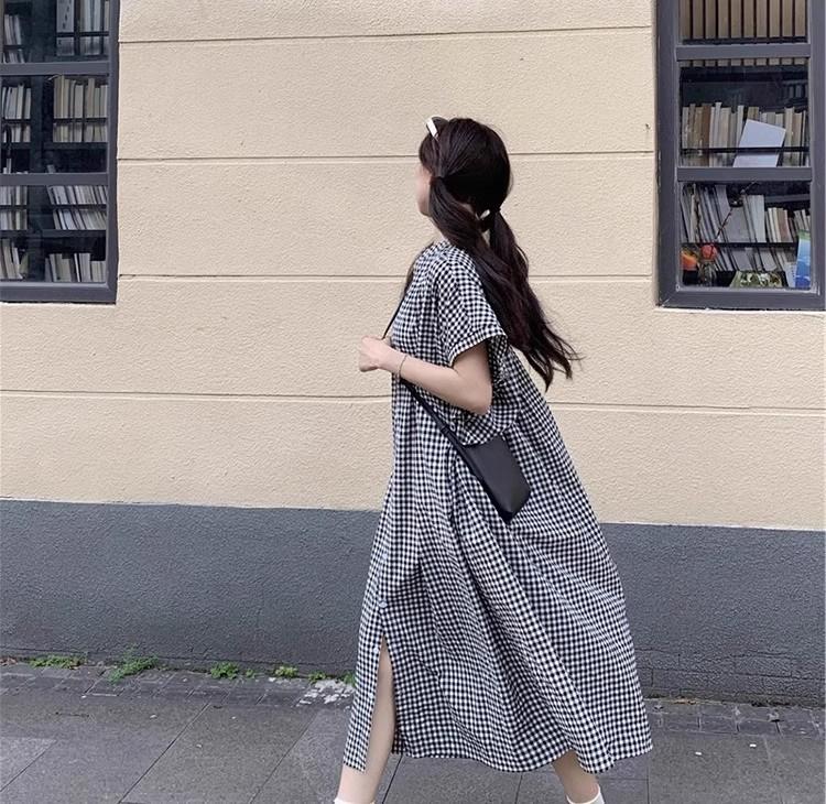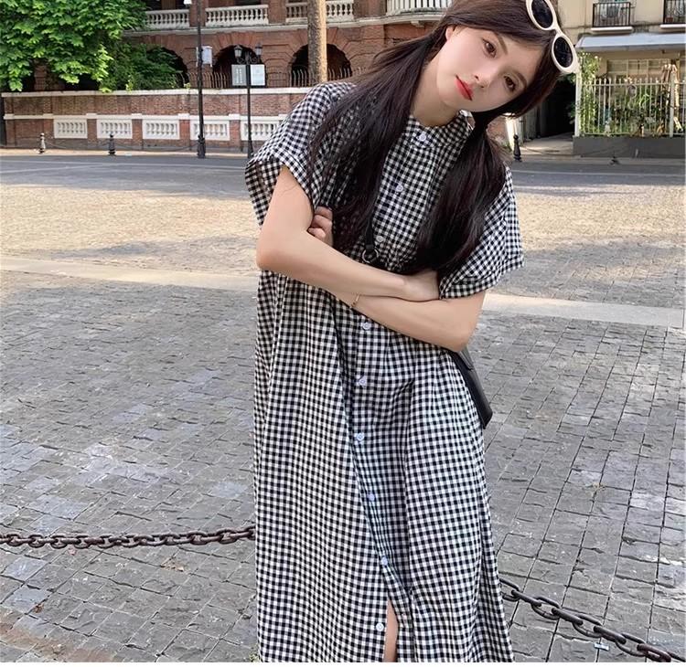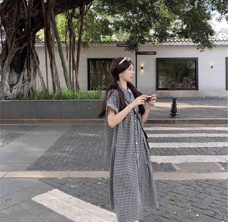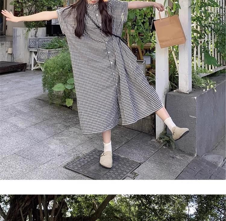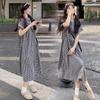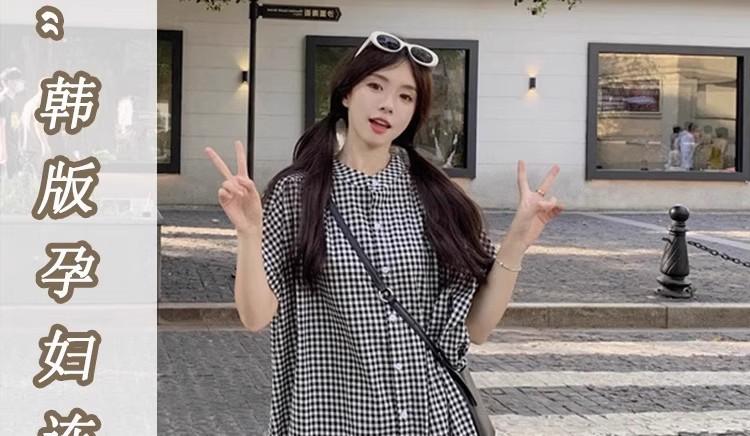 Vestido de Verano de Maternidad 2025 Nueva Moda Holgado Cubre Vientre Vestido Camisero a Cuadros Falda de Maternidad de Verano