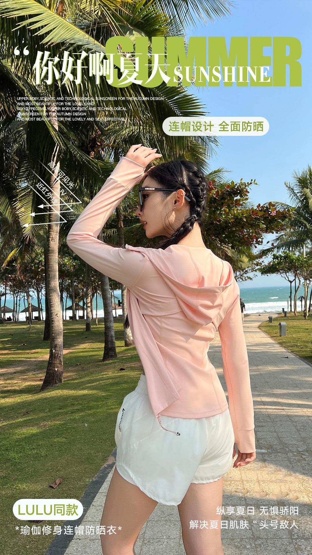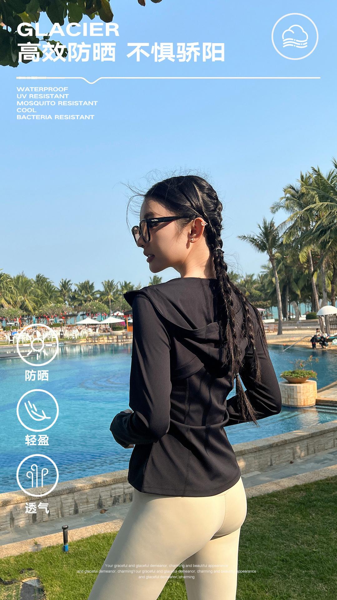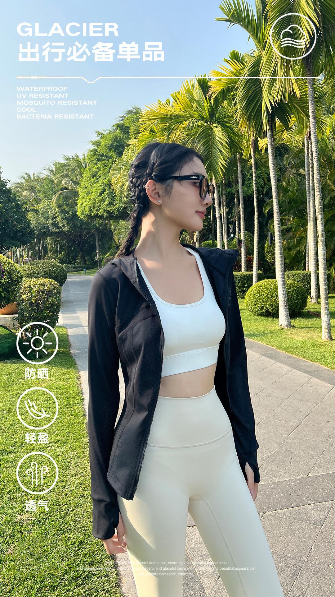Ropa de Protección Solar para Mujer Verano Nuevo Delgada Seda de Hielo Ajustada Cintura Ceñida Ropa de Yoga Protección UV Ropa de Protección Solar Chaqueta Deportiva