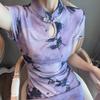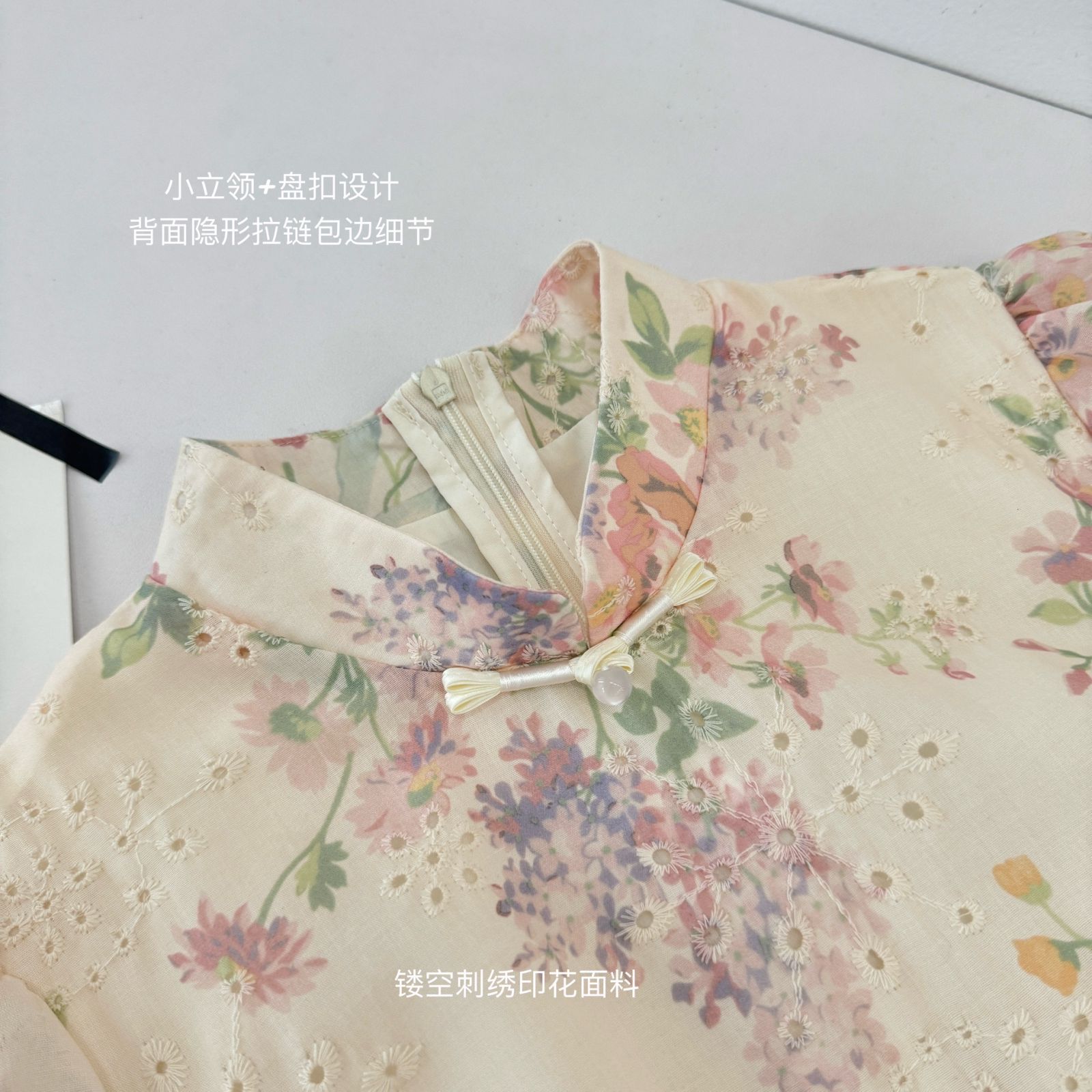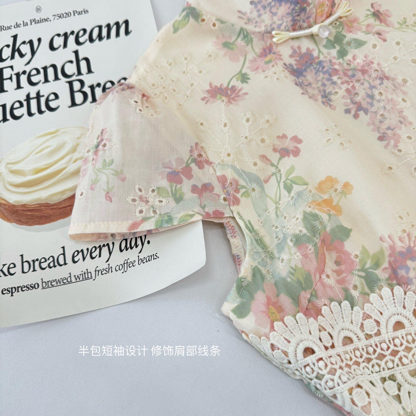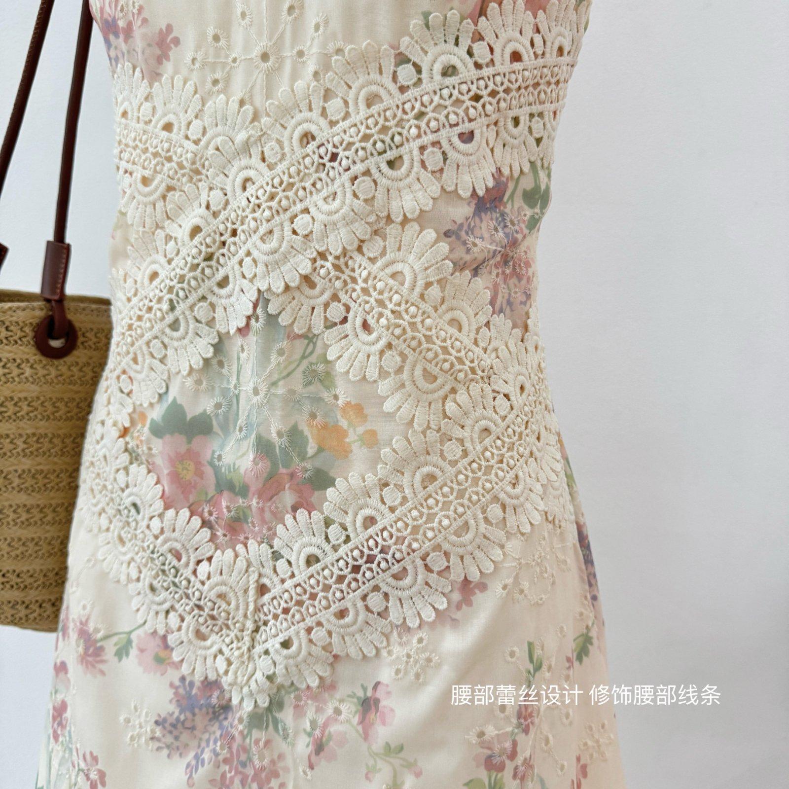 Vestido Cheongsam Retro Modificado de Estilo Chino Nuevo para Mujer 2025 Verano Encaje Costura Cintura Vestido Irregular