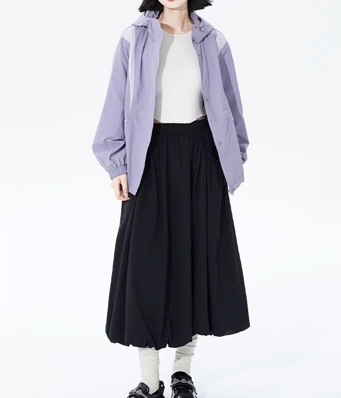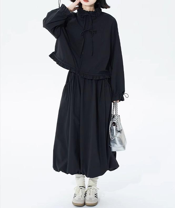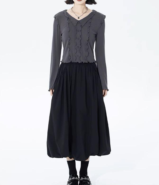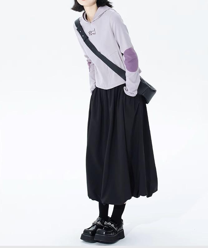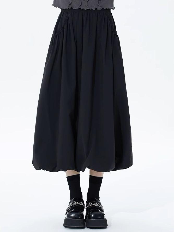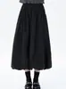 Falda Negra Plisada de Capullo Primavera Larga Cintura Elástica Suelta Retro Petite A-Line