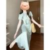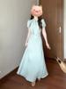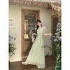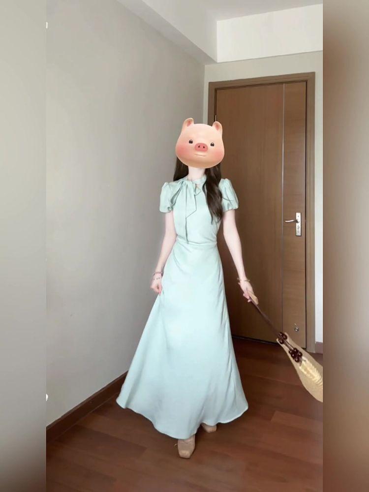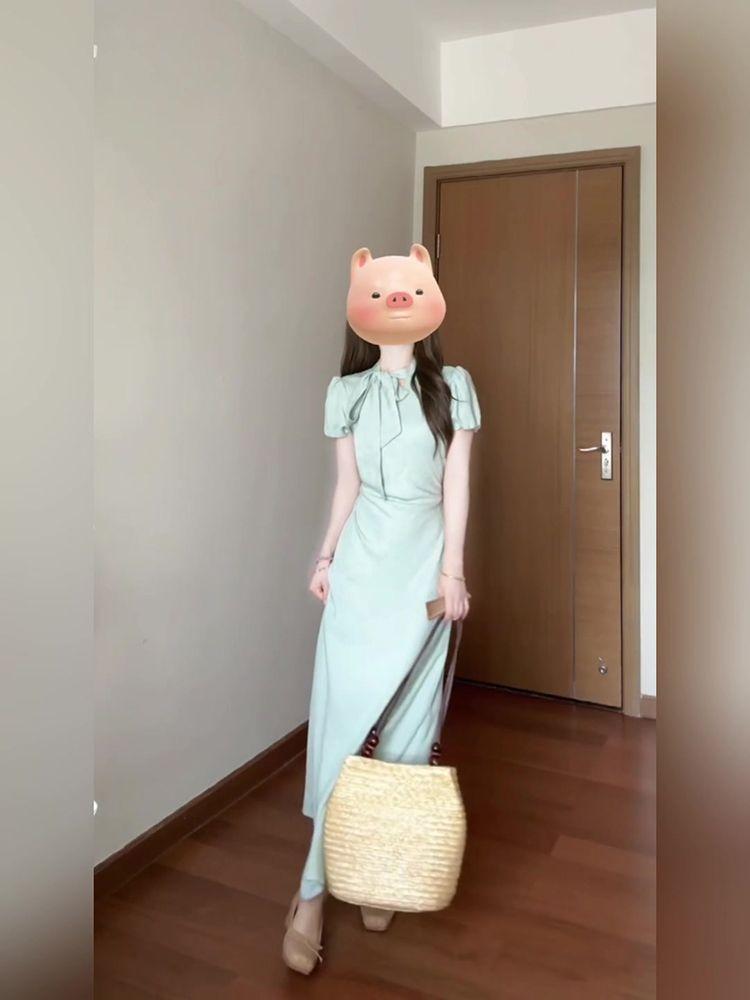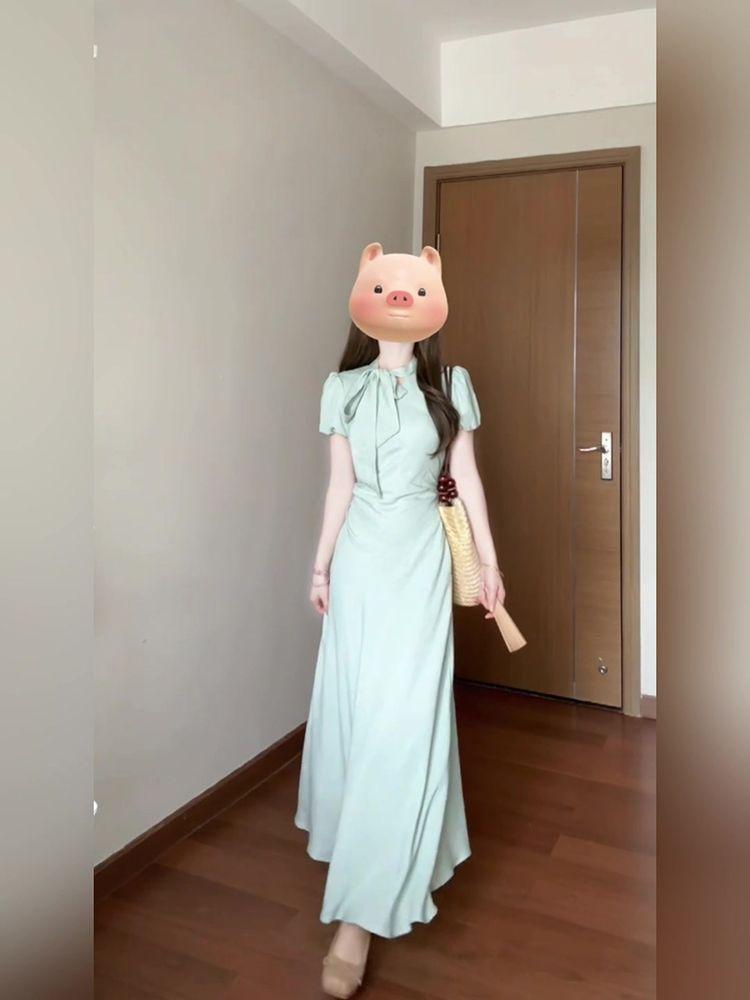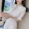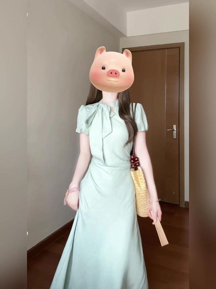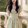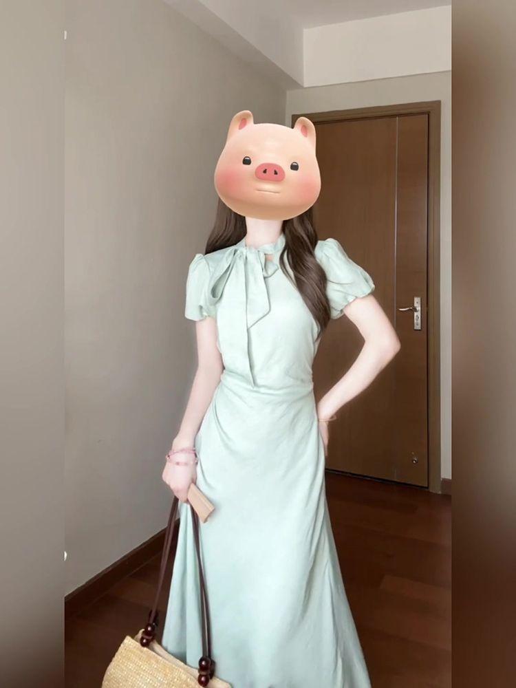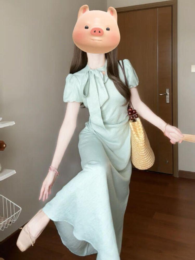 Vestido de encaje estilo francés con lazo y manga abullonada para mujer, moda de verano 2025, nuevo vestido elegante adelgazante de cintura alta