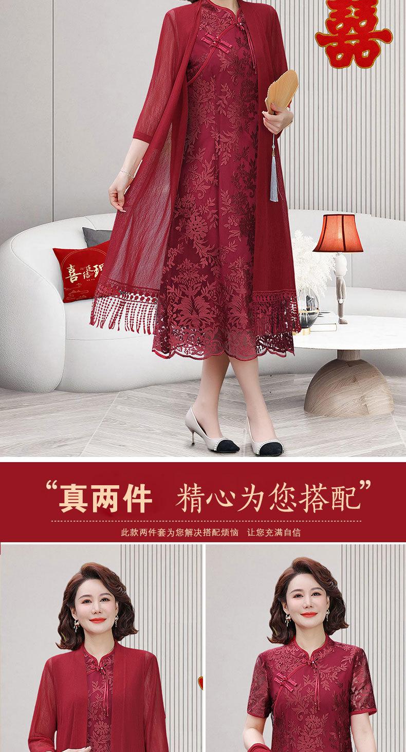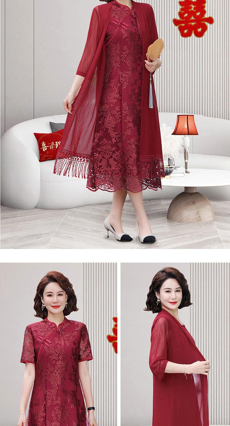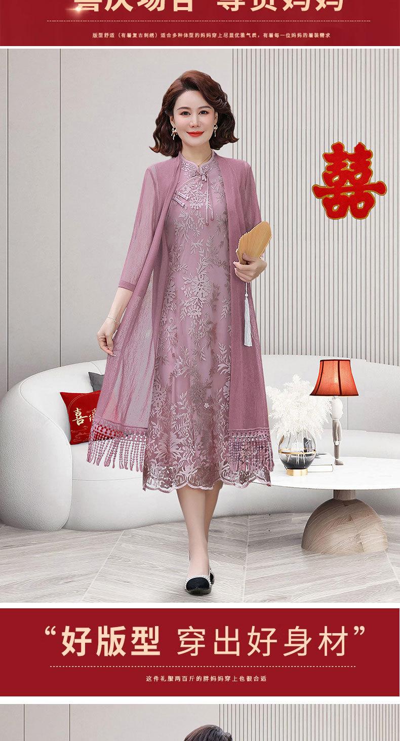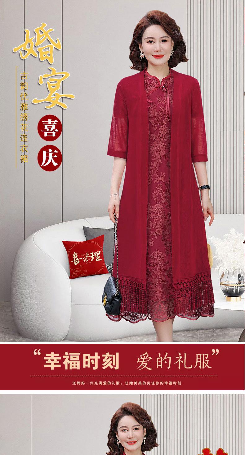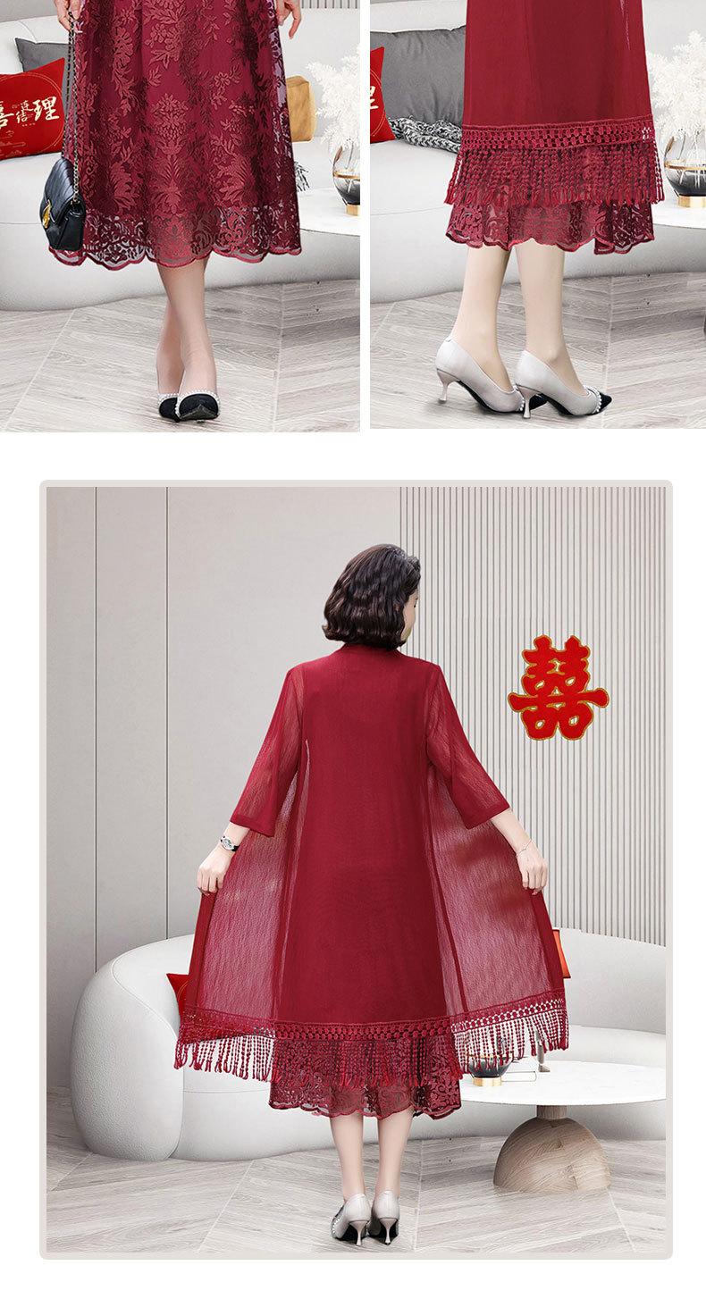 Vestido de Banquete de Boda de Verano Delgado de Dos Piezas de Estilo Nuevo para Madres, Falda Real Moderna, Borla de Encaje, Mujeres de Mediana Edad y Mayores