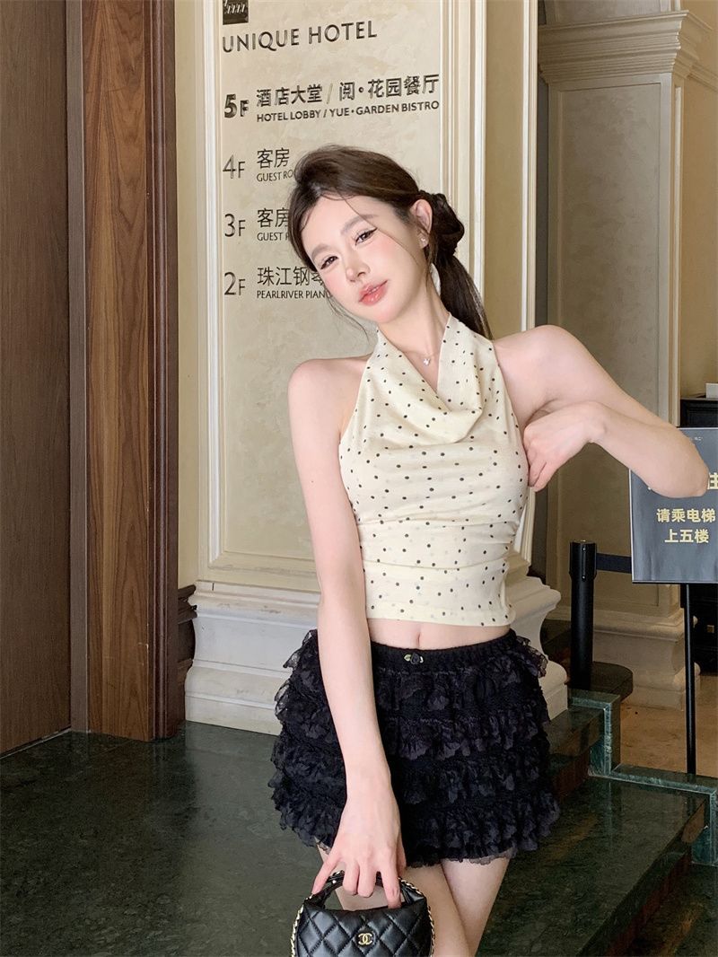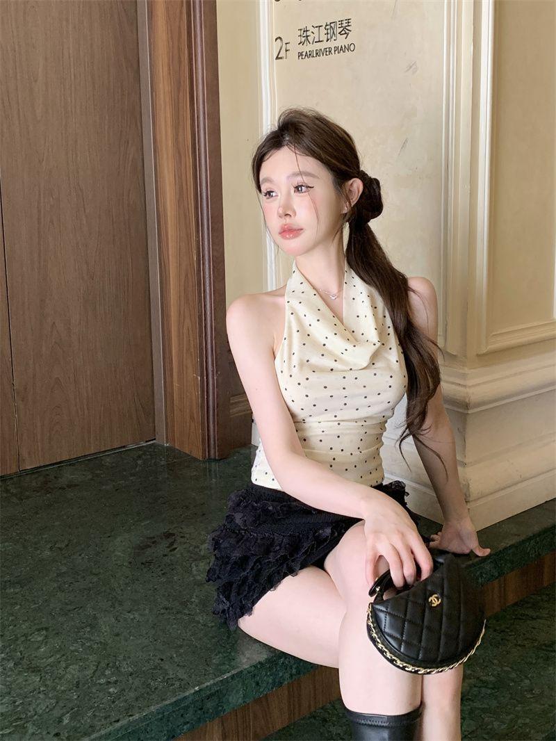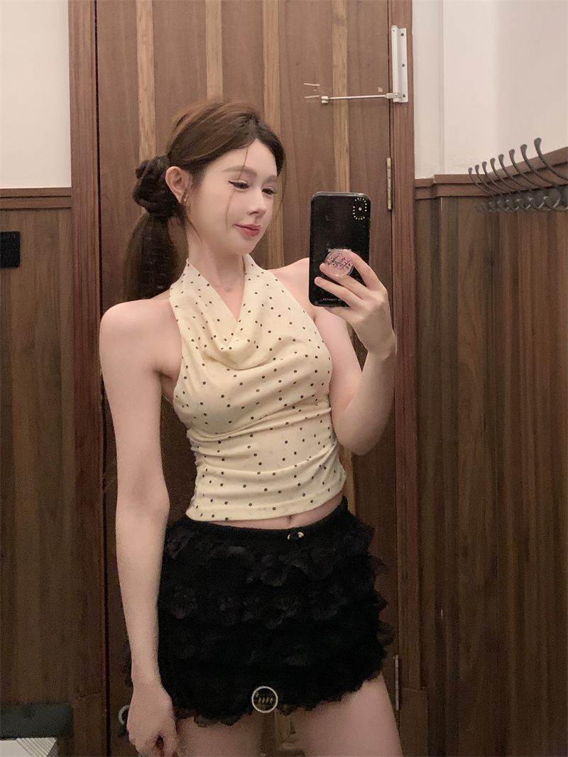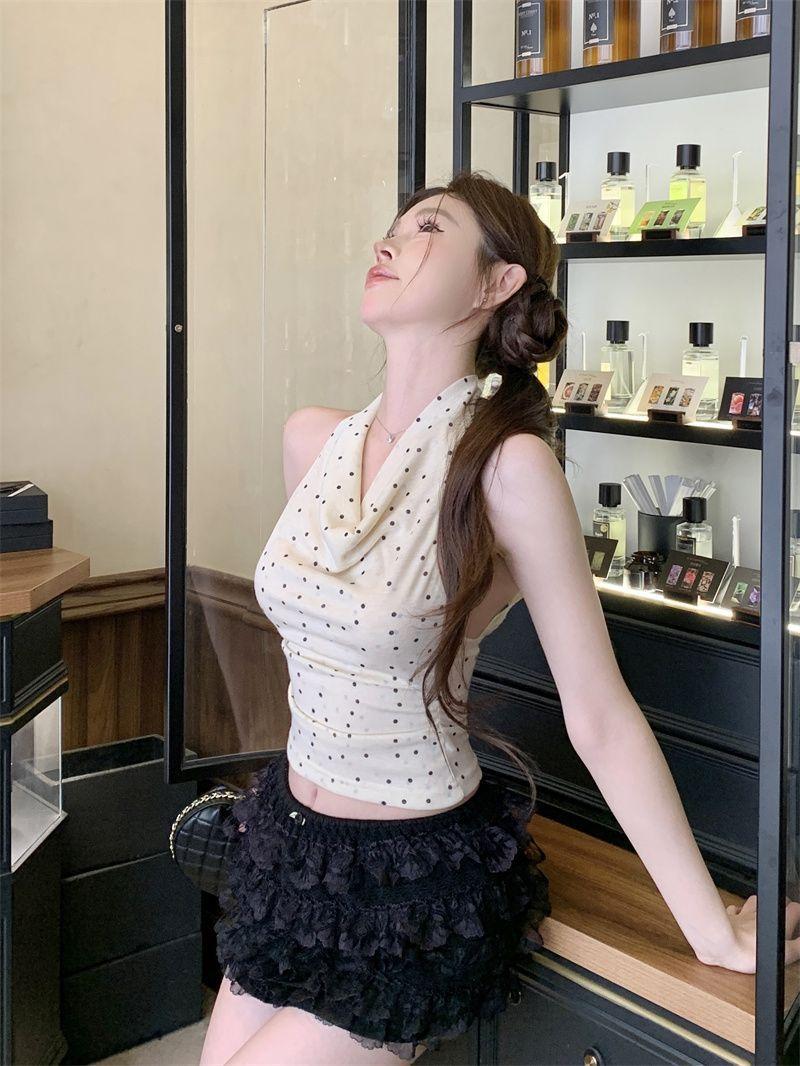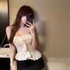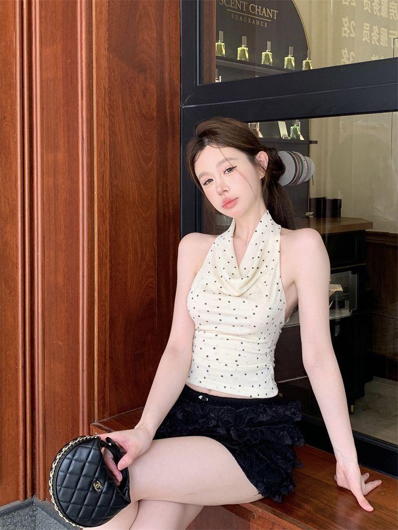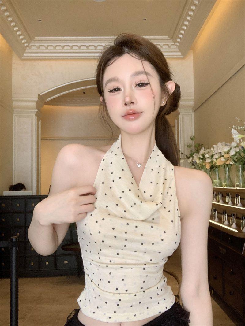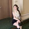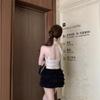 Verano Puro Dulce Chica Picante Punto de Ola Cuello Hombro Diseño Nicho Único Chic Cuello Oscilante Chaleco Ajustado