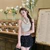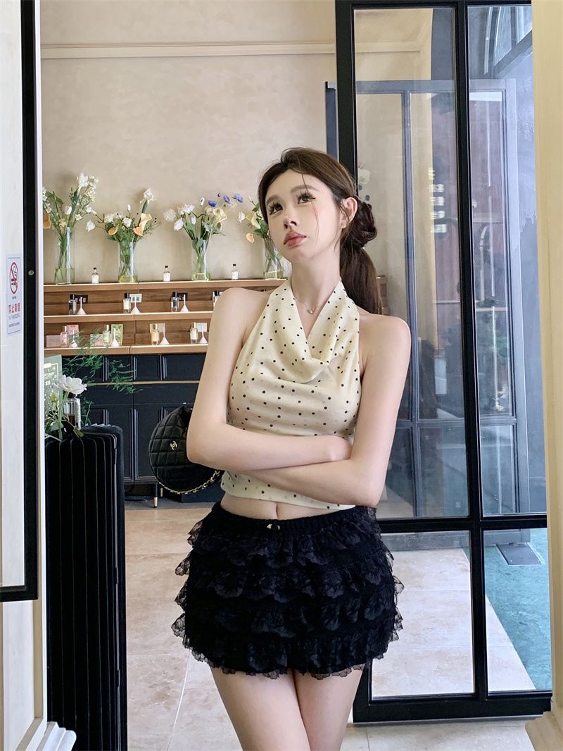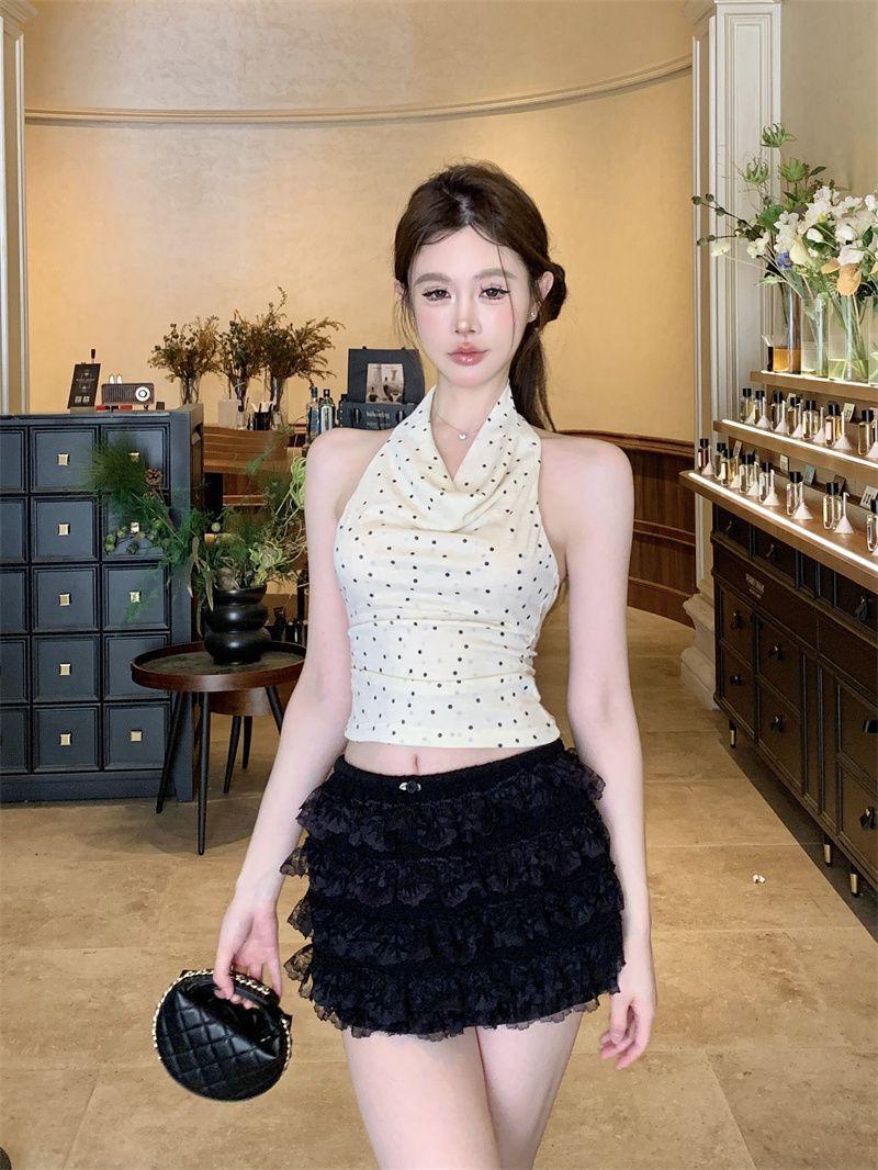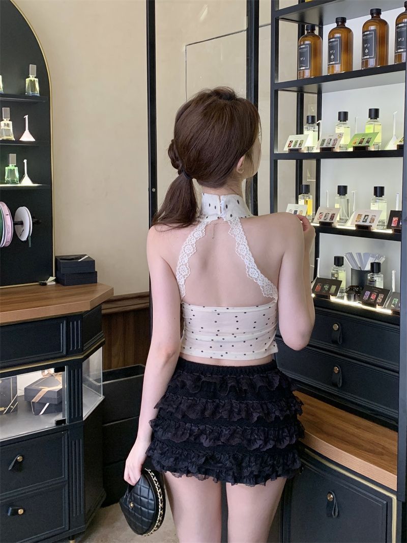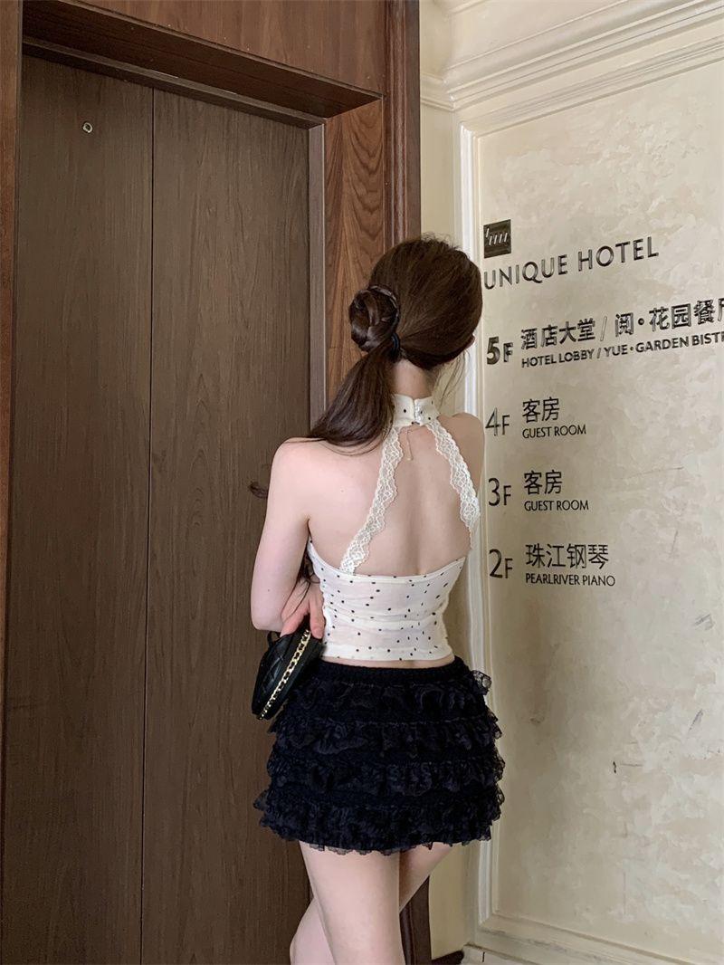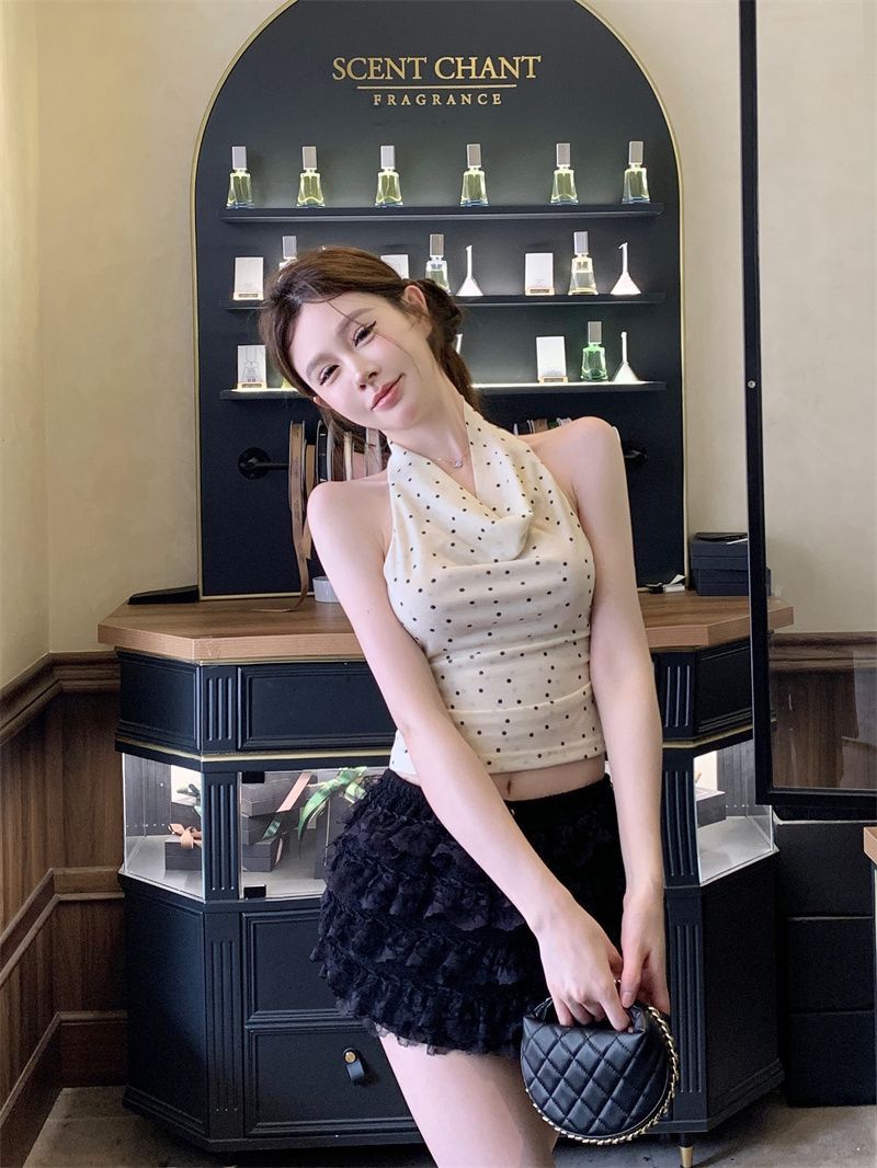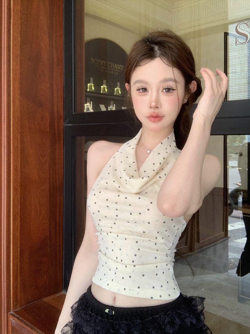 Verano Puro Dulce Chica Picante Punto de Ola Cuello Hombro Diseño Nicho Único Chic Cuello Oscilante Chaleco Ajustado