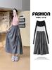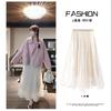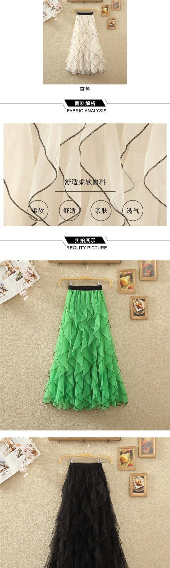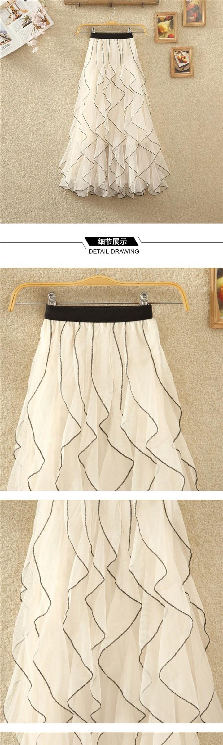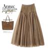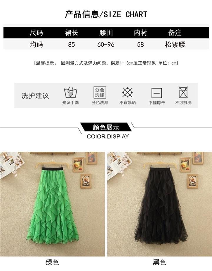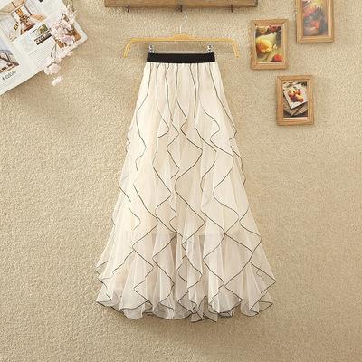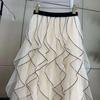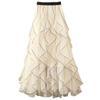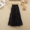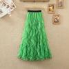 2025 Otoño Nuevo Patrón de Ola Falda de Malla de Hada con Volantes Cintura Alta Línea A Acampanada Falda Larga Falda Media para Mujer