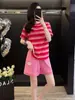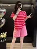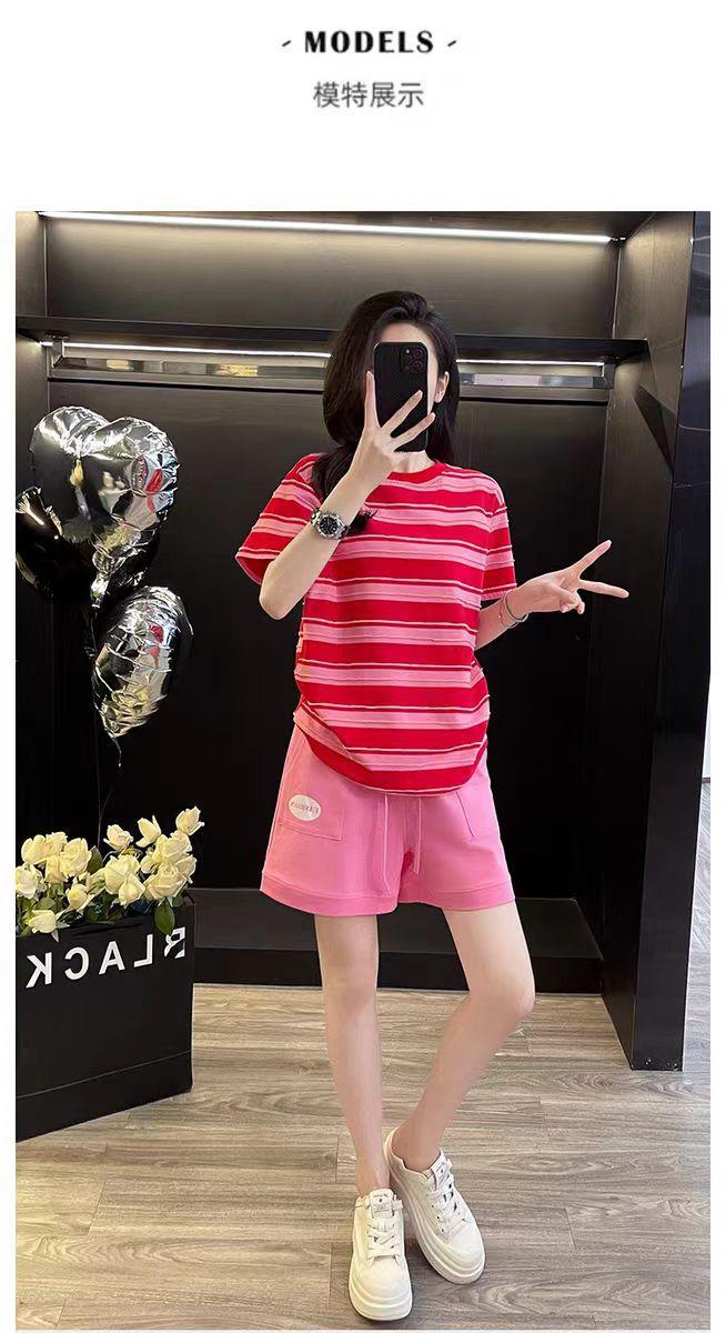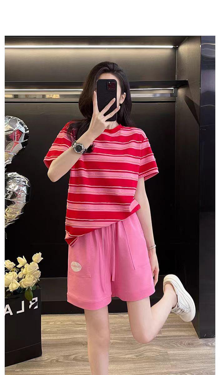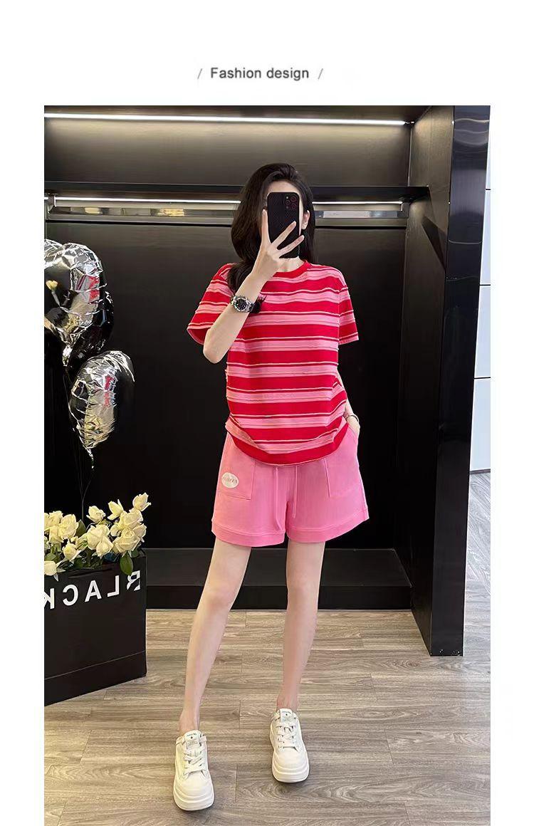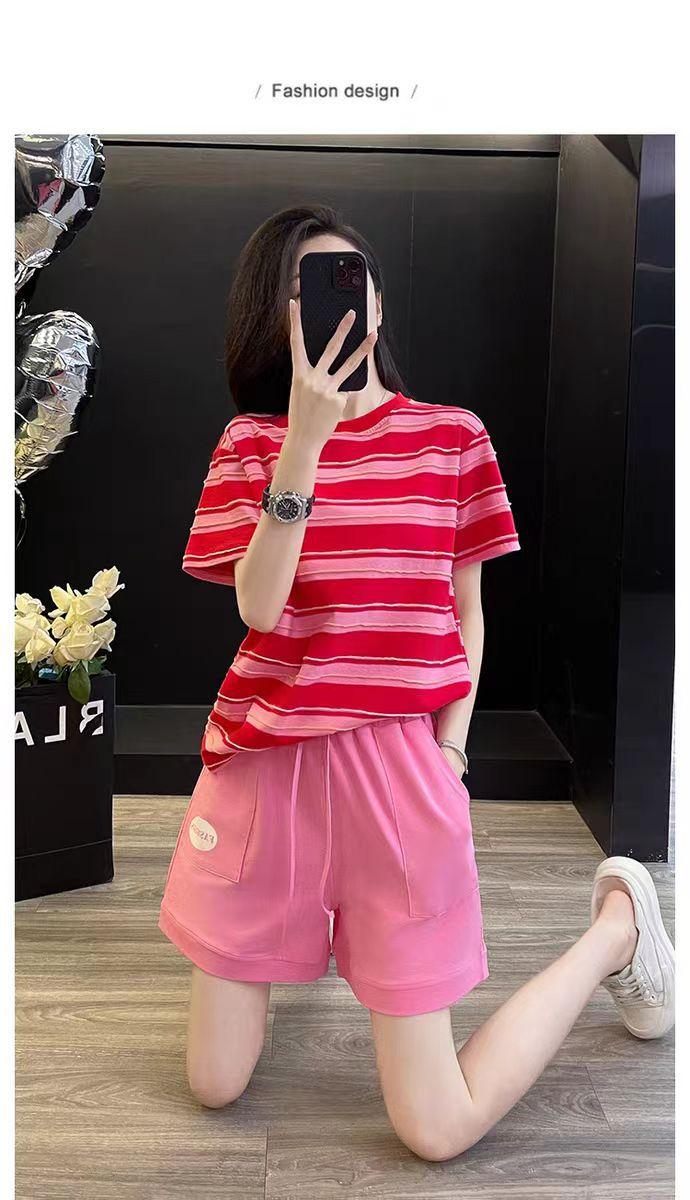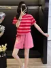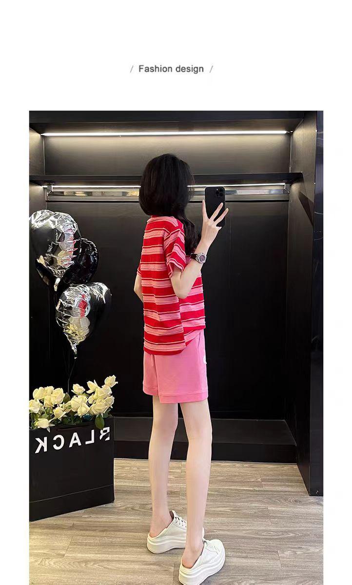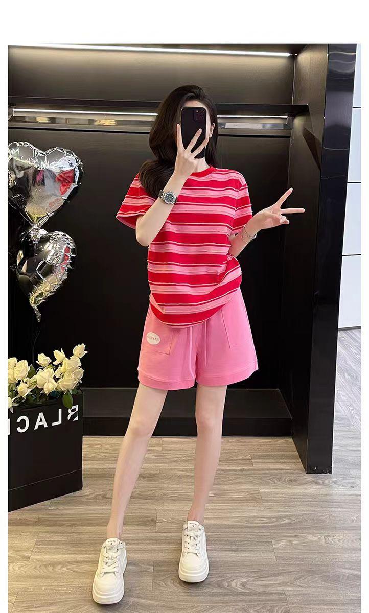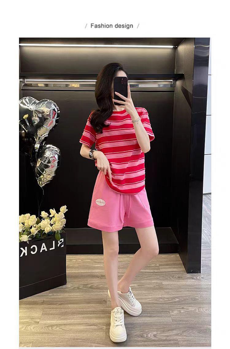 Traje deportivo casual 2025 para mujer, nuevo verano, estilo occidental, reductor de edad, alto, de manga corta, shorts, conjunto de dos piezas