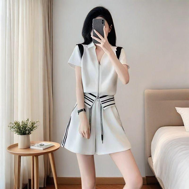Verano 2025 Nuevo Traje Deportivo Casual de Alta Gama para Mujer, Moderno y a la Moda, Conjunto de Dos Piezas de Manga Corta y Shorts