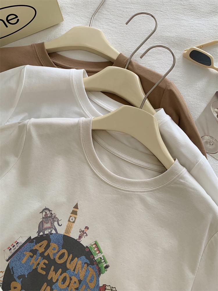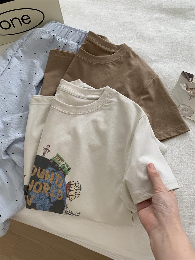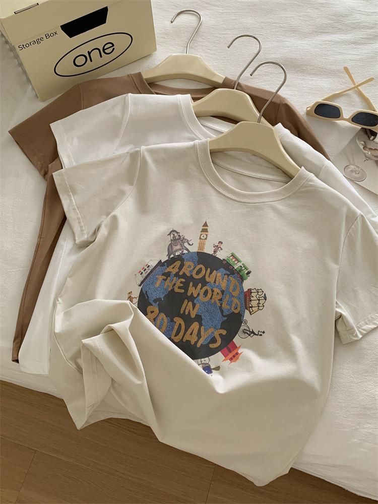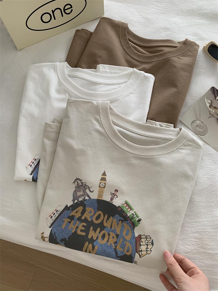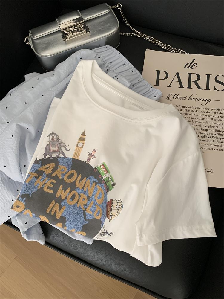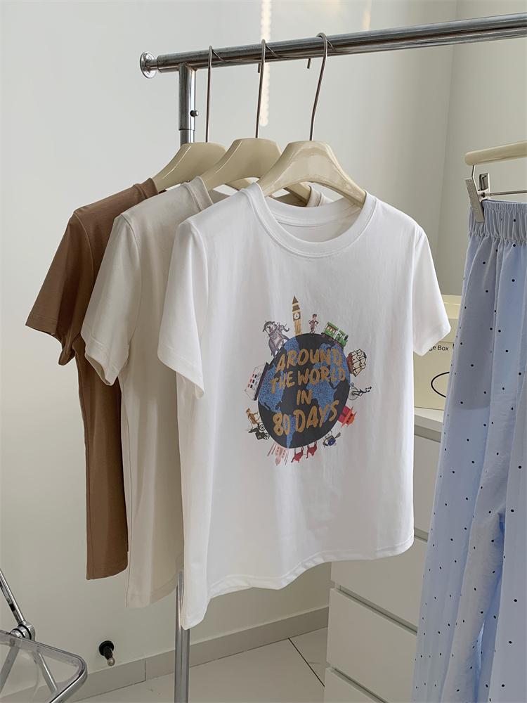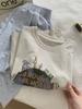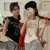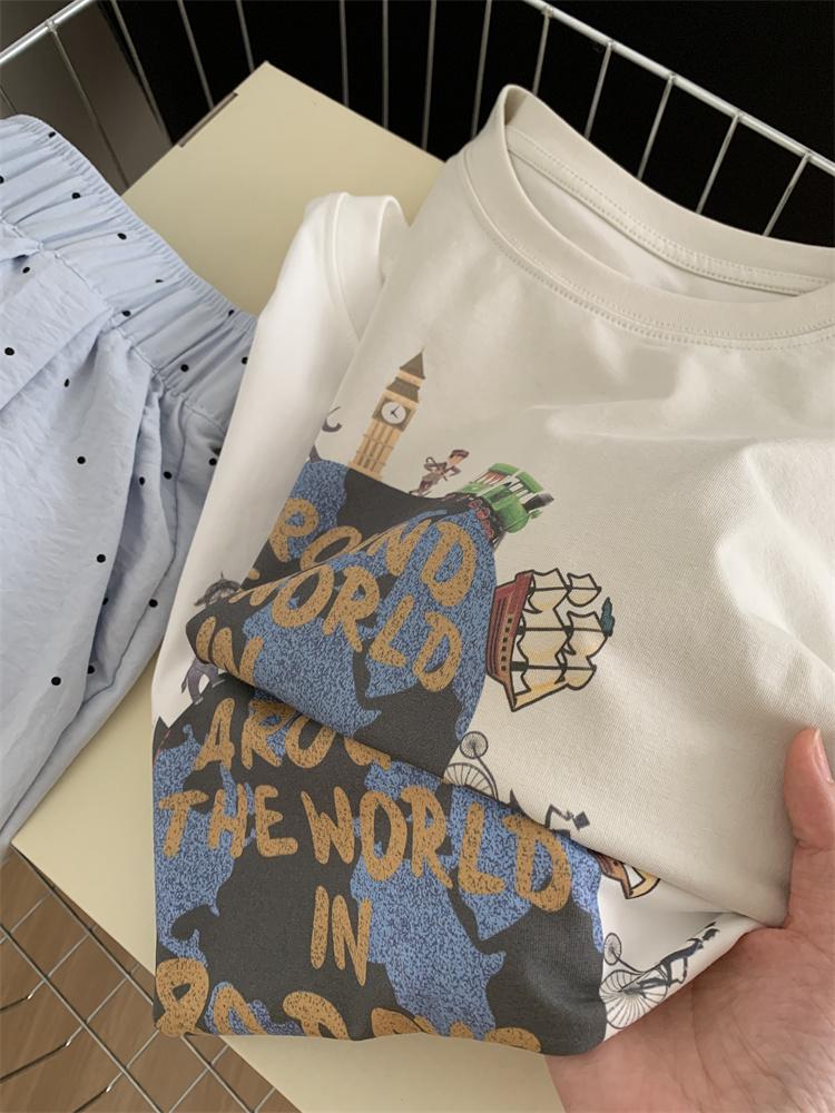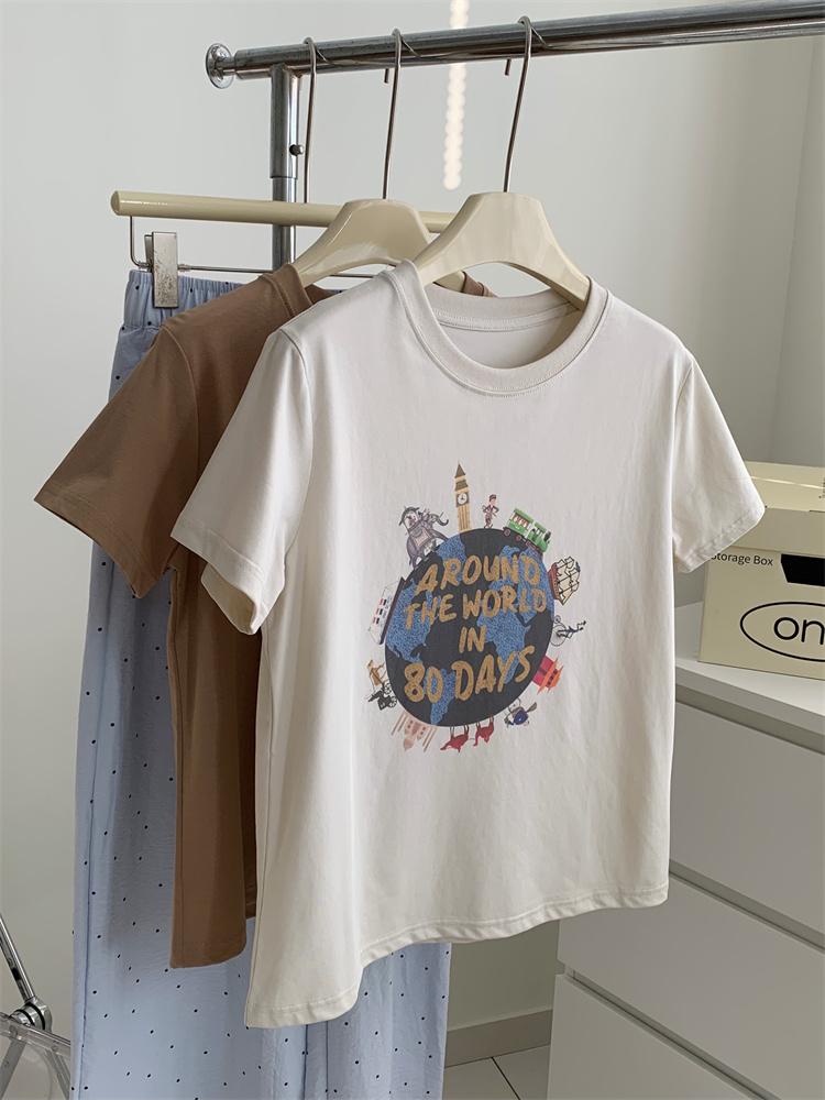 Camiseta de Cuello Redondo con Estampado Graffiti de Diseño Nicho para Mujer Verano 2025 Adelgazante Combinable Manga Corta