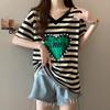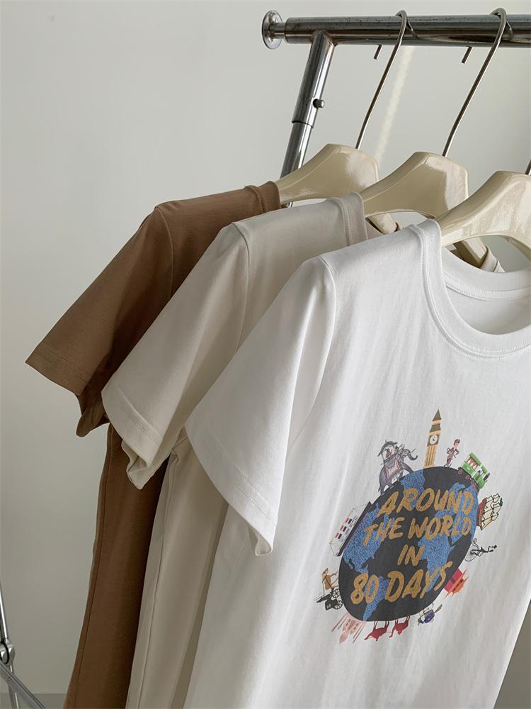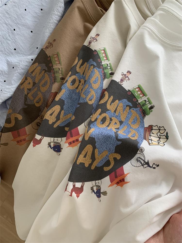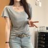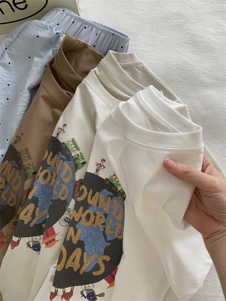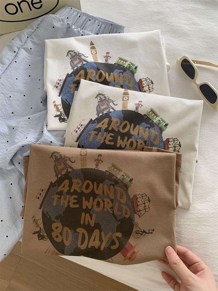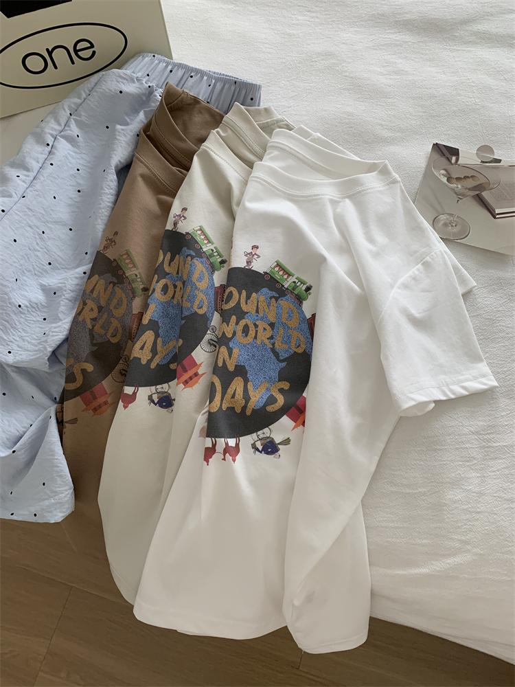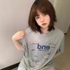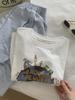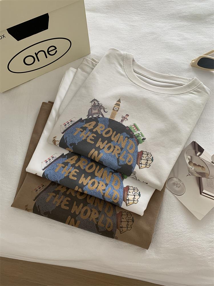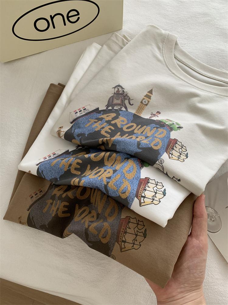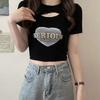 Camiseta de Cuello Redondo con Estampado Graffiti de Diseño Nicho para Mujer Verano 2025 Adelgazante Combinable Manga Corta