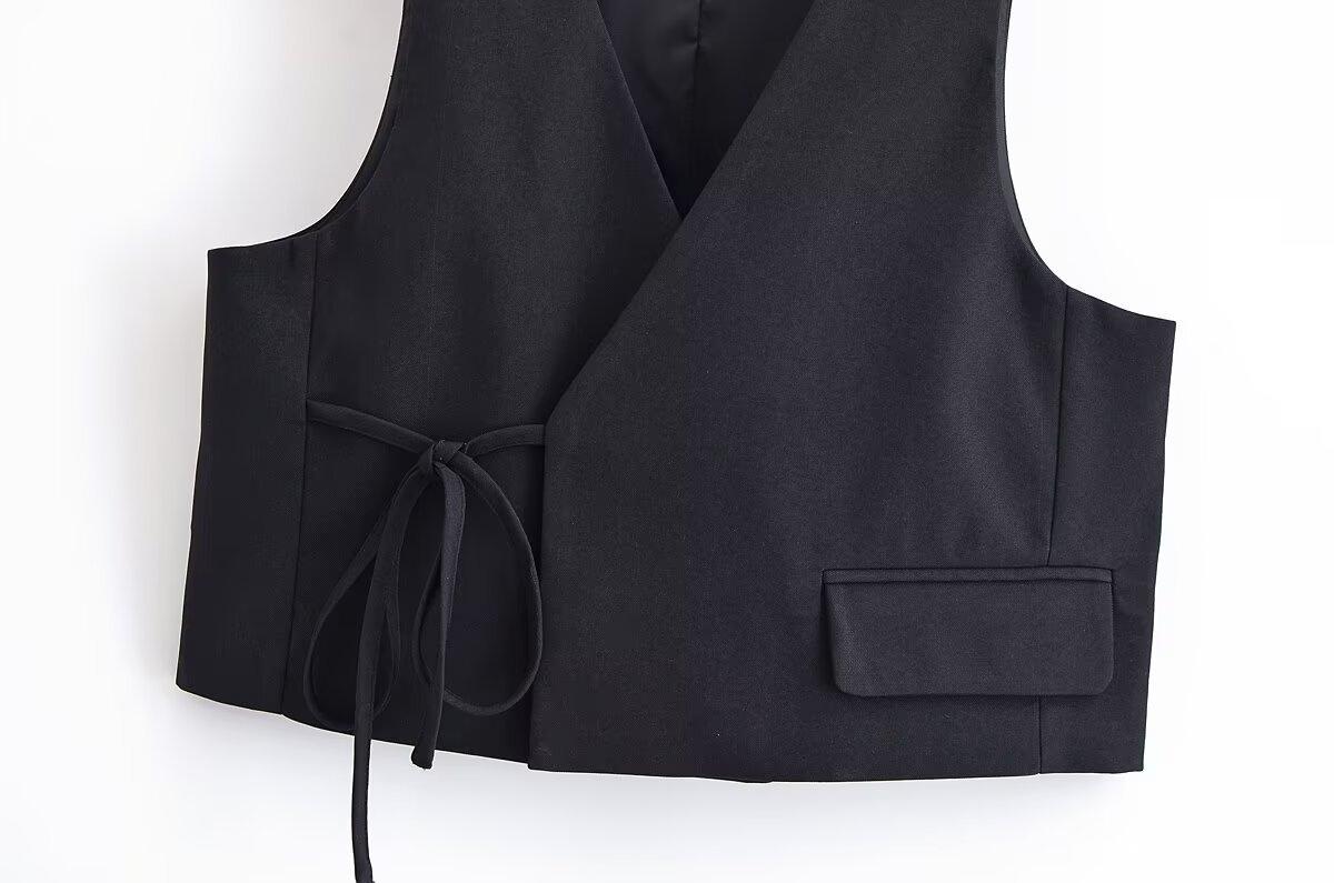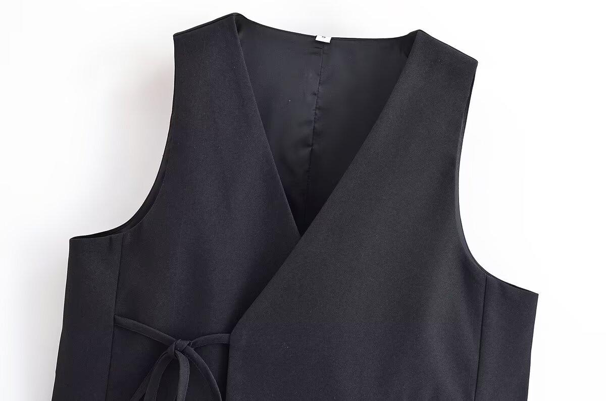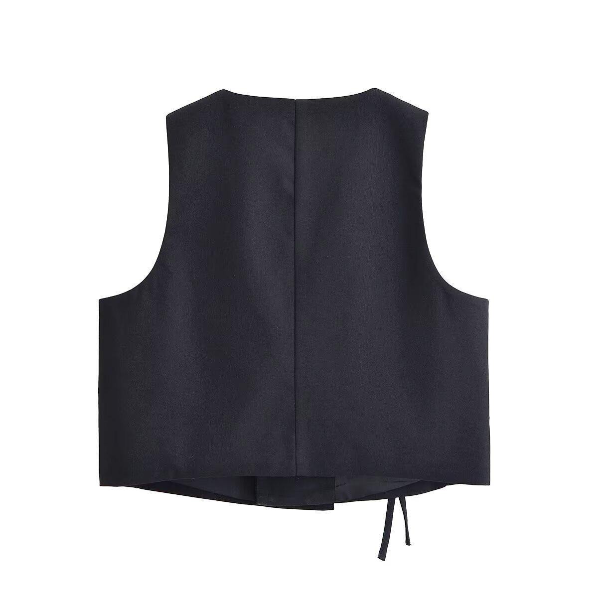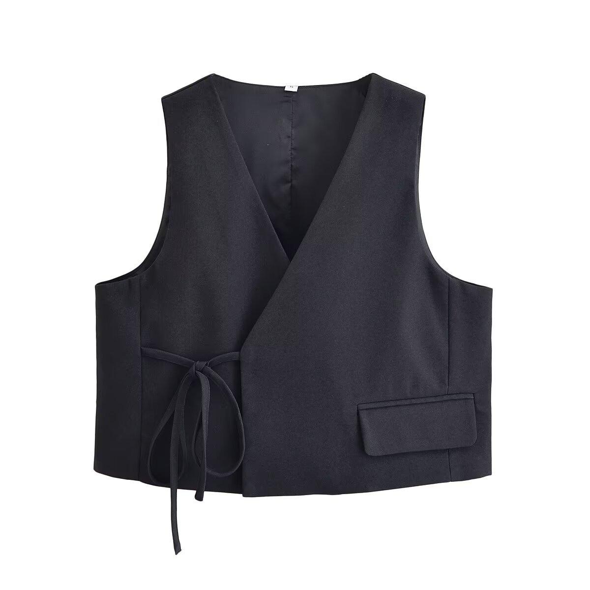Primavera 2025 Nueva Ropa de Mujer Estilo Europeo y Americano Moda Casual Más Fácil de Combinar Chaleco Holgado con Cordones