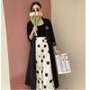 Conjunto de camiseta versátil adelgazante de manga larga con volantes + falda corta de nueva moda coreana de primavera y verano