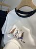 ¡El dinero que se mueve a la vista!!! Camiseta de manga corta y cuello redondo con contraste de color suelto estampado pintado a mano de alta textura que reduce la edad para mujer