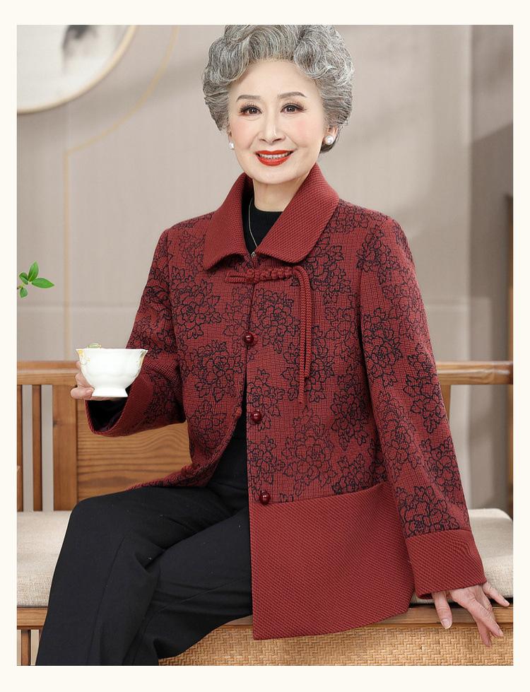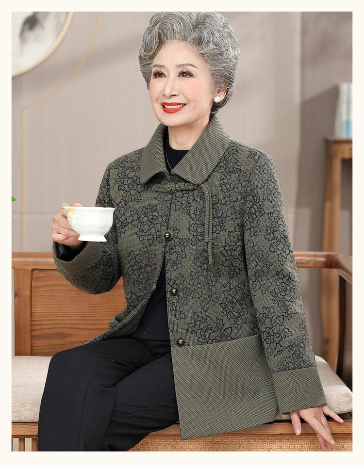 Mamá Primavera y Otoño Estilo Chino Estilo Nacional 2025 Ropa Nueva Abrigo de Primavera para Abuela Abrigo Tang para Mujeres de Mediana Edad y Ancianas