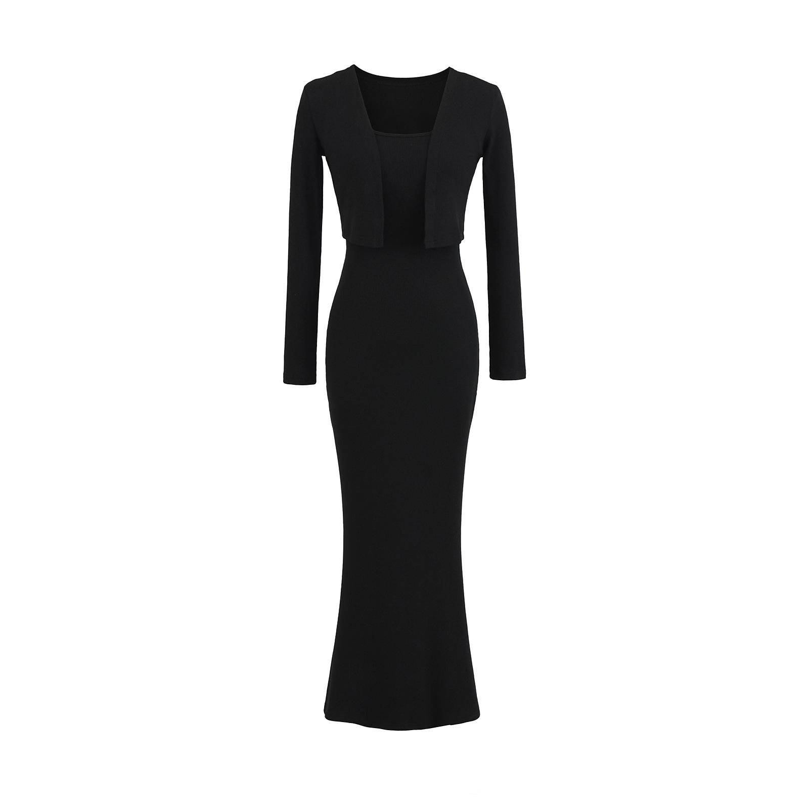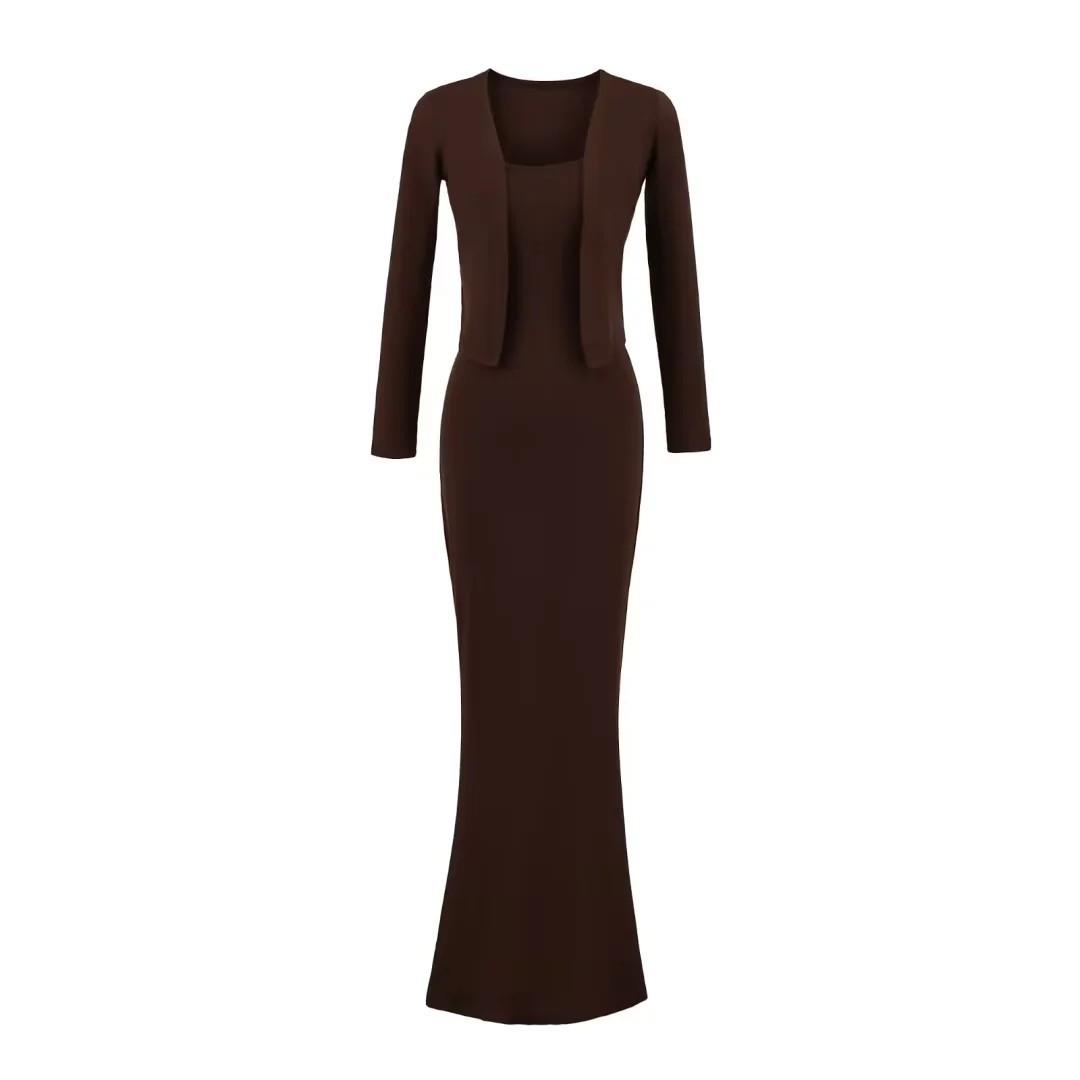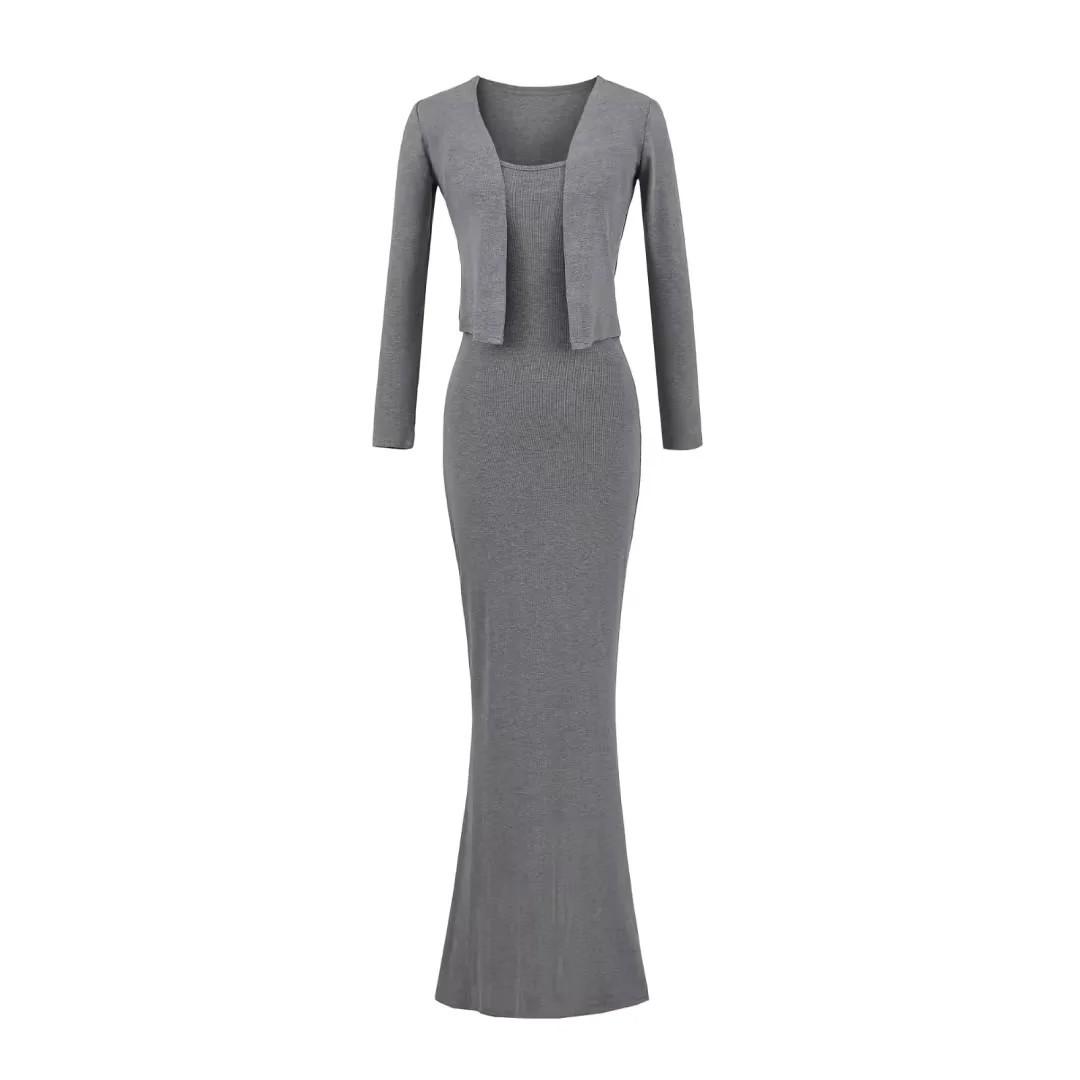 Look Adelgazante de Otoño Temprano para Altas Falda Slim con Tirantes que Abraza las Caderas 2025 Vestido Chaleco Holgado Set de Dos Piezas Cárdigan