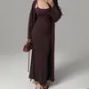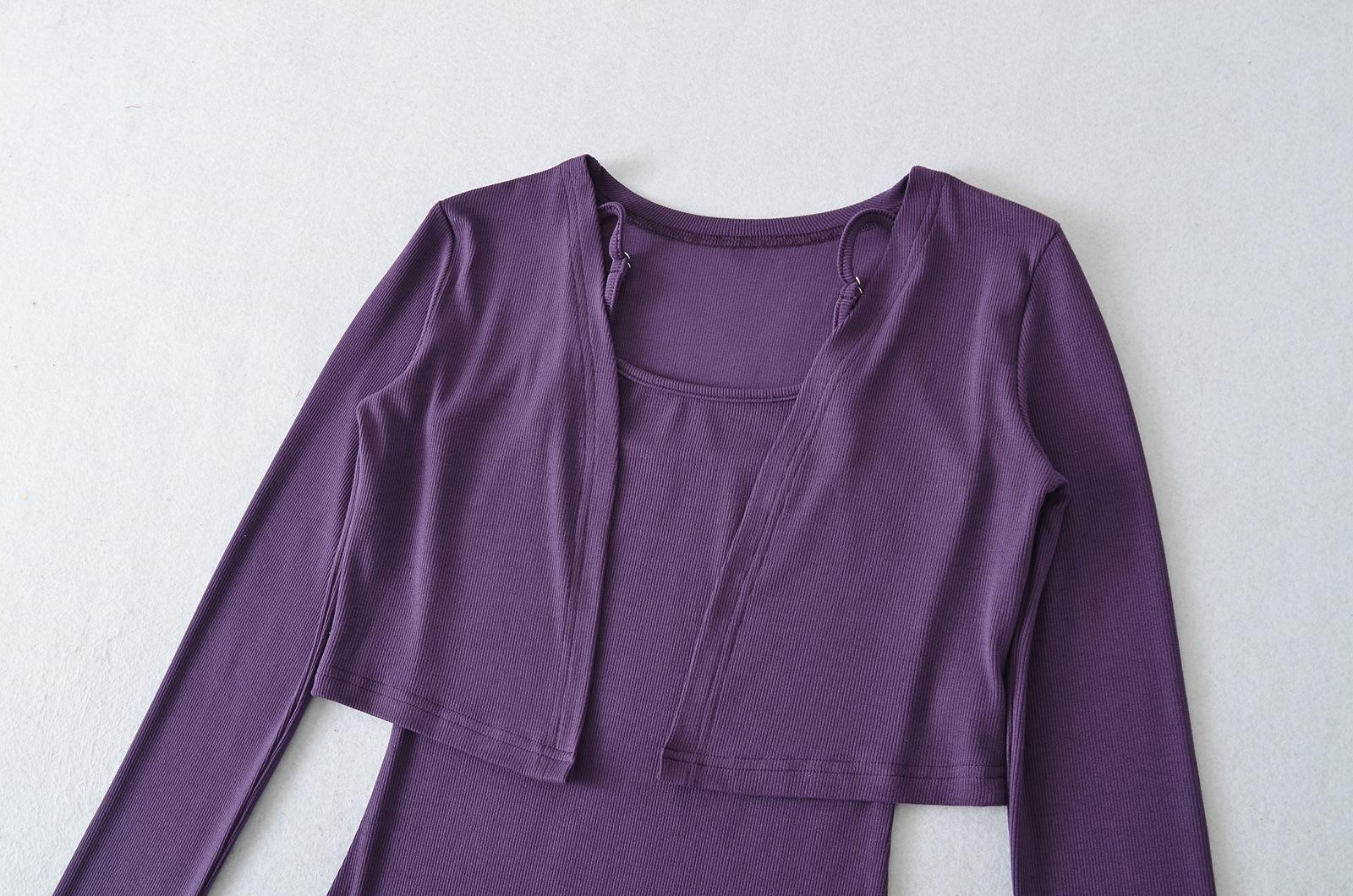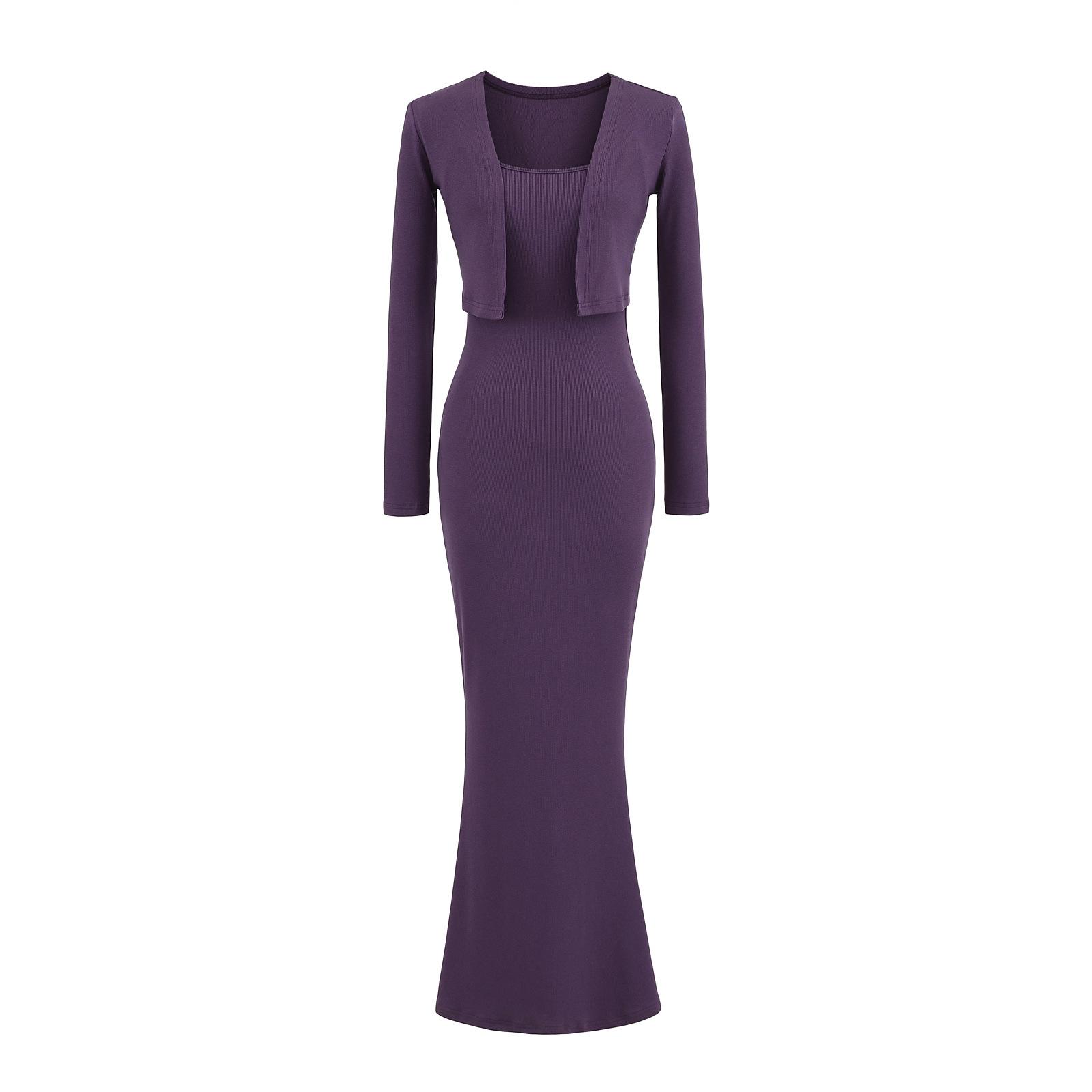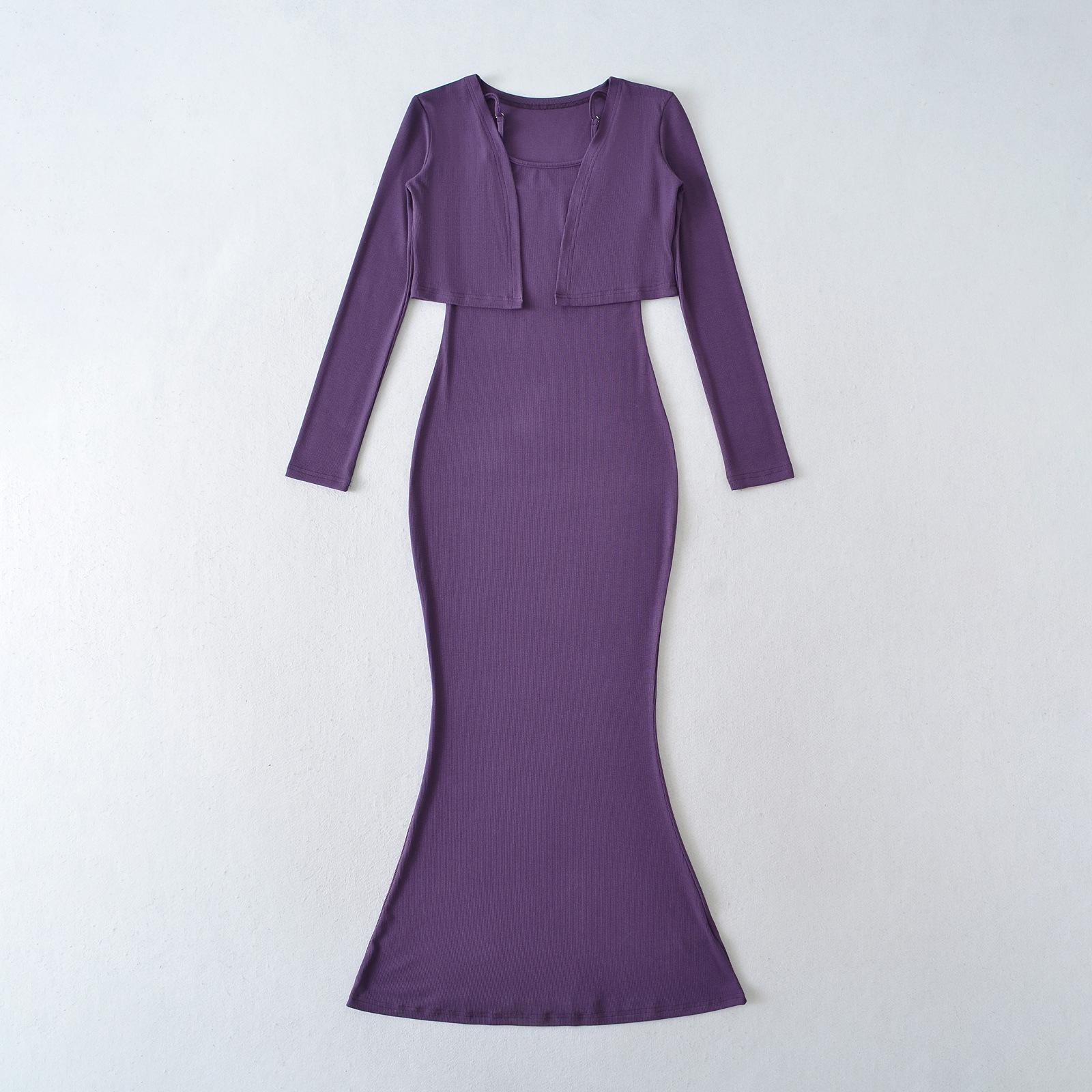 Look Adelgazante de Otoño Temprano para Altas Falda Slim con Tirantes que Abraza las Caderas 2025 Vestido Chaleco Holgado Set de Dos Piezas Cárdigan