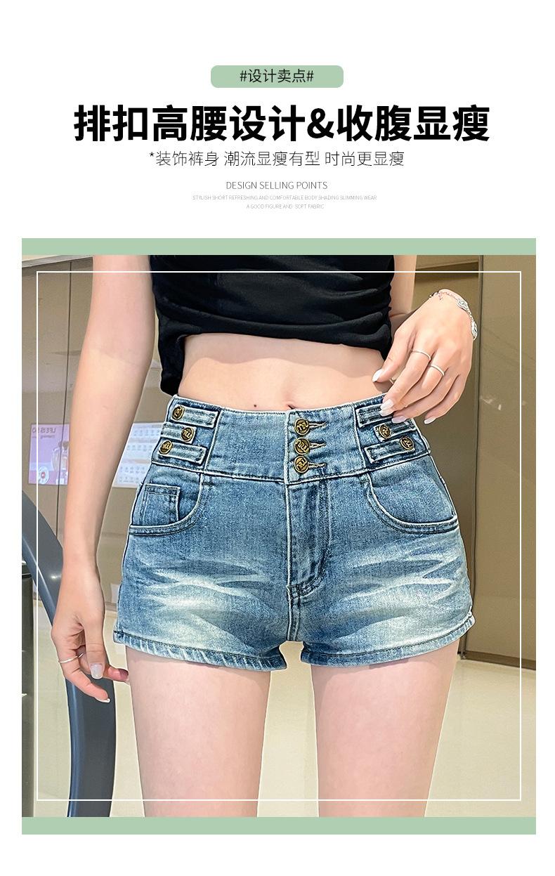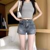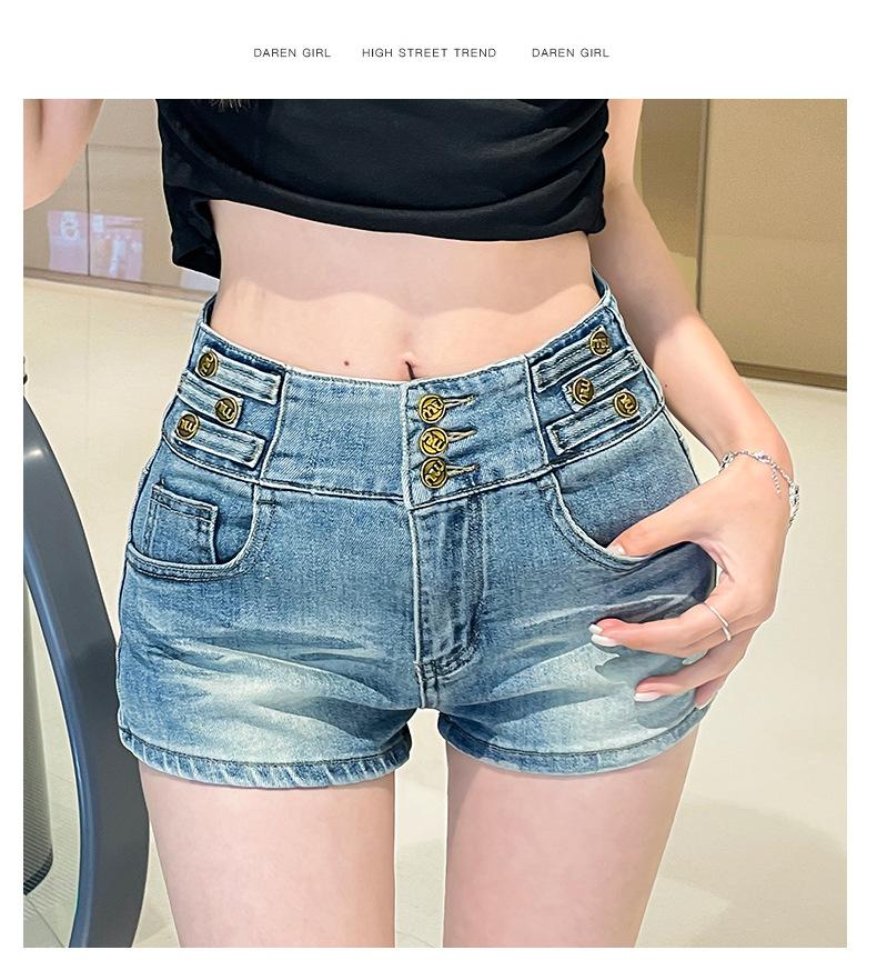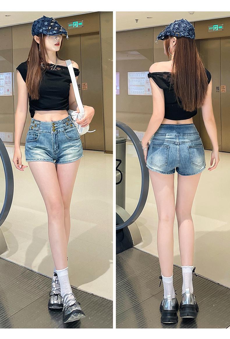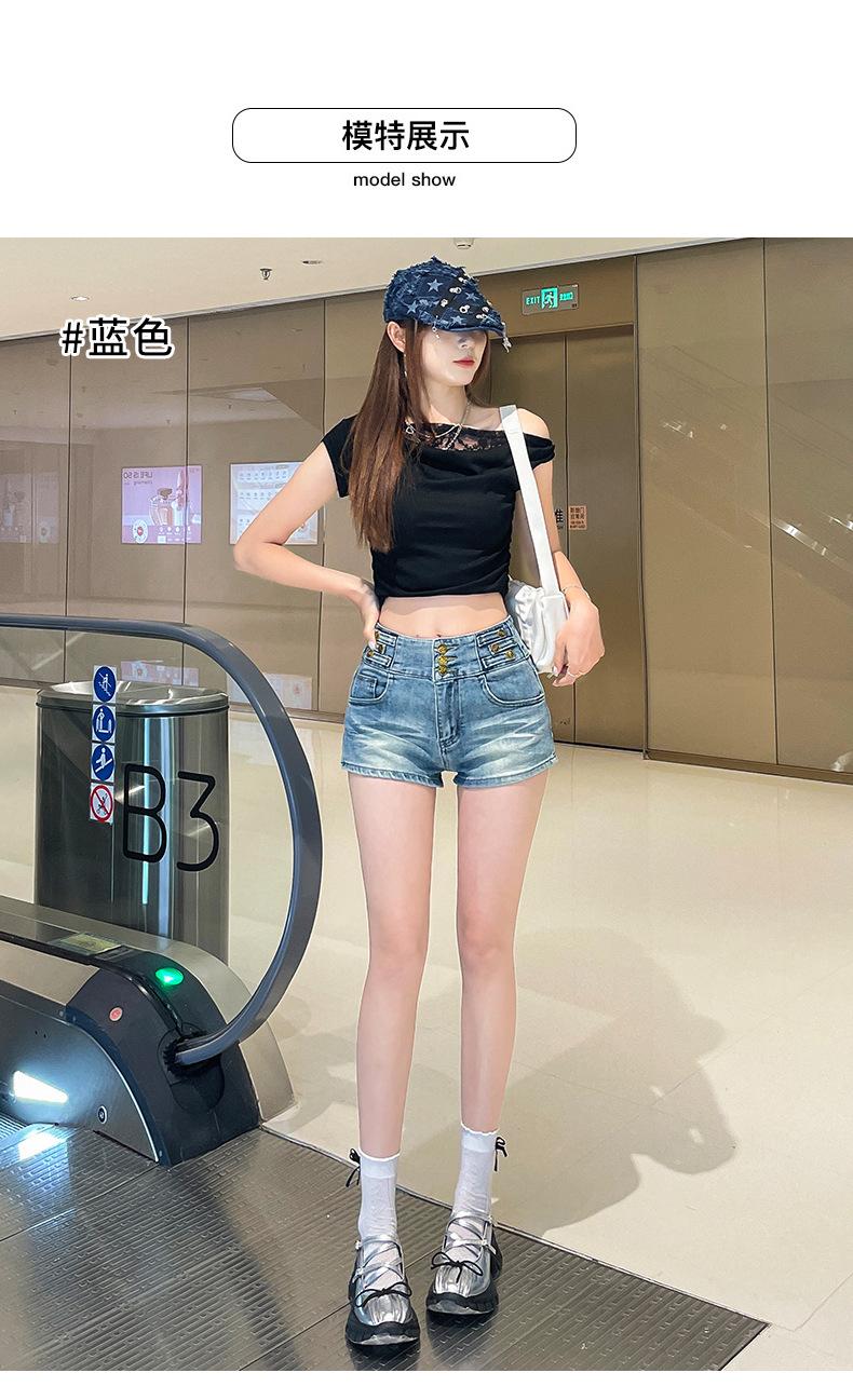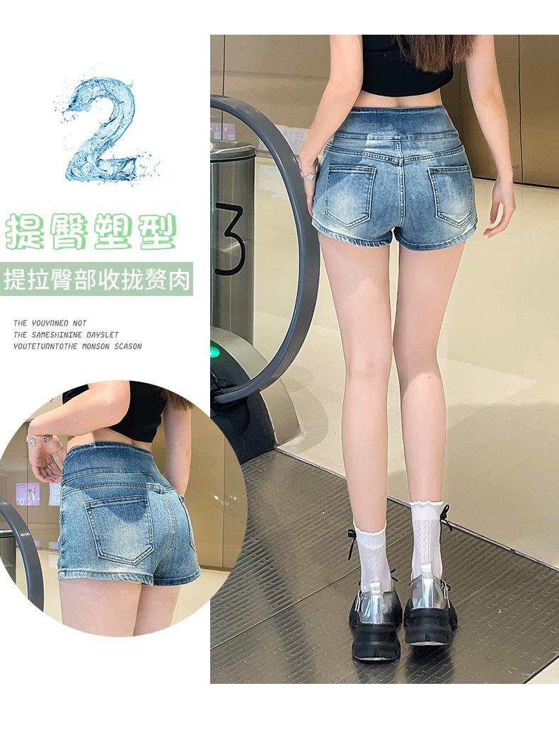 Shorts de mezclilla retro azules 2025 para mujer, verano nuevos, cintura alta, elásticos, ajustados, que alargan las piernas, sexy, súper cortos