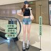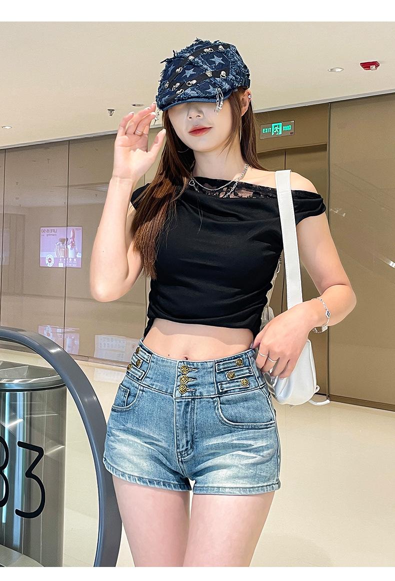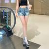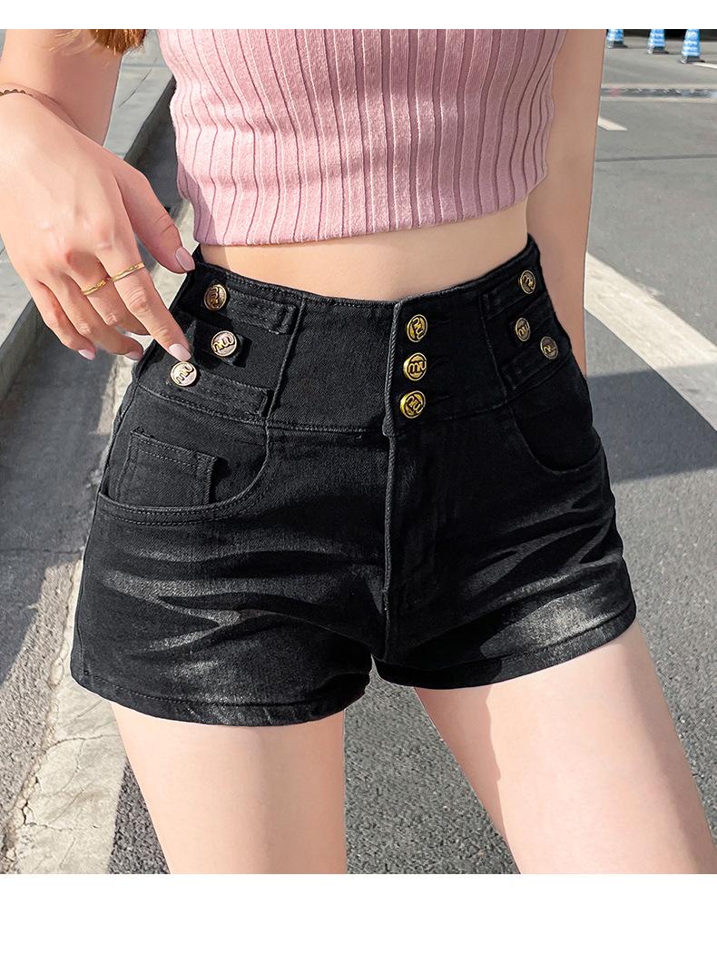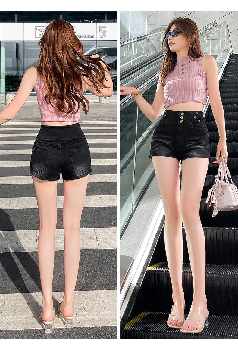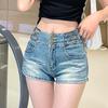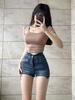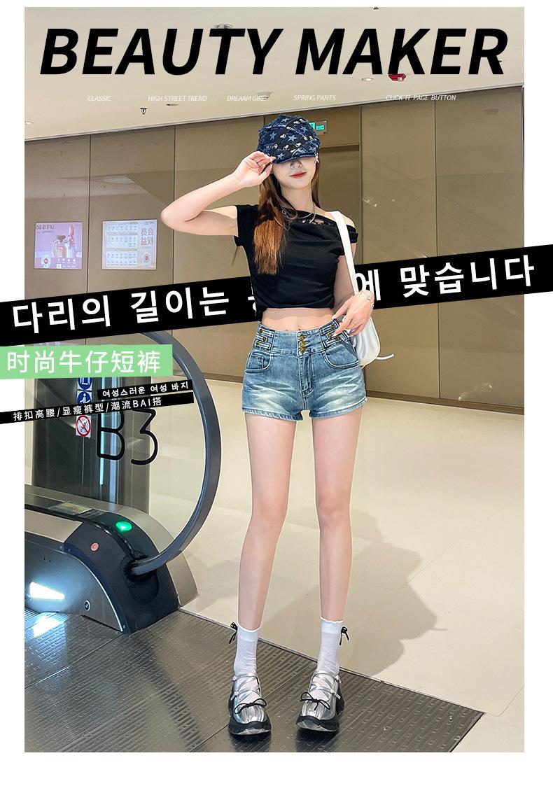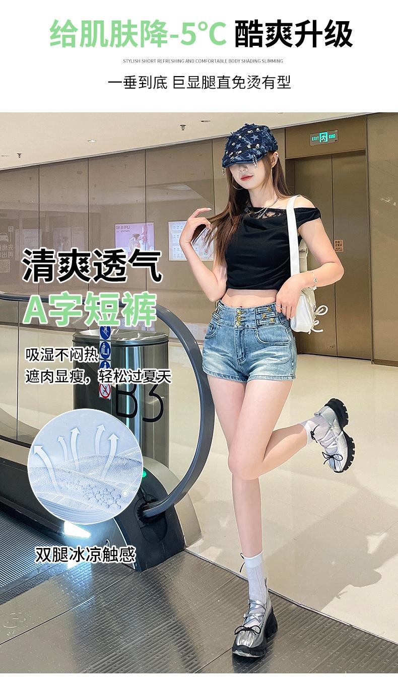 Shorts de mezclilla retro azules 2025 para mujer, verano nuevos, cintura alta, elásticos, ajustados, que alargan las piernas, sexy, súper cortos