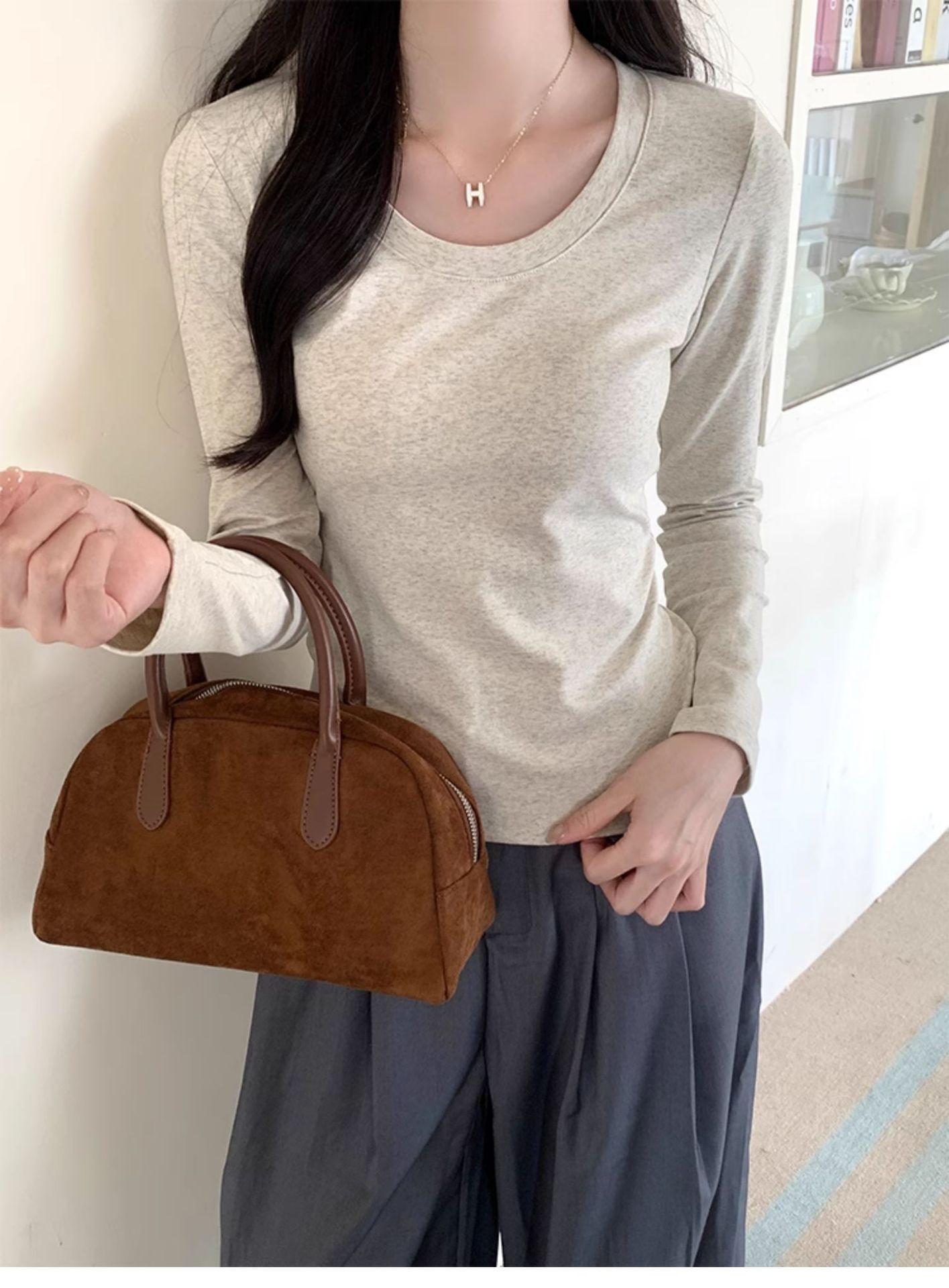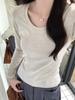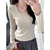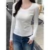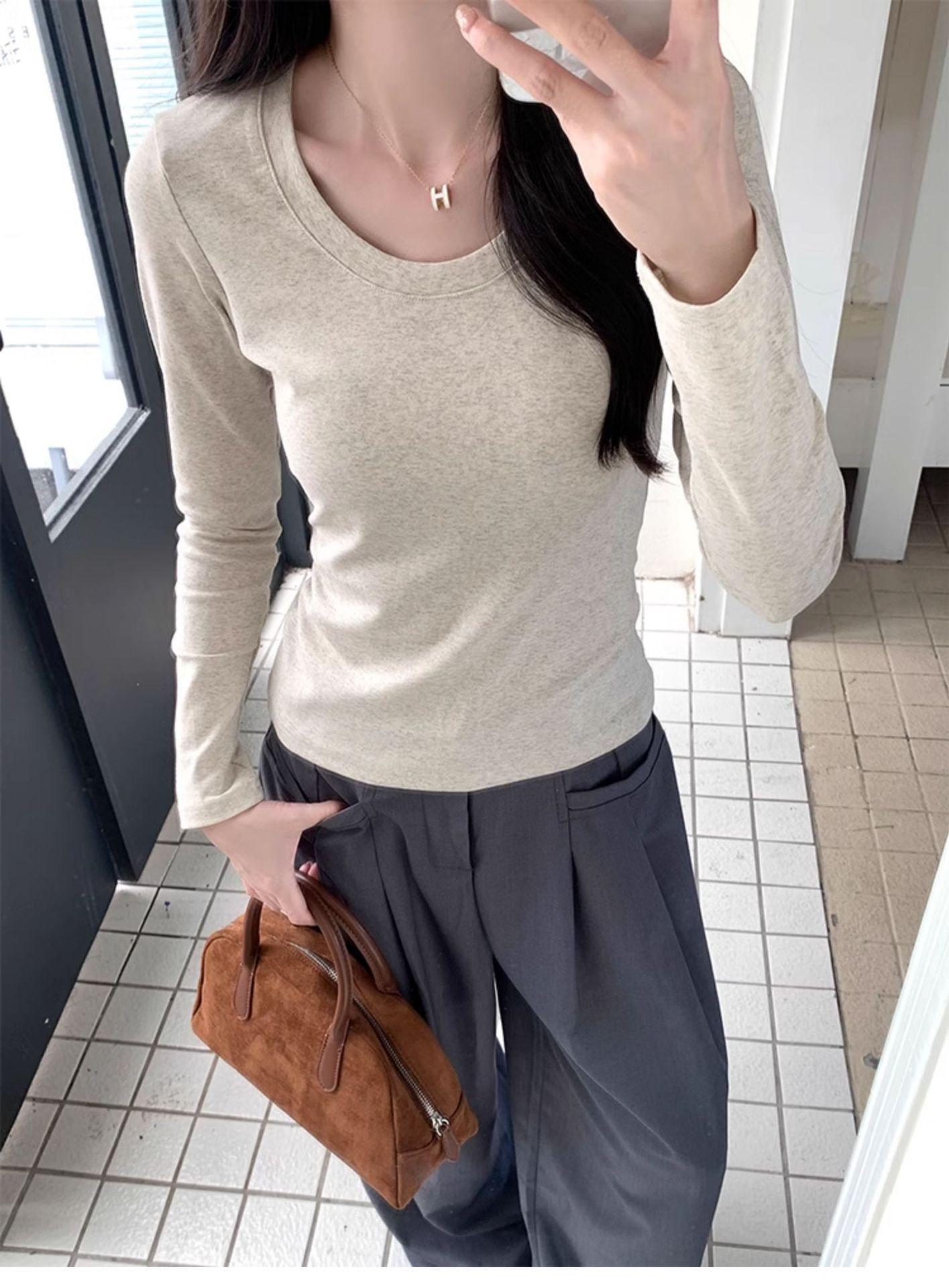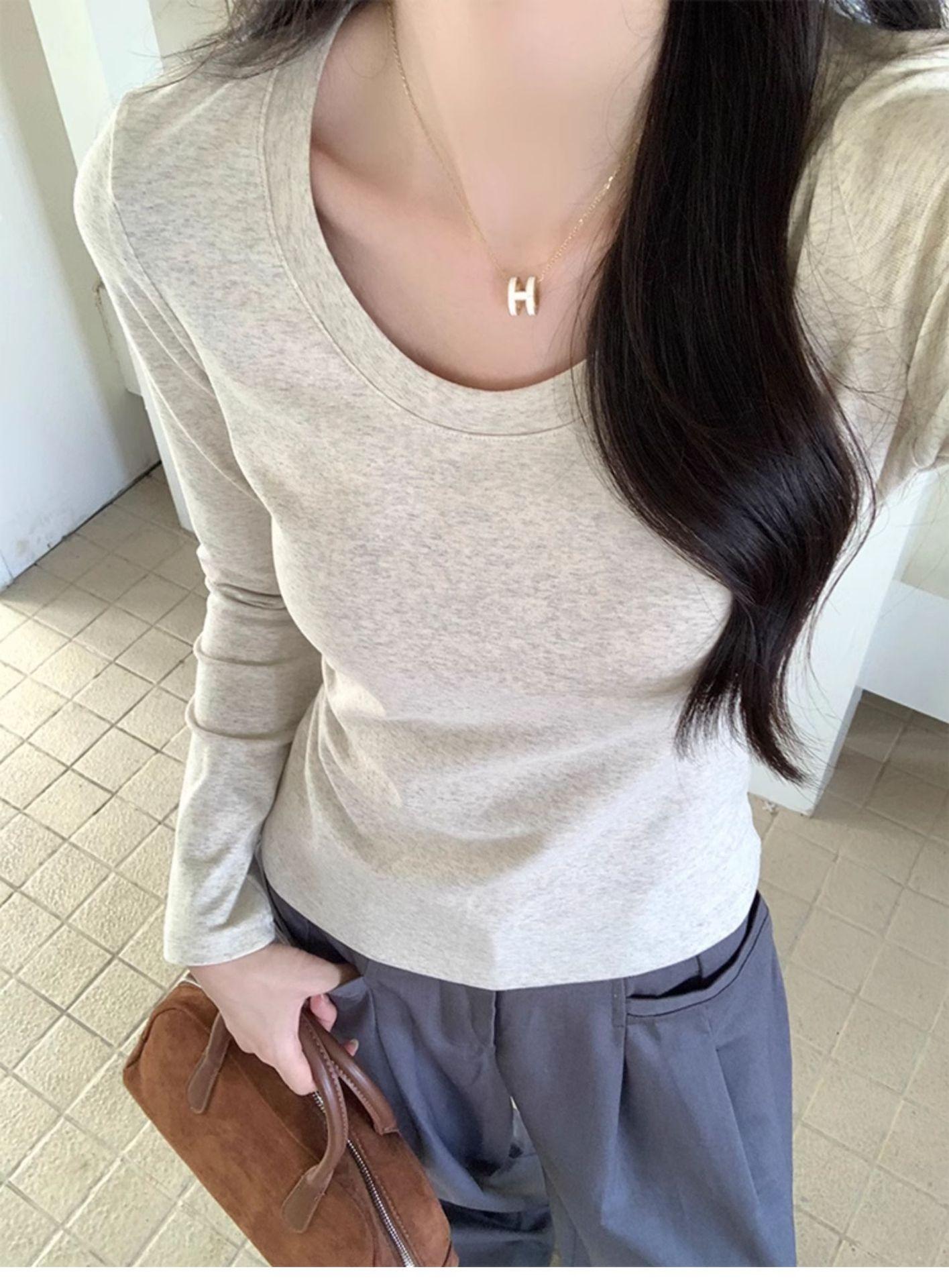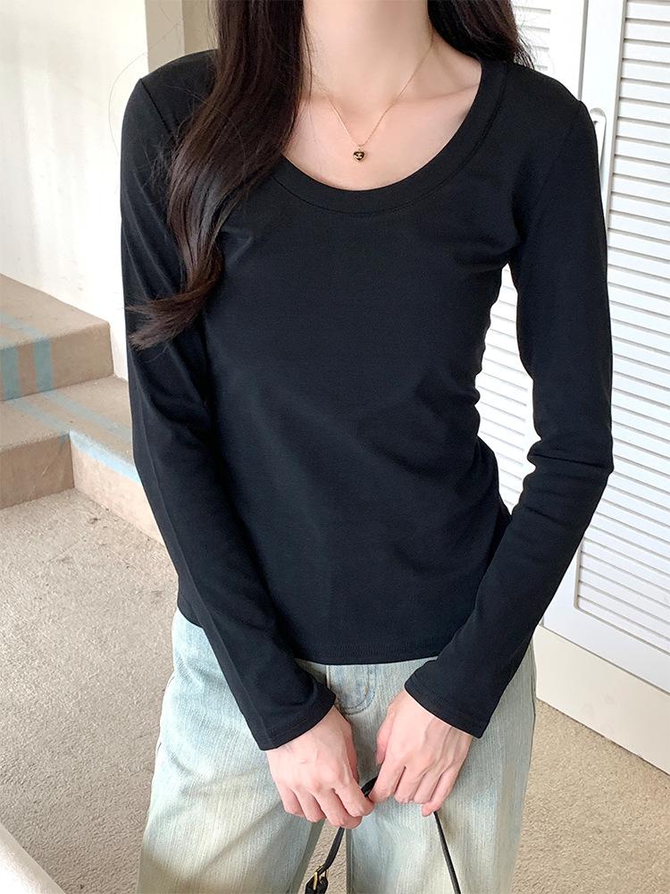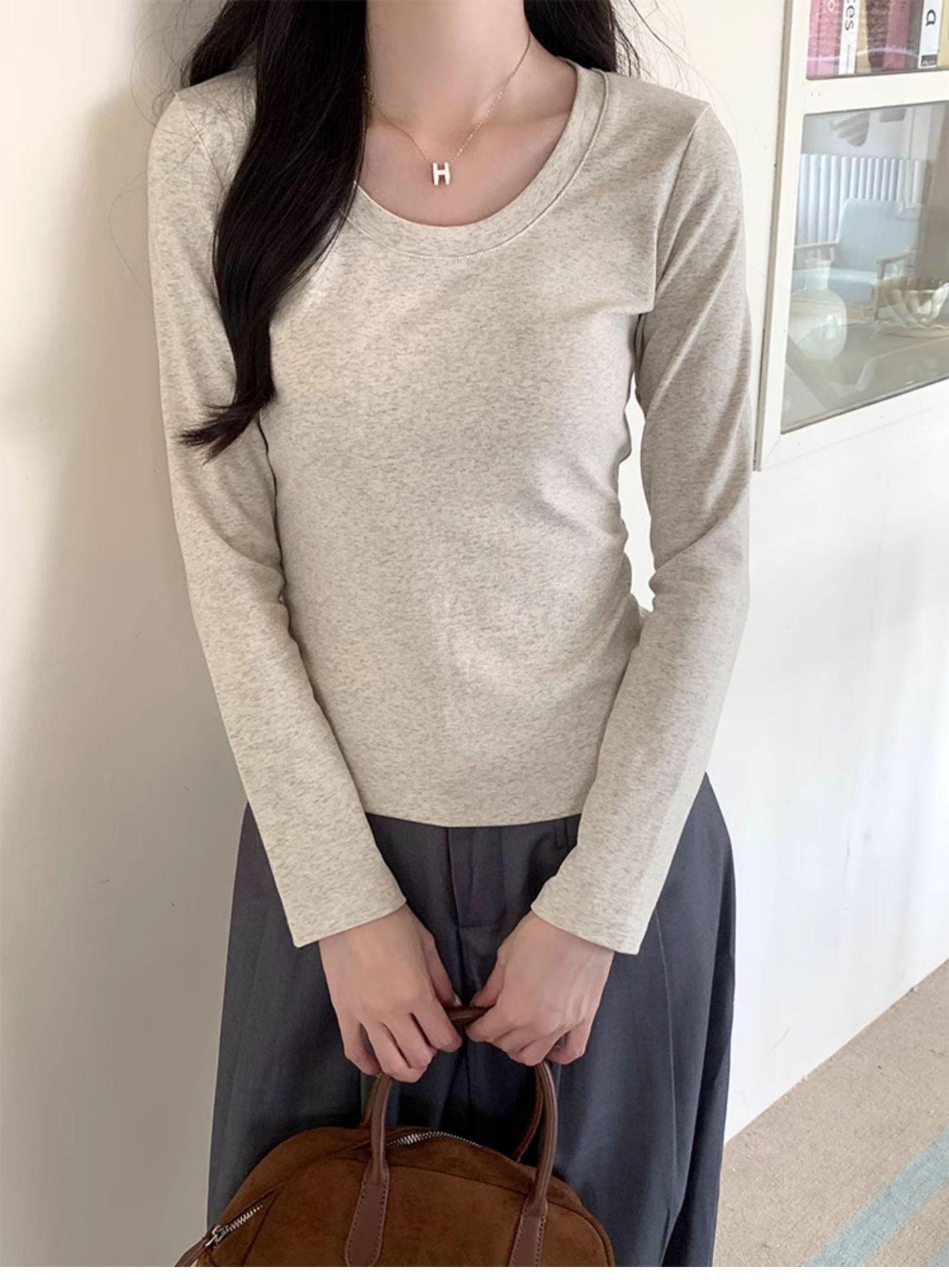 Playera de Algodón de 40 Hilos de Manga Larga con Hombro Regular Nuevo Cuello Redondo Básico Slim Color Sólido Trendy Base Top Adelgazante