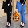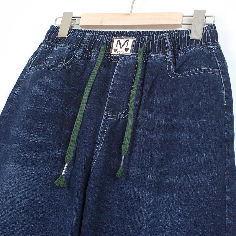 Jeans Harlan Elásticos de Cintura Alta para Mamá Gordita para Mujer Primavera y Otoño Talla Extra Combinan con Todo Cintura Elástica Holgados Adelgazantes Pantalones Zanahoria