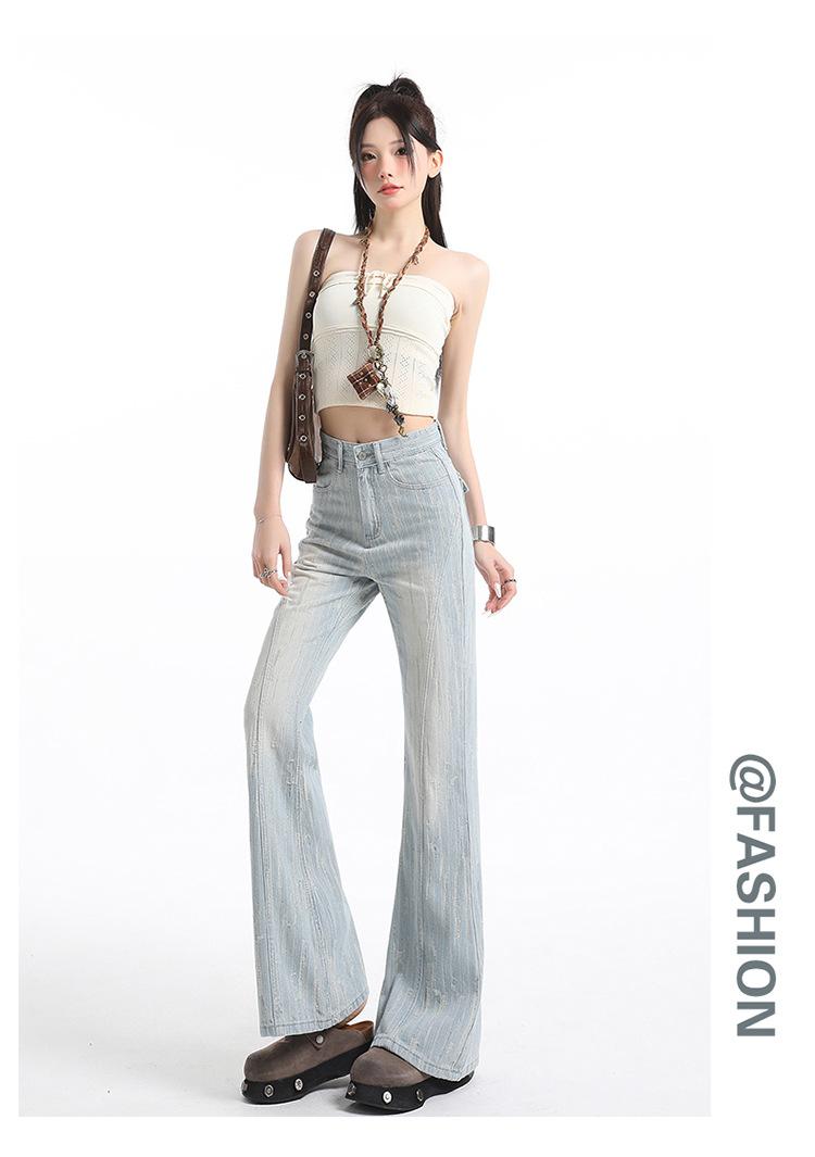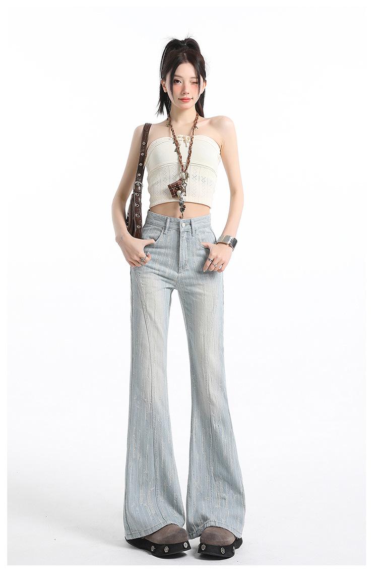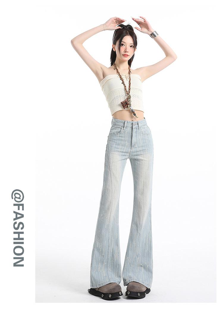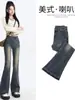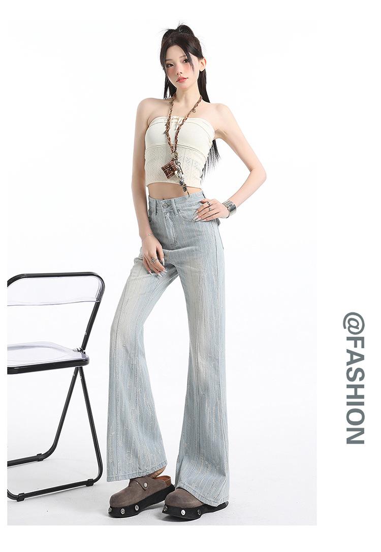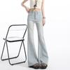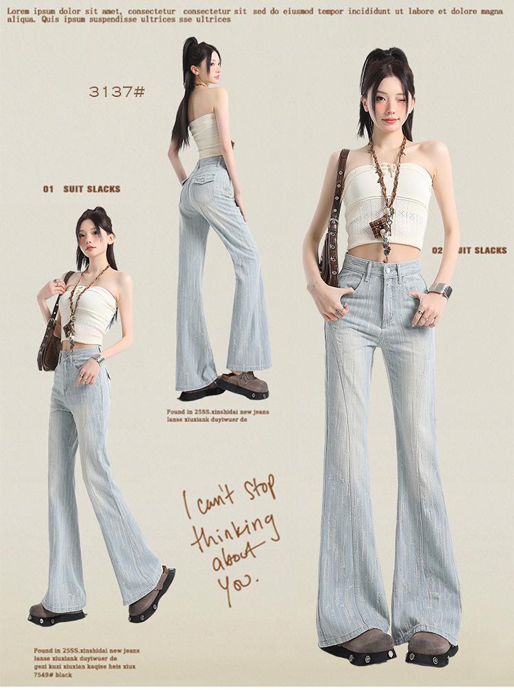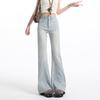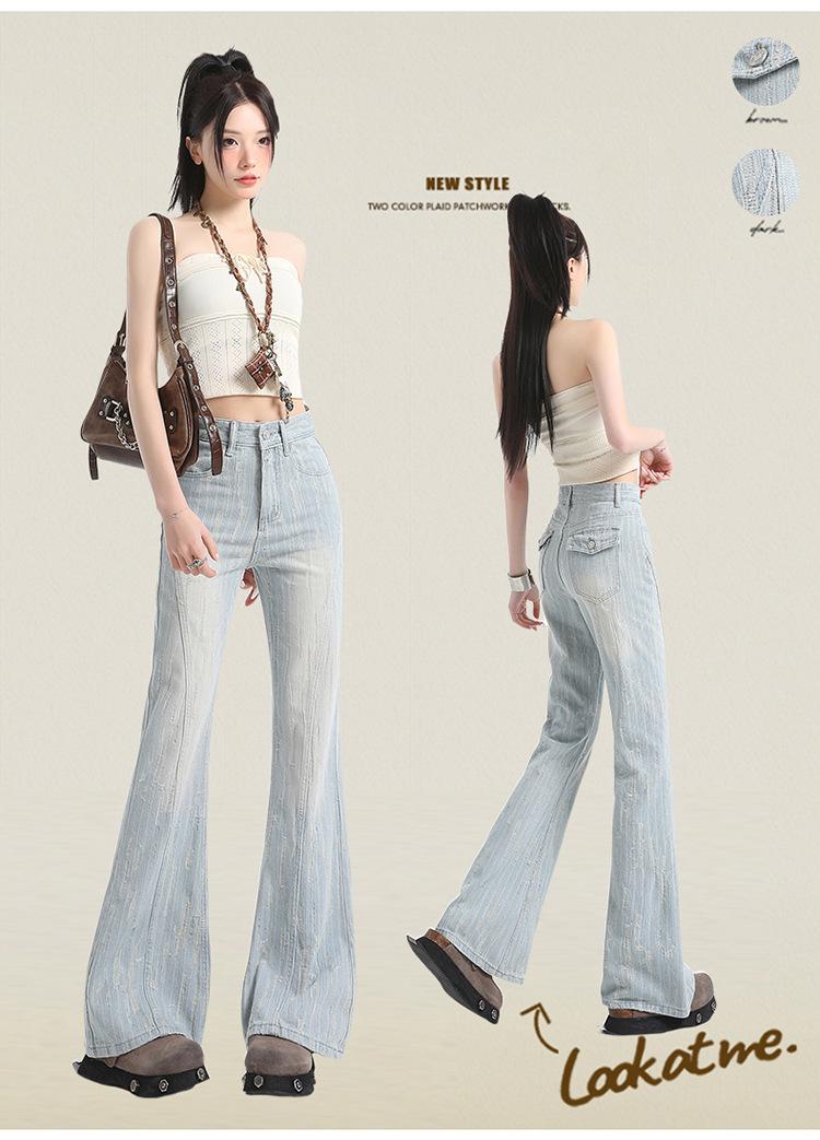 Jeans Microacampanados de Cintura Alta de Color Claro para Mujer, Versátiles, Holgados, Ajustados, Diseño Jacquard, Pantalones de Herradura