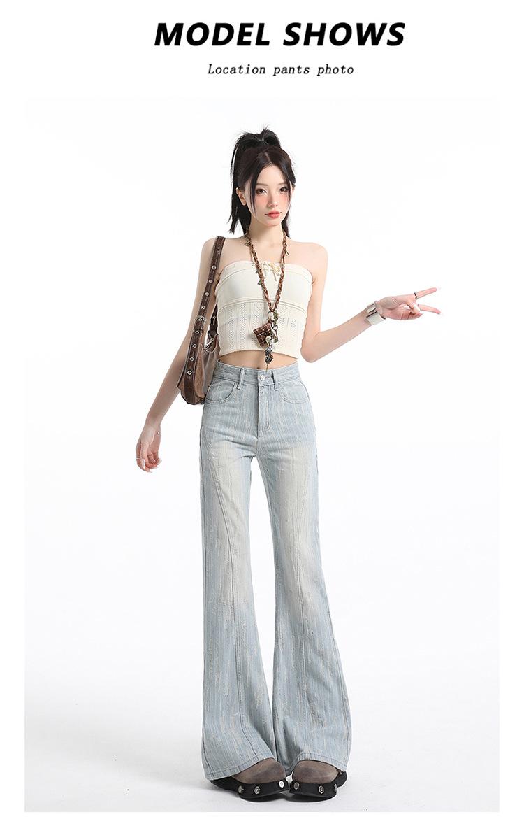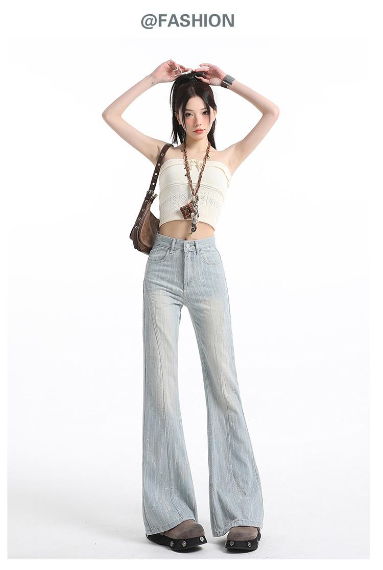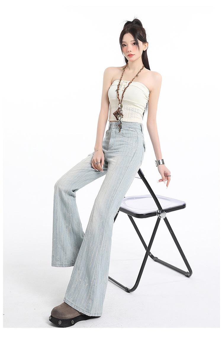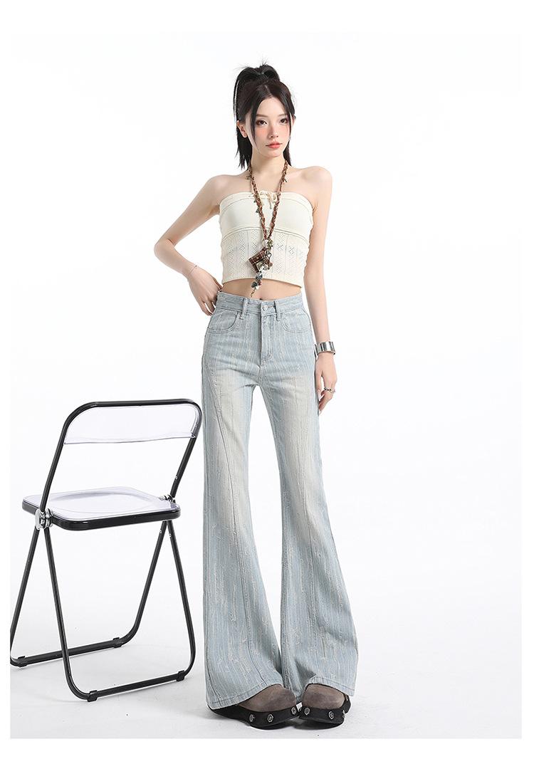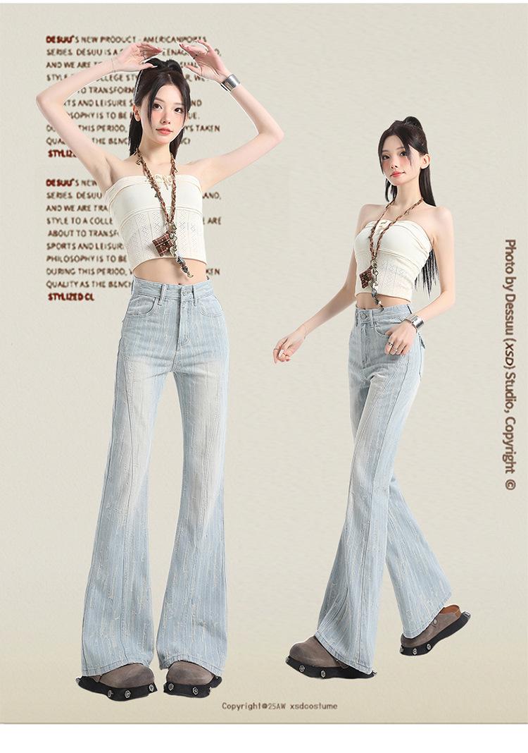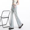 Jeans Microacampanados de Cintura Alta de Color Claro para Mujer, Versátiles, Holgados, Ajustados, Diseño Jacquard, Pantalones de Herradura