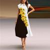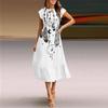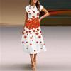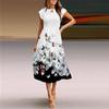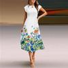2022 Nuevo Vestido Largo de Manga Corta de Verano para Mujer Cuello Redondo Estampado Vestido Retro Europeo y Americano Transfronterizo Comercio Exterior Ropa de Mujer