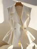 Chaleco Blazer Elegante Ceñidor de Cintura 2026 para Mujer, Chaleco Delgado Profesional sin Mangas de Primavera, Blanco