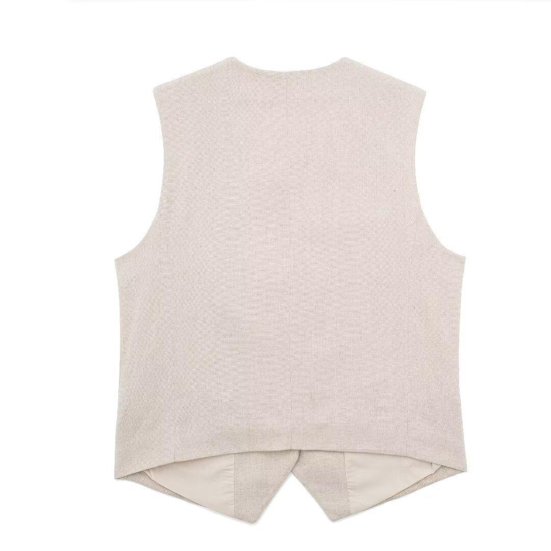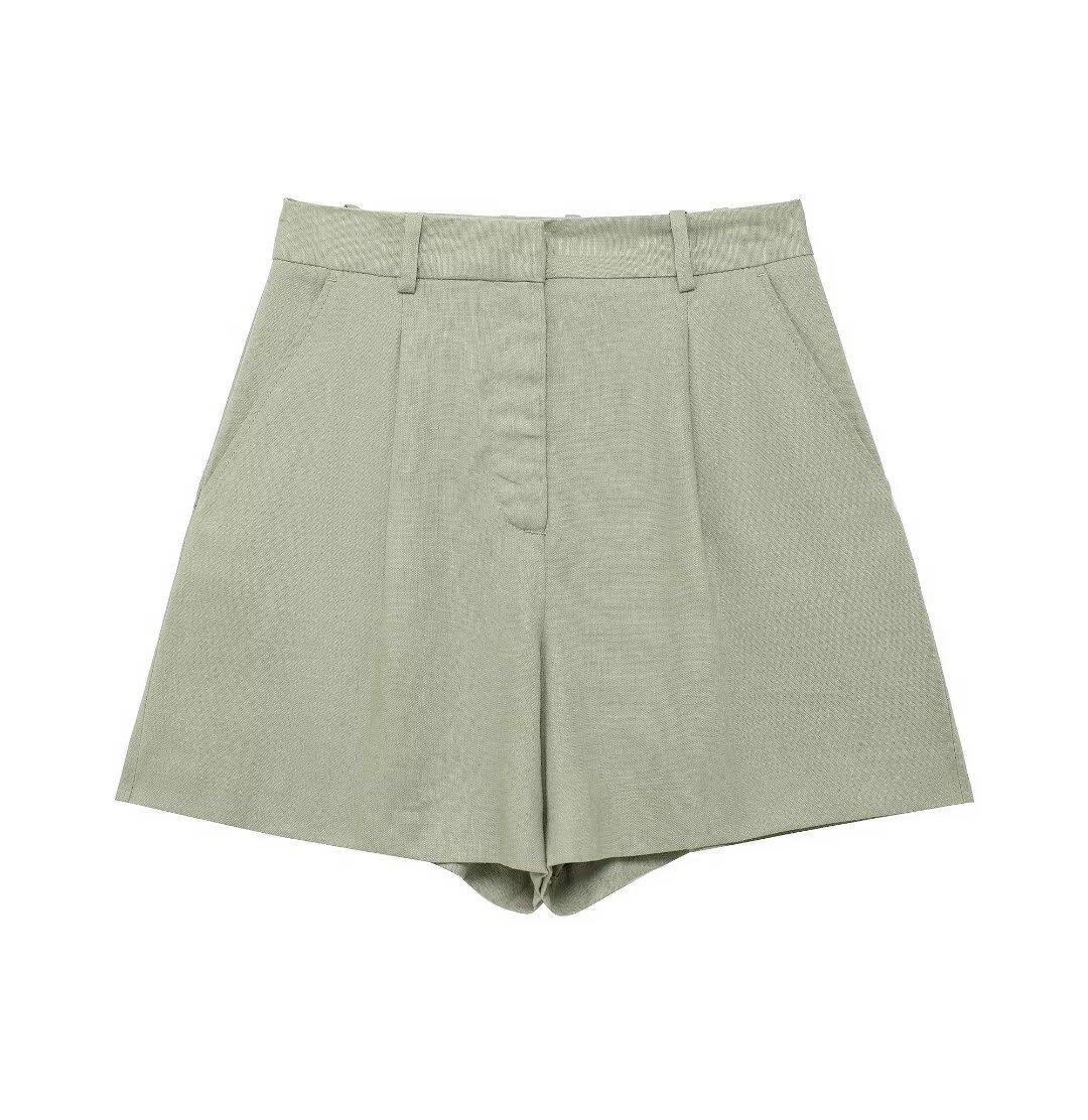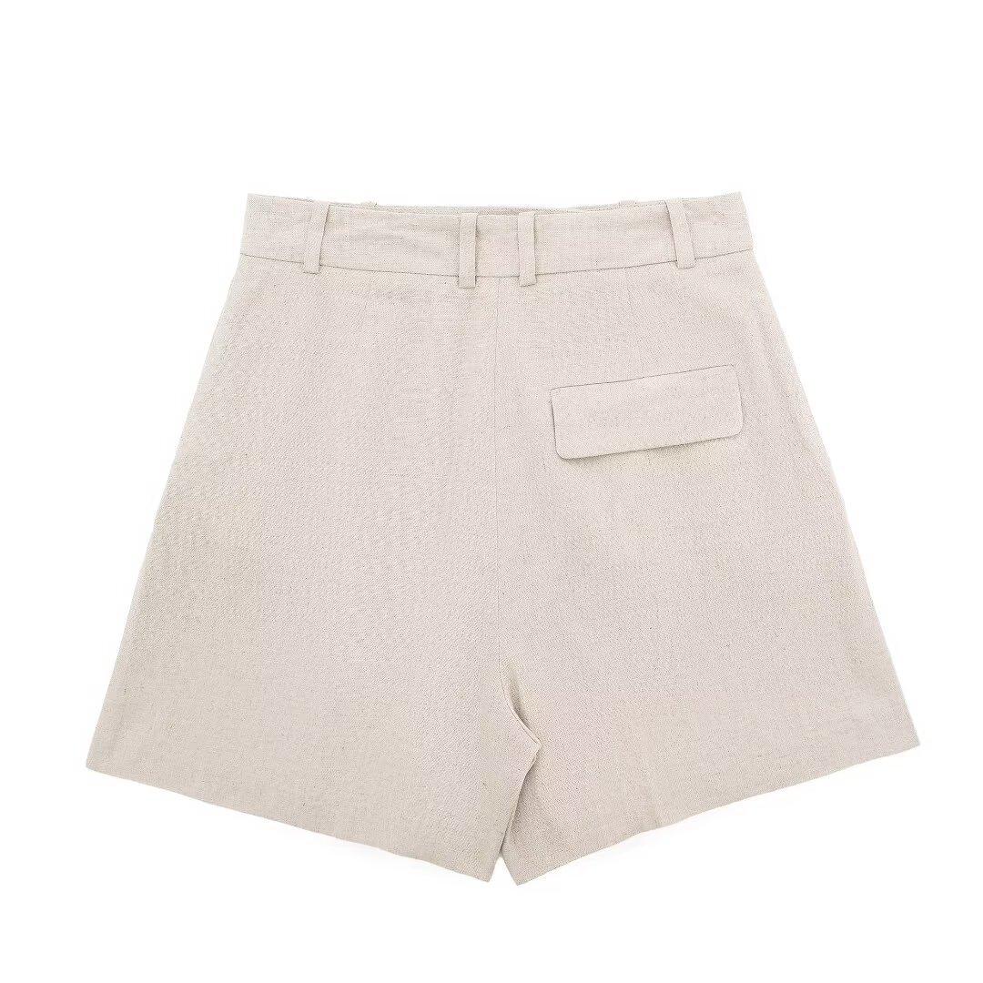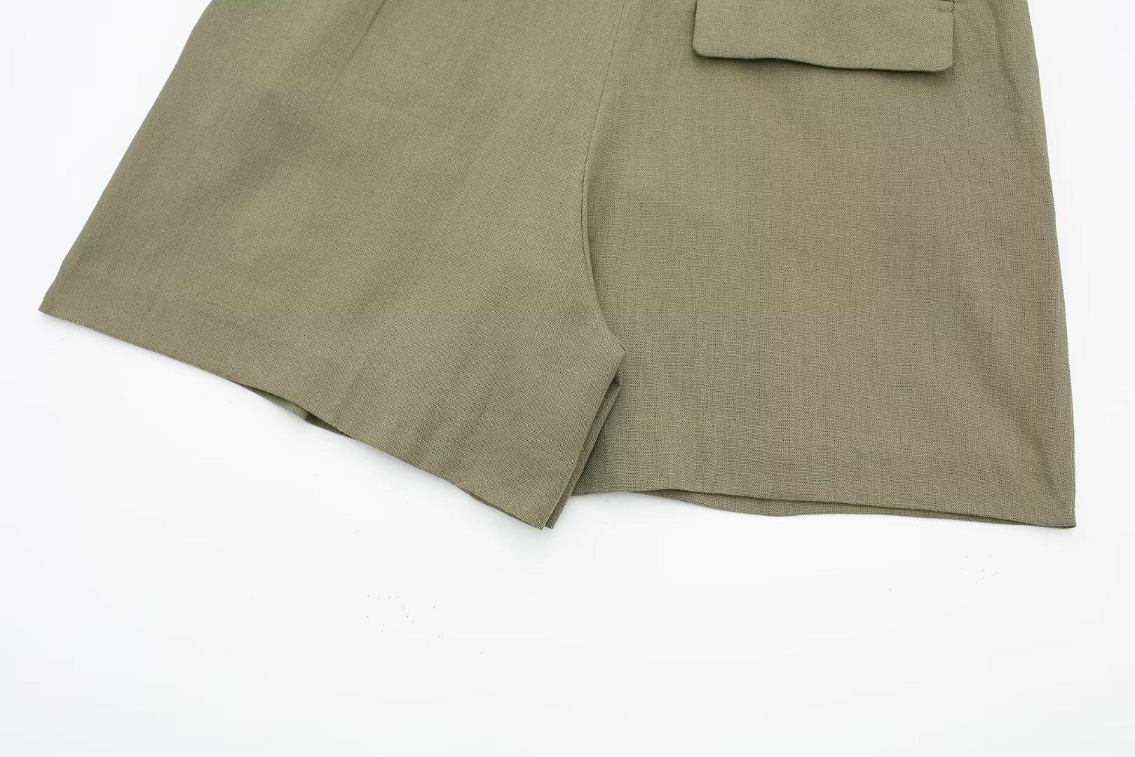 2024 primavera nuevo chaleco de mujer estilo europeo y americano mezclado con cáñamo shorts casuales 9929521 9929421