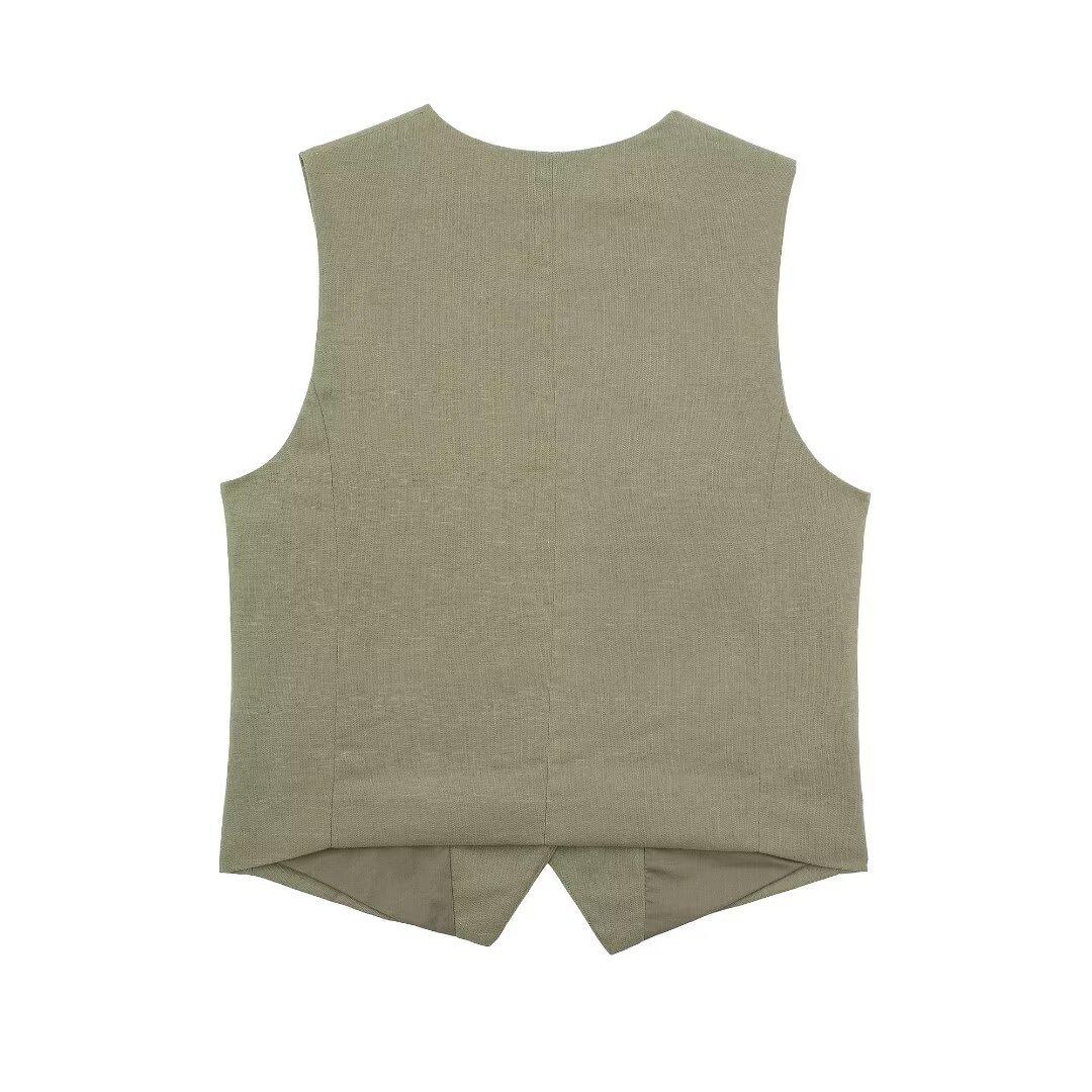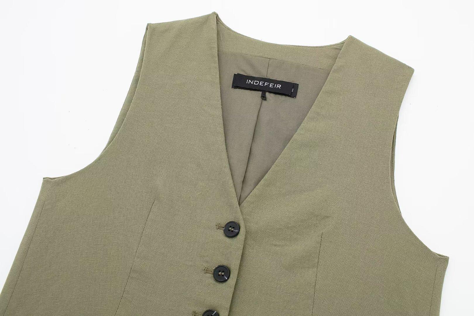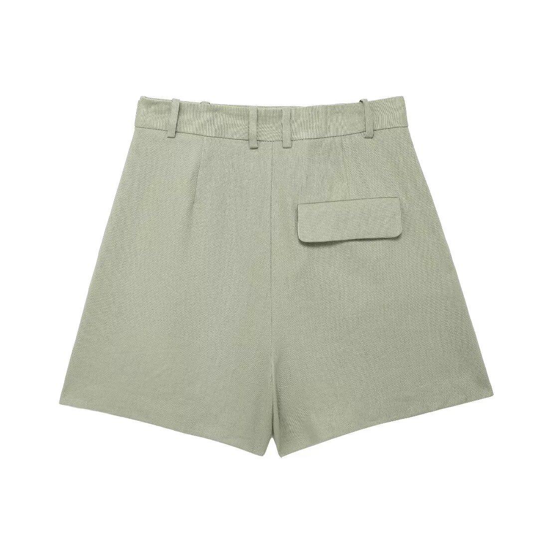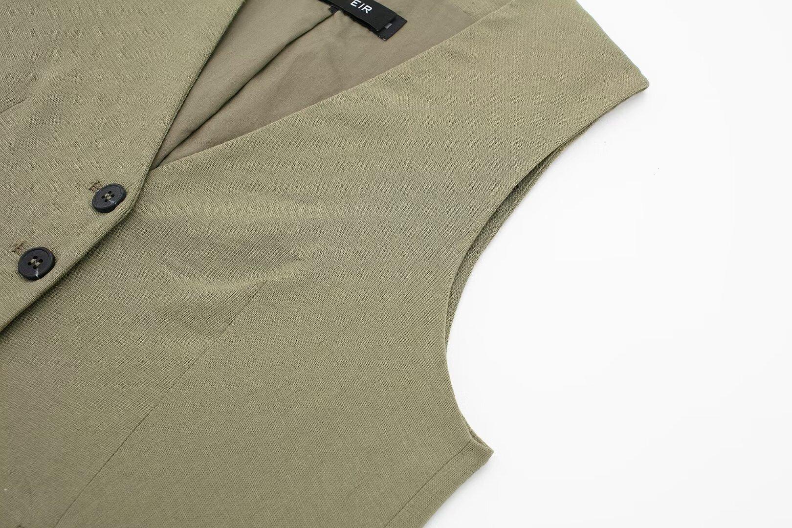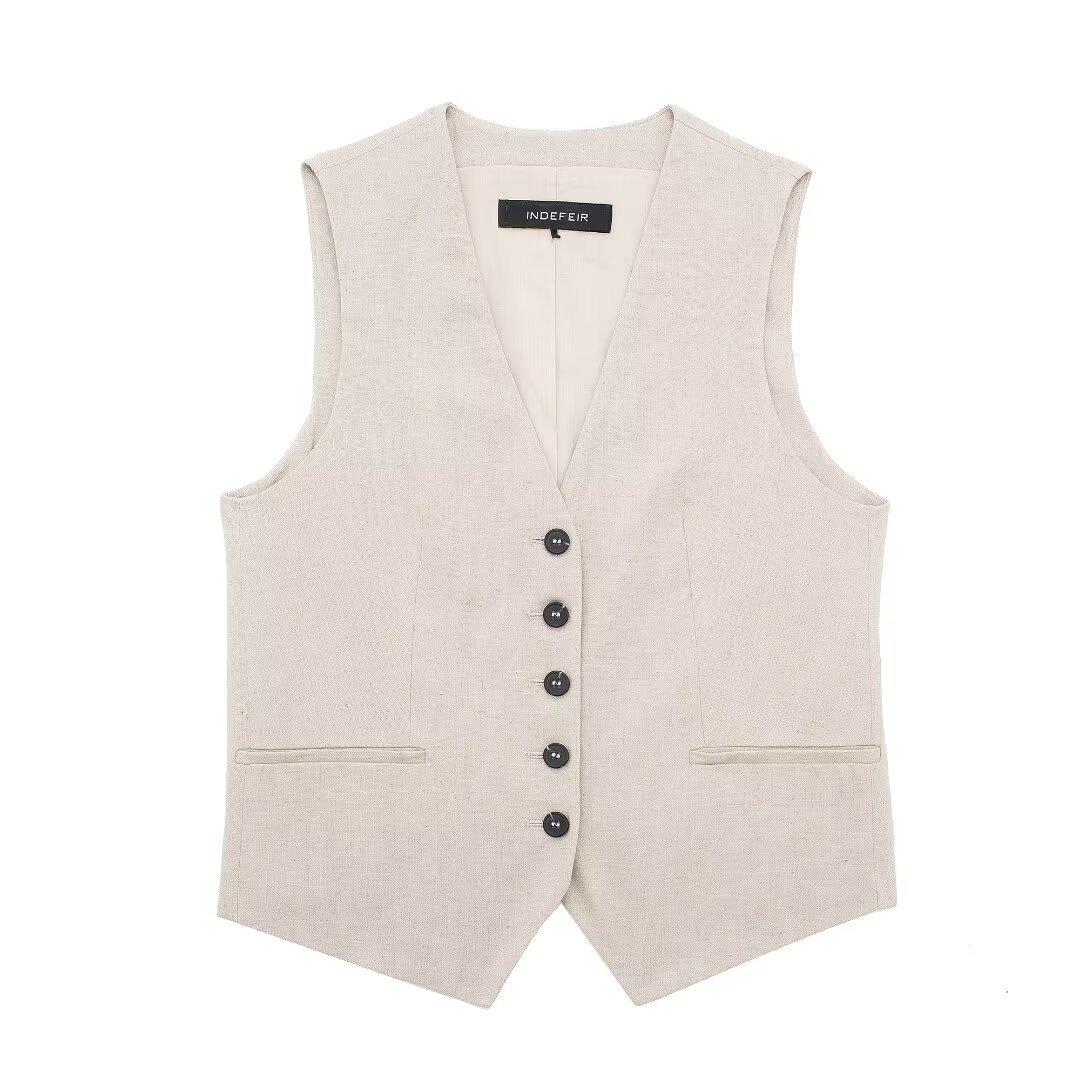 2024 primavera nuevo chaleco de mujer estilo europeo y americano mezclado con cáñamo shorts casuales 9929521 9929421