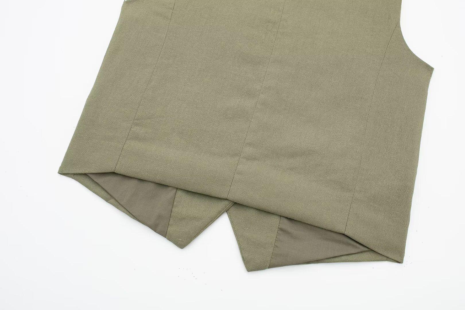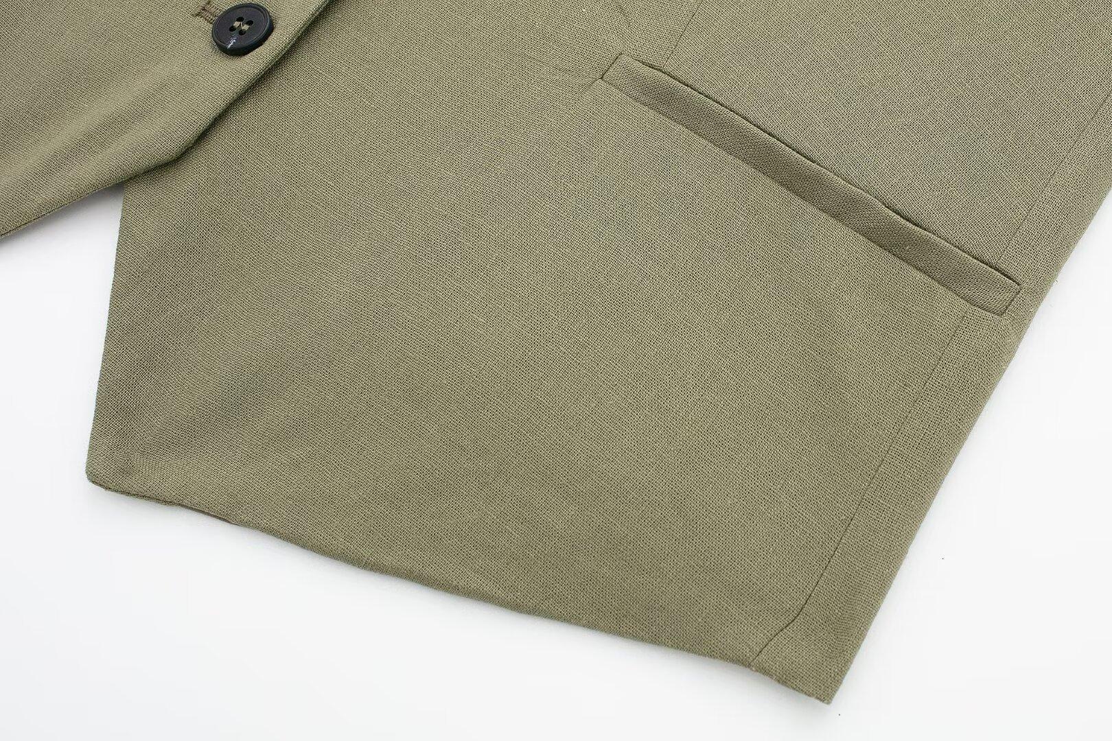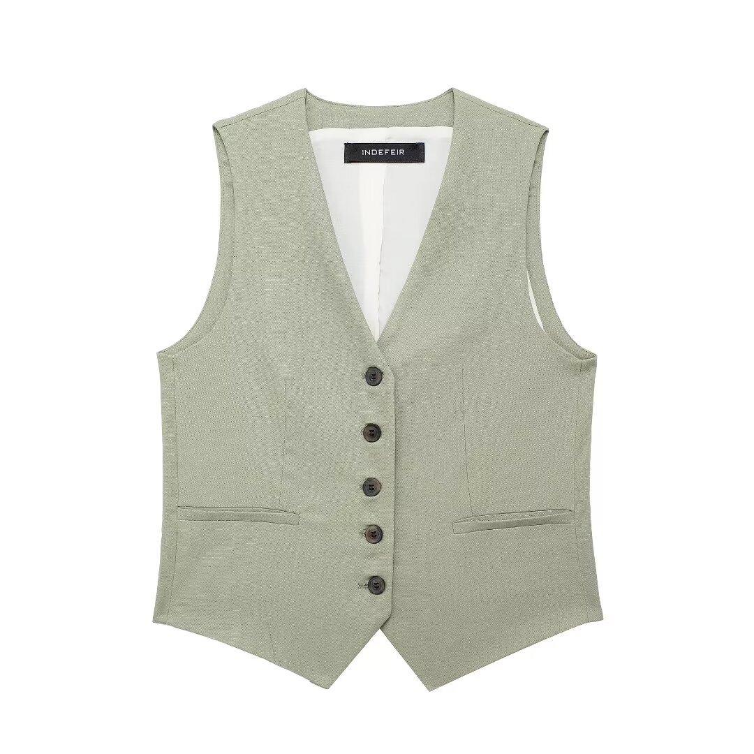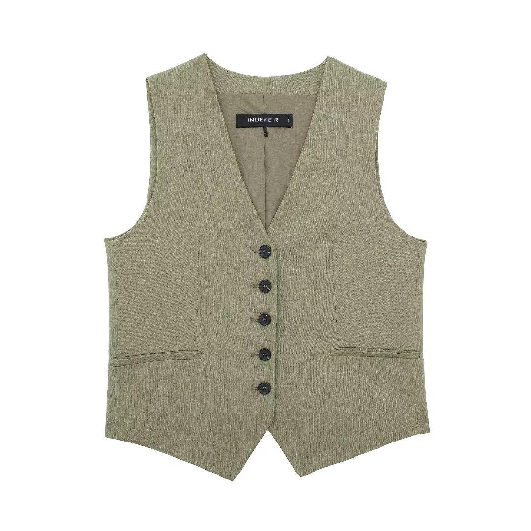 2024 primavera nuevo chaleco de mujer estilo europeo y americano mezclado con cáñamo shorts casuales 9929521 9929421