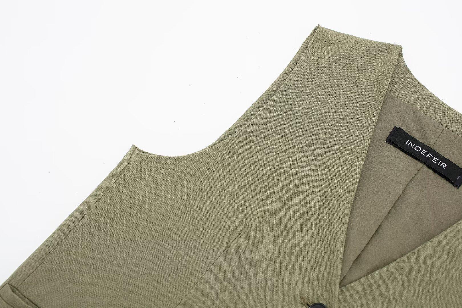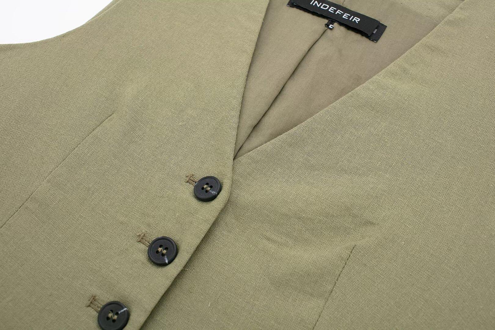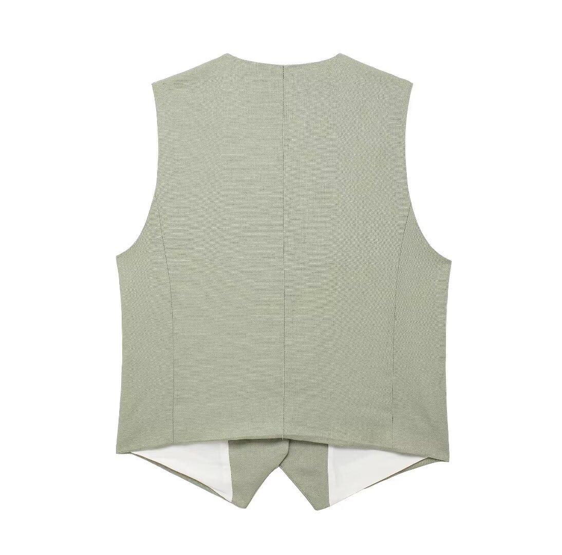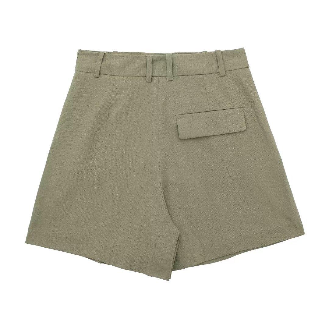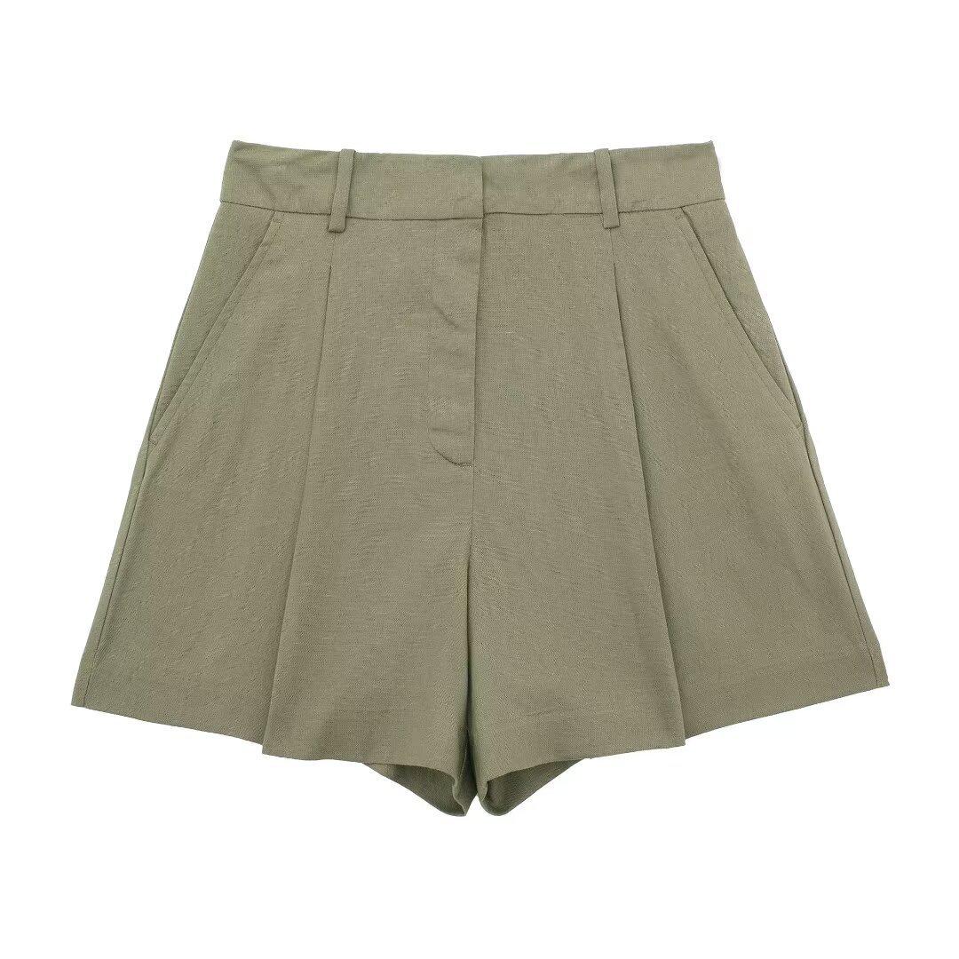 2024 primavera nuevo chaleco de mujer estilo europeo y americano mezclado con cáñamo shorts casuales 9929521 9929421