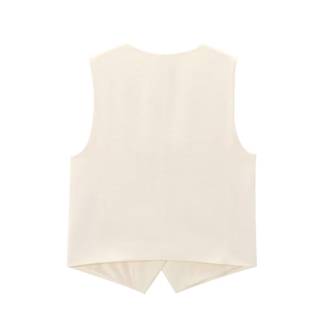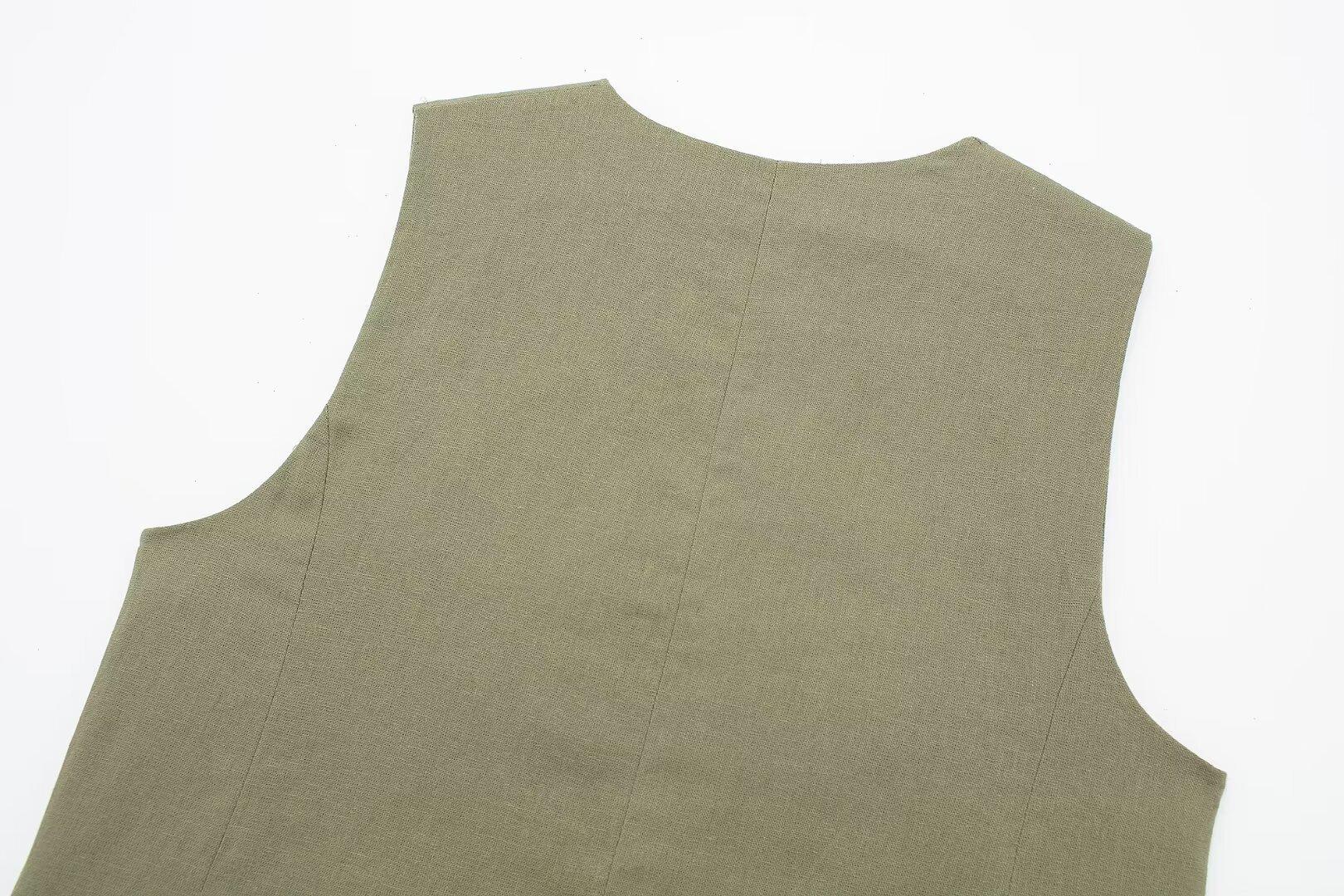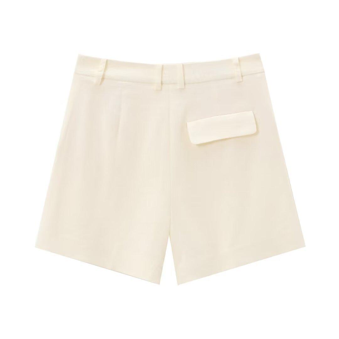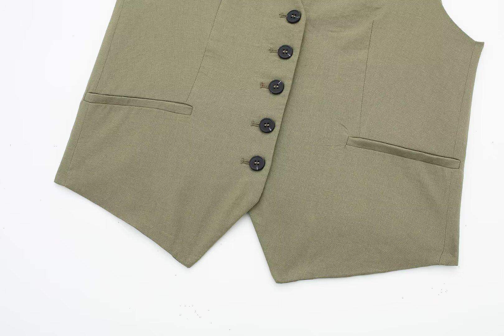 2024 primavera nuevo chaleco de mujer estilo europeo y americano mezclado con cáñamo shorts casuales 9929521 9929421