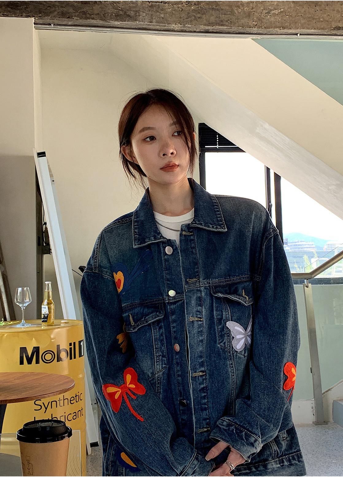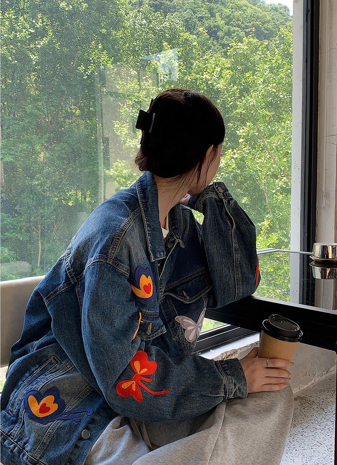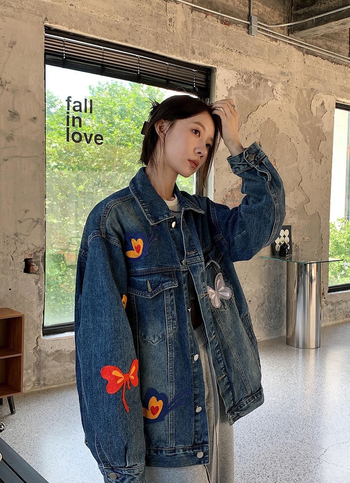 Abrigo de mezclilla lavada bordado con mariposas de industria pesada para mujer, nuevo para primavera y otoño, diseño retro de alta gama, chaqueta chic top