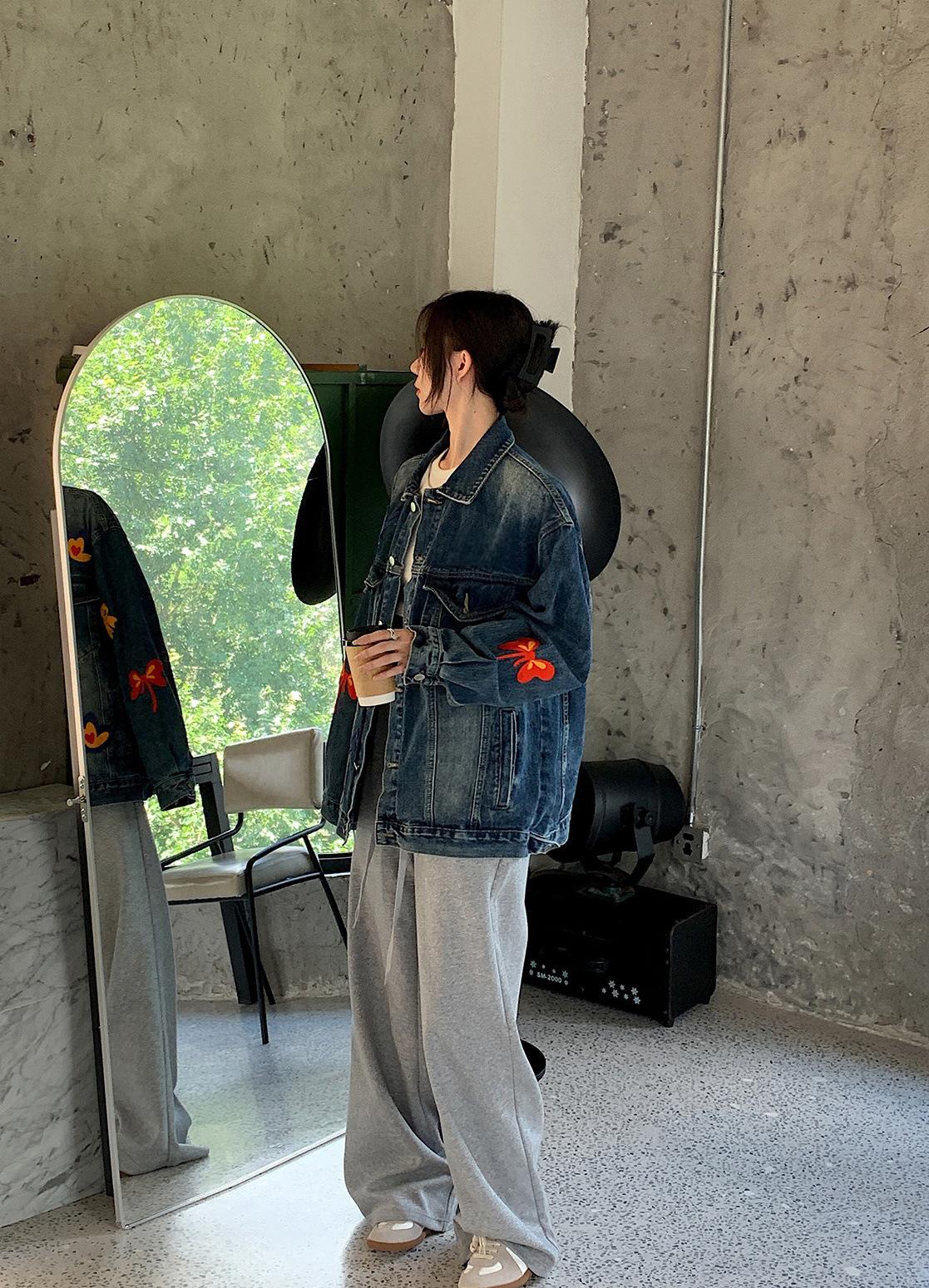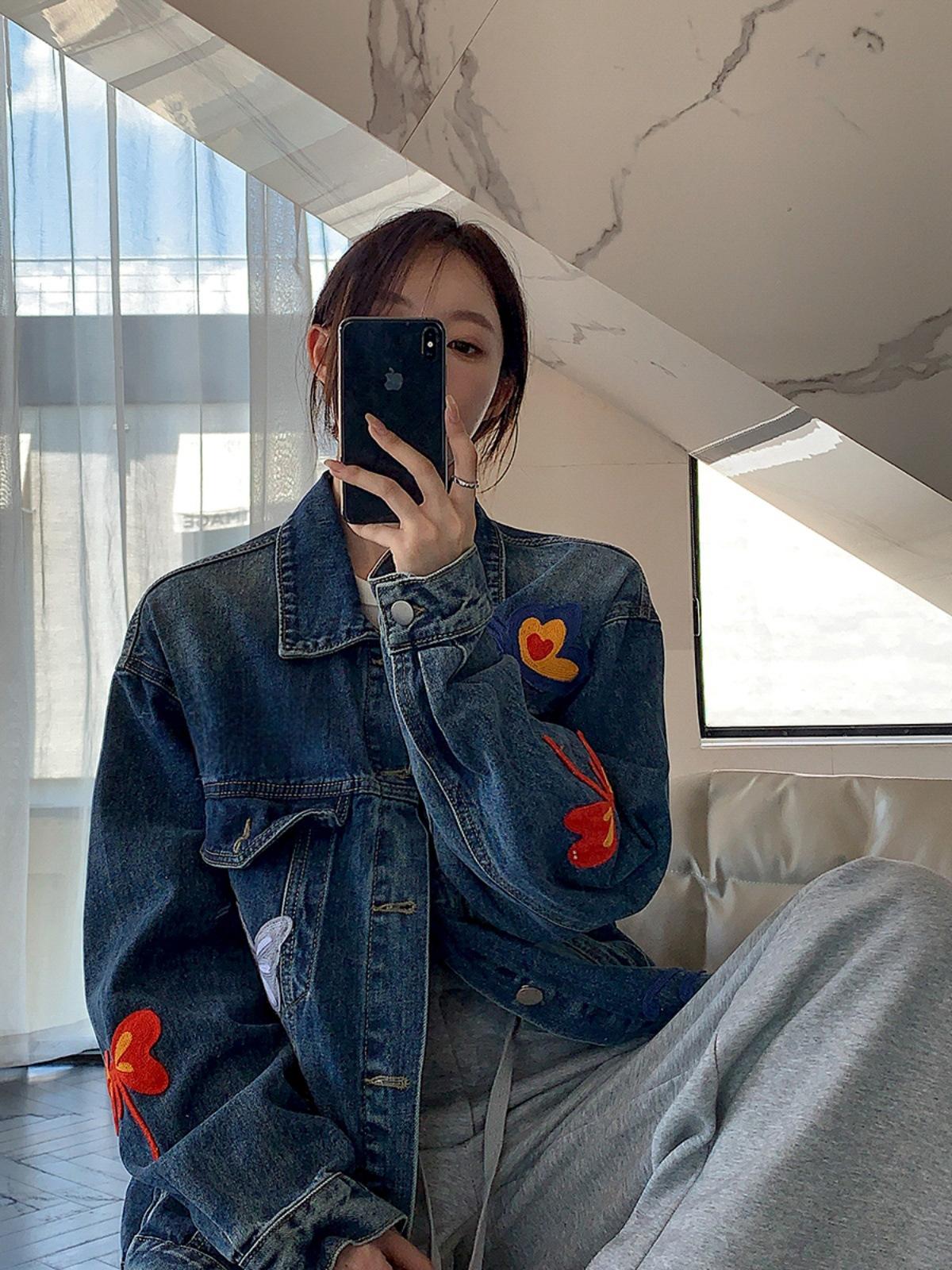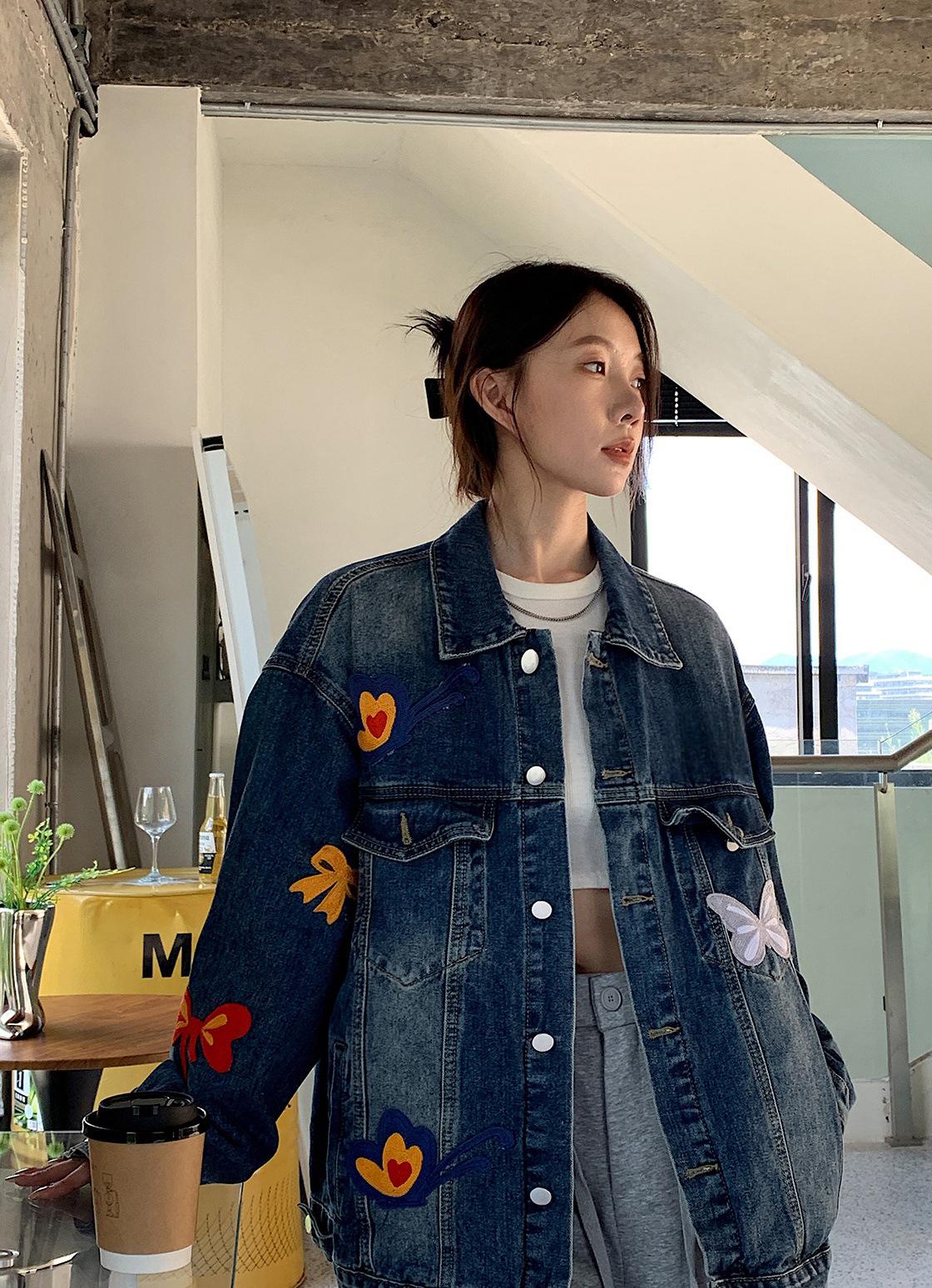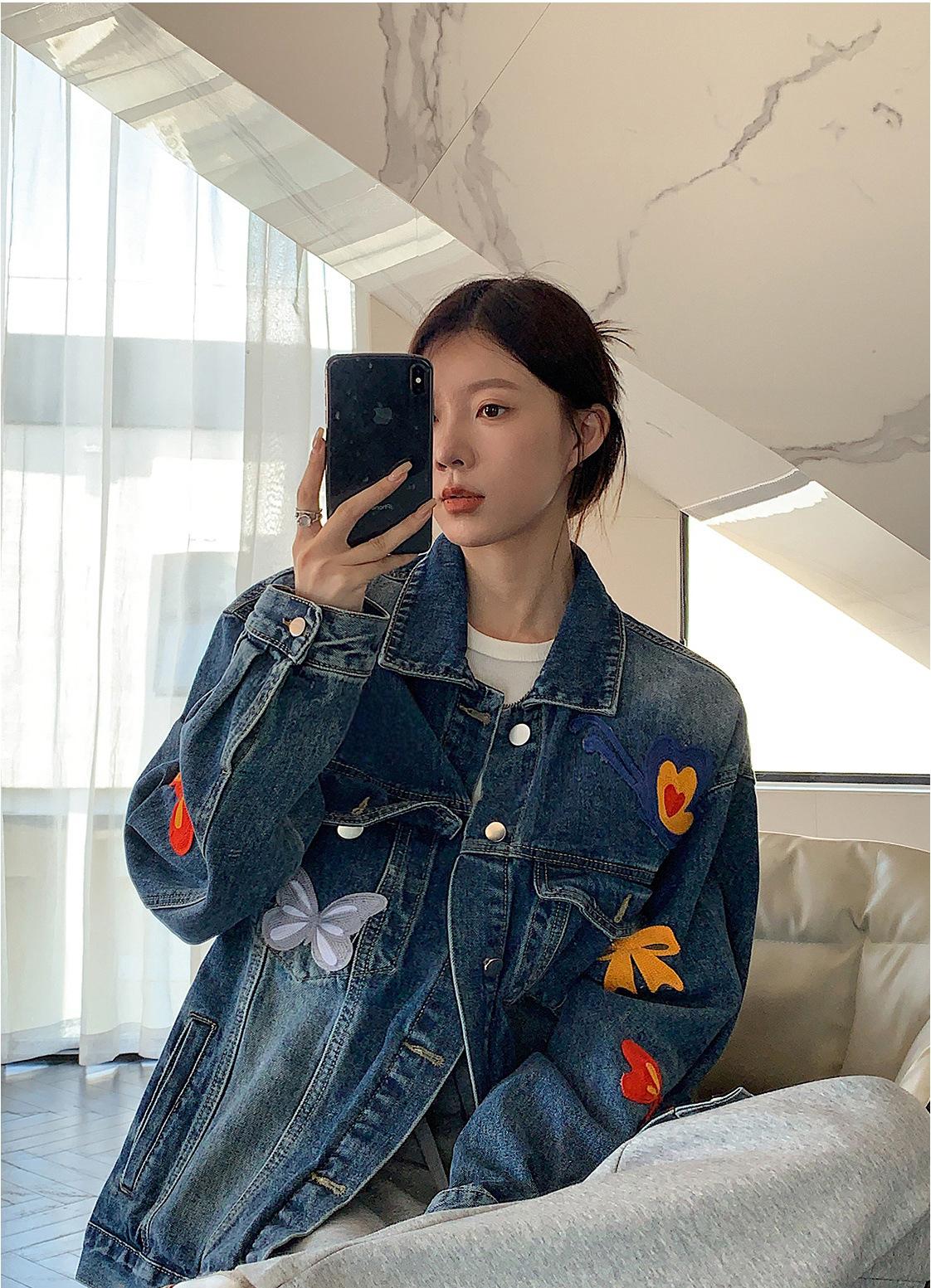 Abrigo de mezclilla lavada bordado con mariposas de industria pesada para mujer, nuevo para primavera y otoño, diseño retro de alta gama, chaqueta chic top