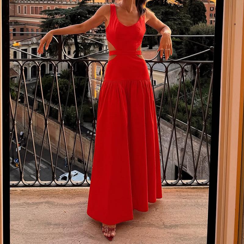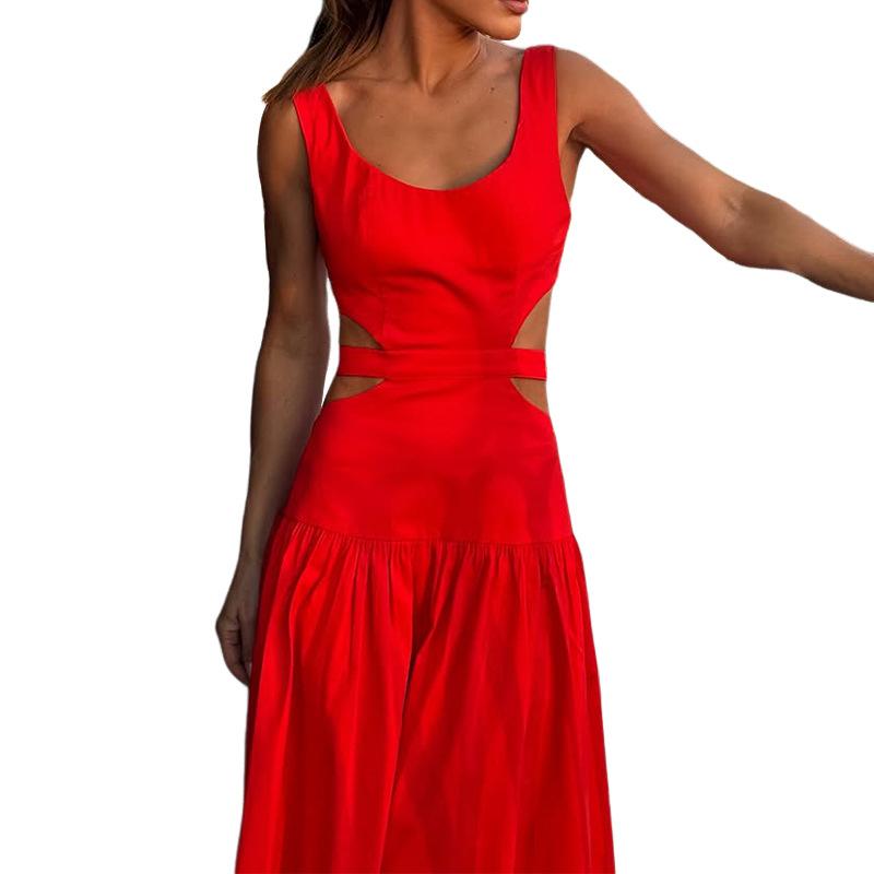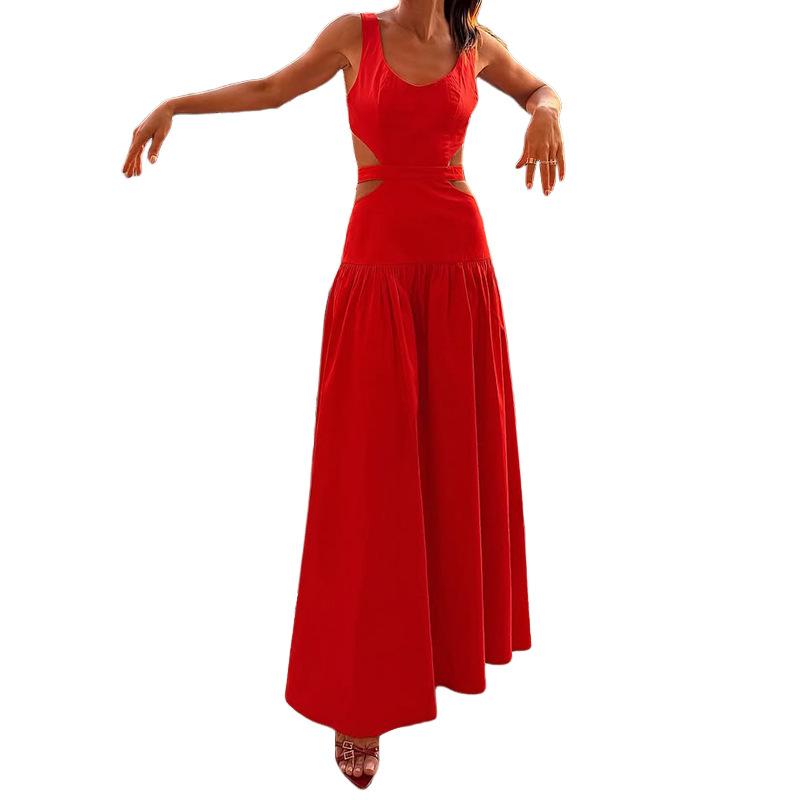 Fd2037 Amazon 2025 Primavera y Verano Nuevo Vestido de Moda para Damas Transfronterizo Sexy Color Puro Espalda Descubierta Cut Out