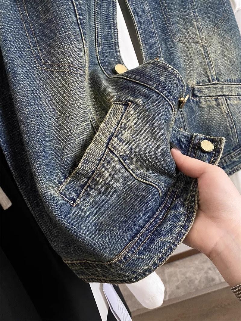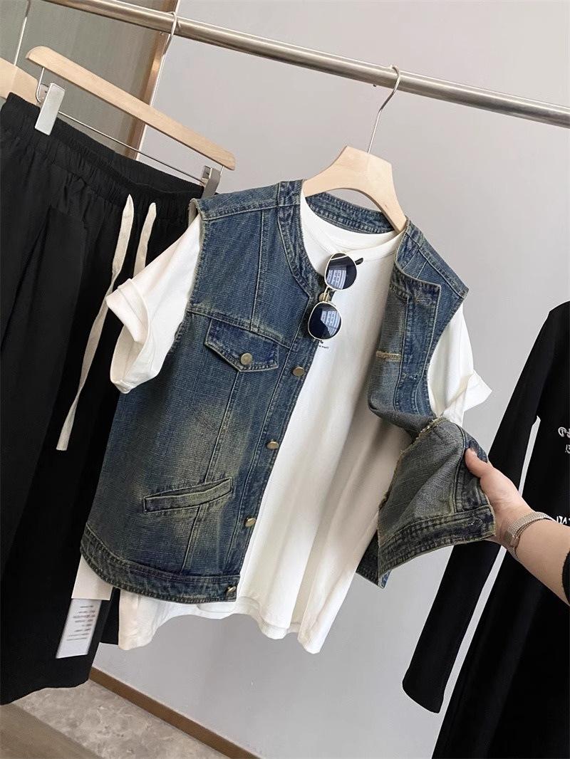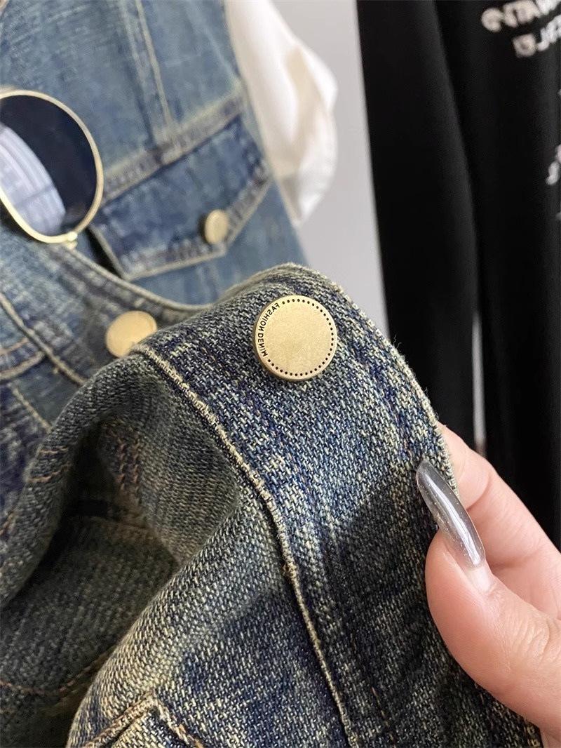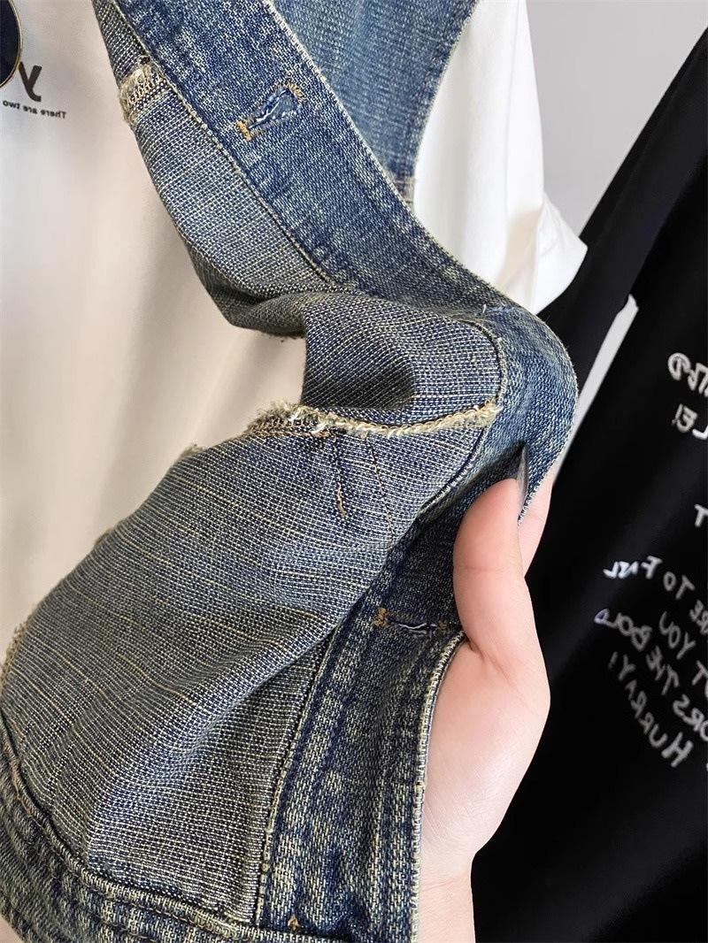 Chaleco de Mezclilla con Bolsillo Lavado Vintage para Mujer Diseño de Primavera y Otoño Sensación Apilado Sin Mangas Casual Winch Chaleco Top