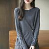 Otoño/invierno 2024 nuevo suéter de lana peinada de cuello redondo con sentido del diseño dividido color sólido suelto camiseta base top