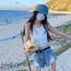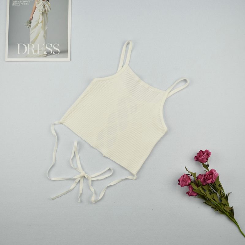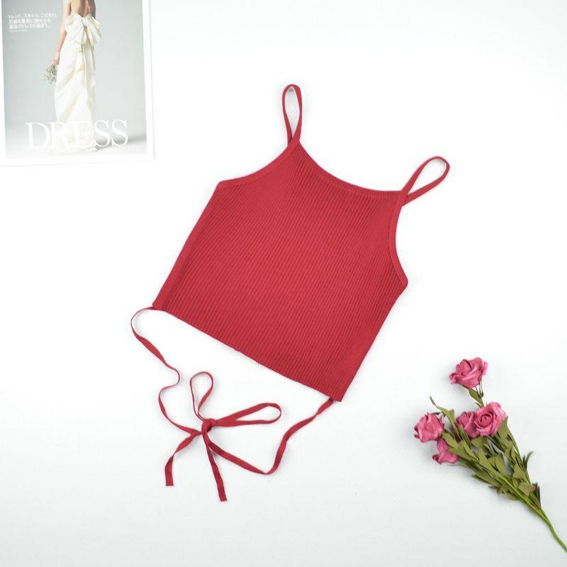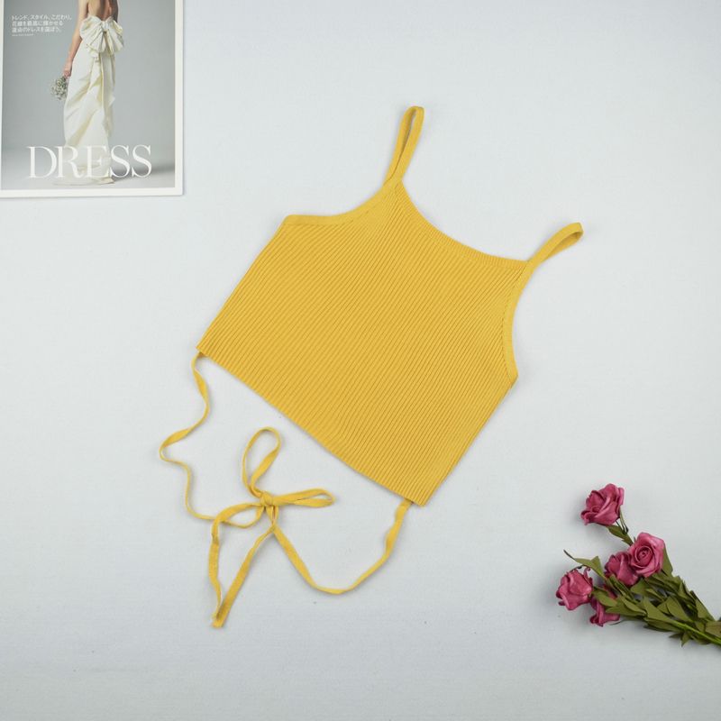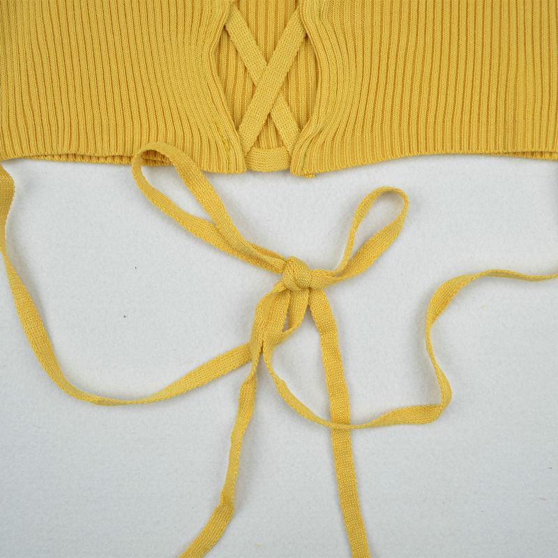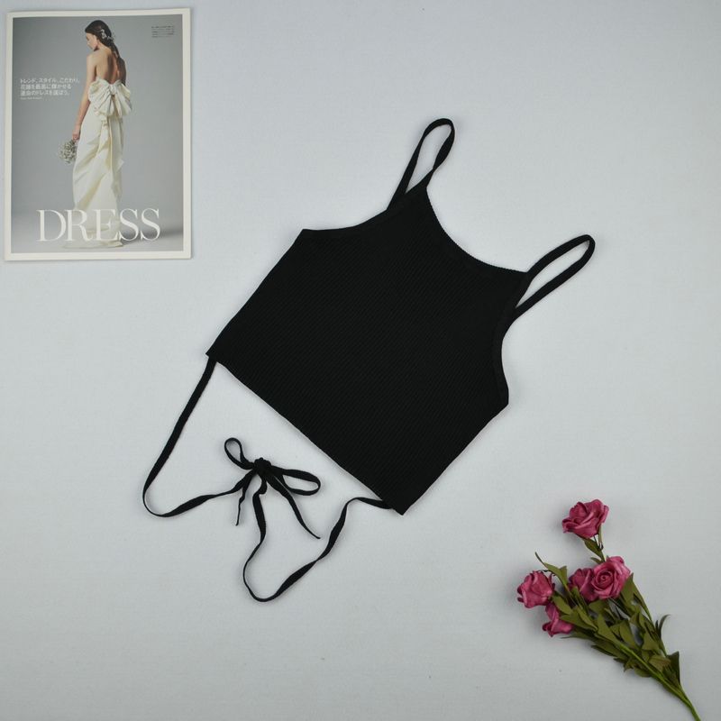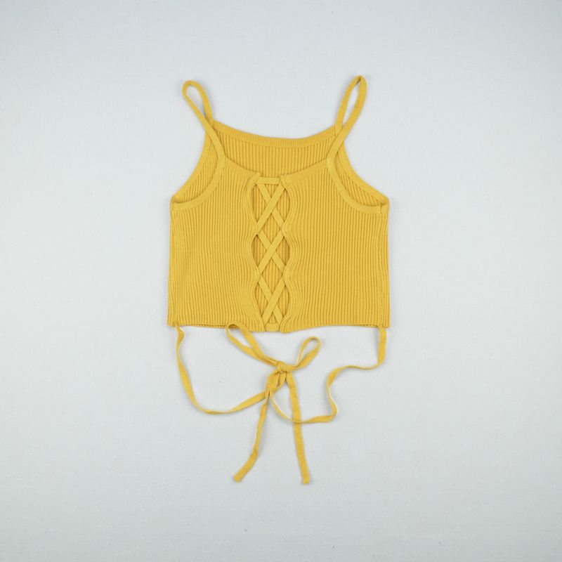 Camisola casual de estilo europeo y americano con espalda cruzada, chaleco corto base con espalda hueca y cordones de encaje, estilo motociclista