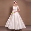 Xiuxixi 2025 Verano Nuevo Vestido Elegante de Satén de Cintura Alta con Flores y Hombros Descubiertos Falda Larga de Alta Gama 88305
