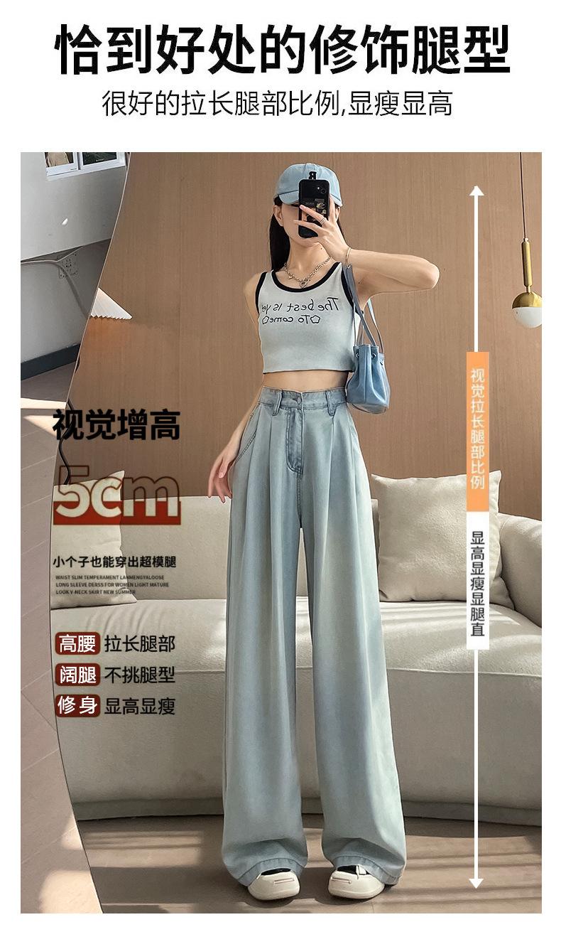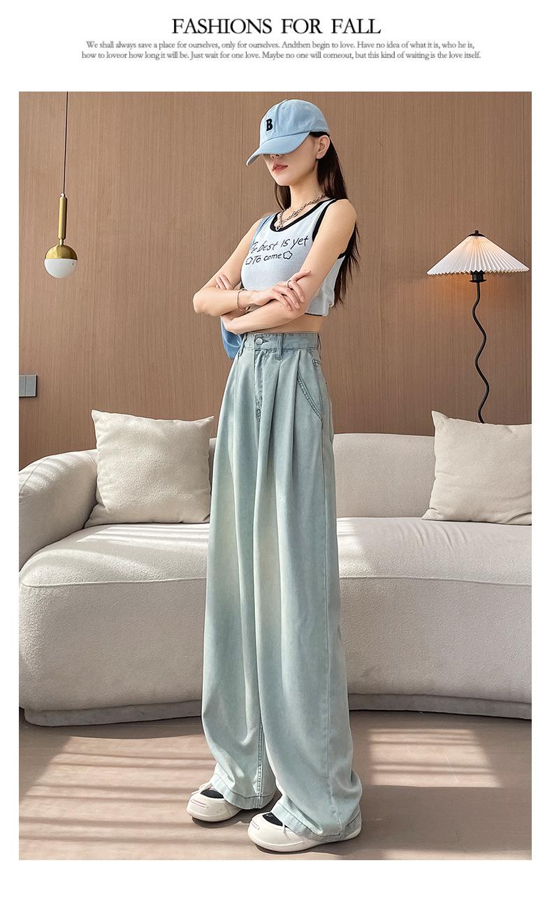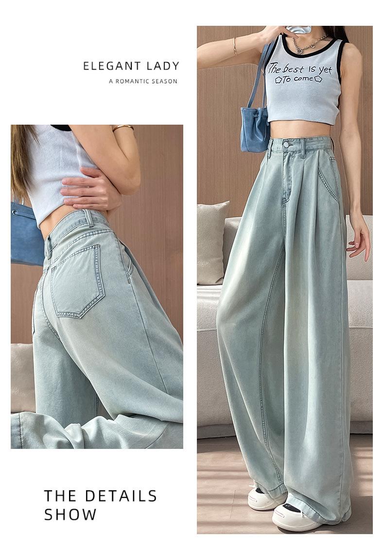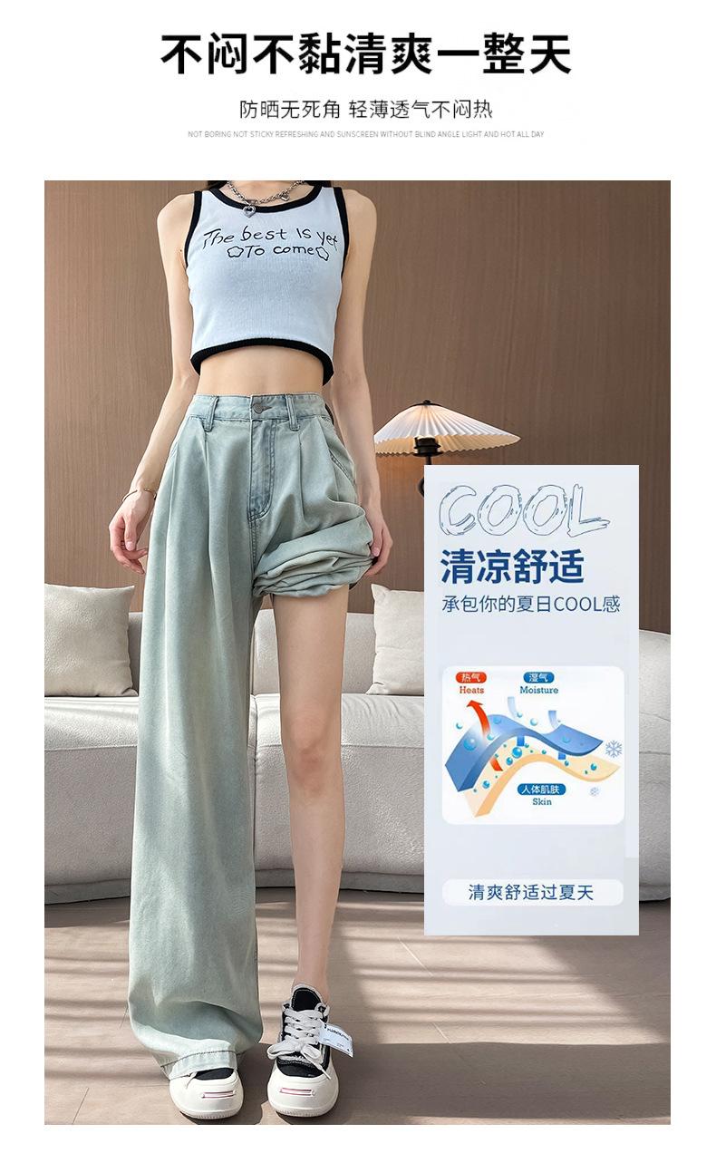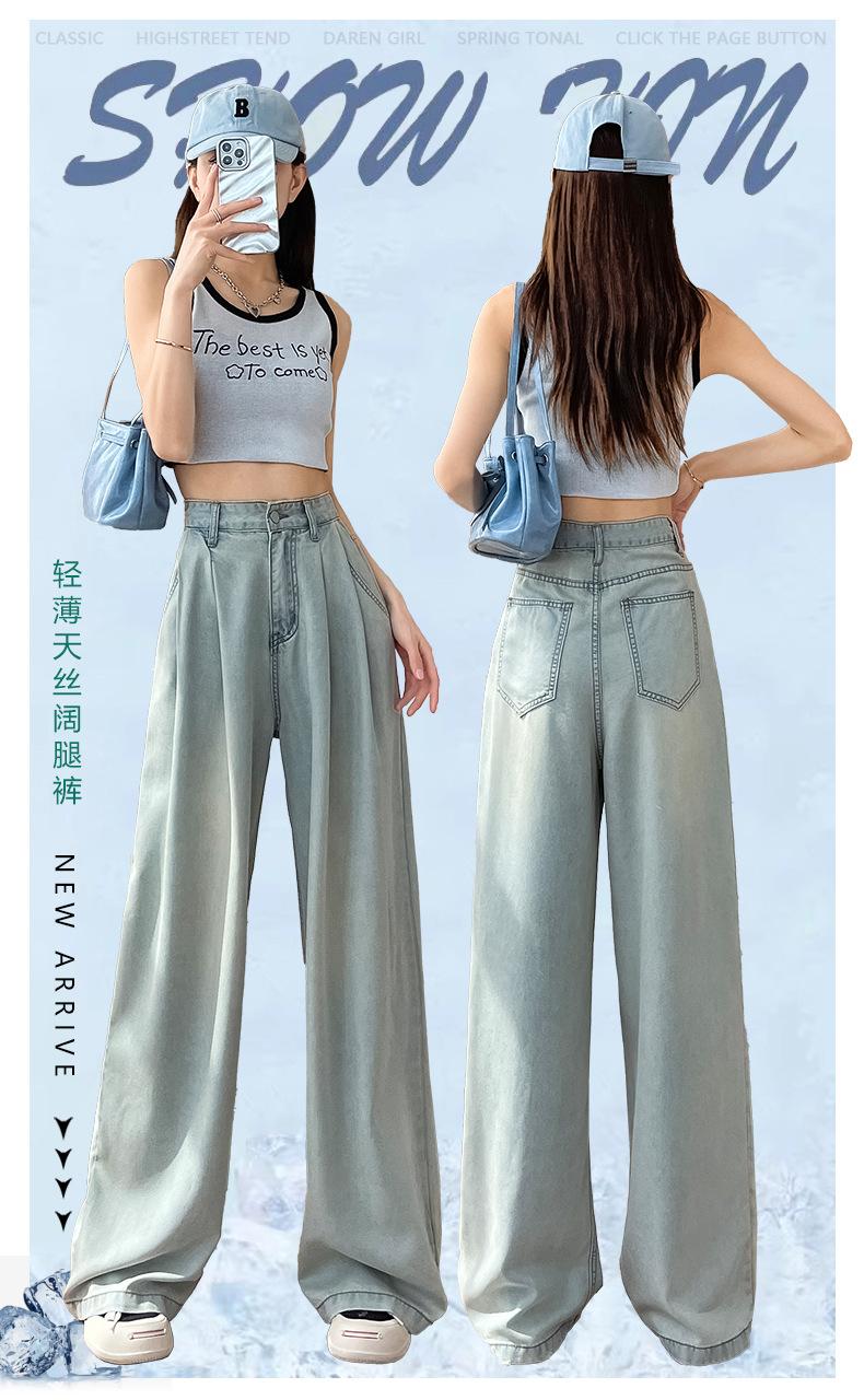 Jeans Tencel de Pierna Ancha de Color Claro para Mujer en Verano, Delgados, de Cintura Alta, Diseño Slim, Pantalones Rectos de Seda Helada hasta el Piso