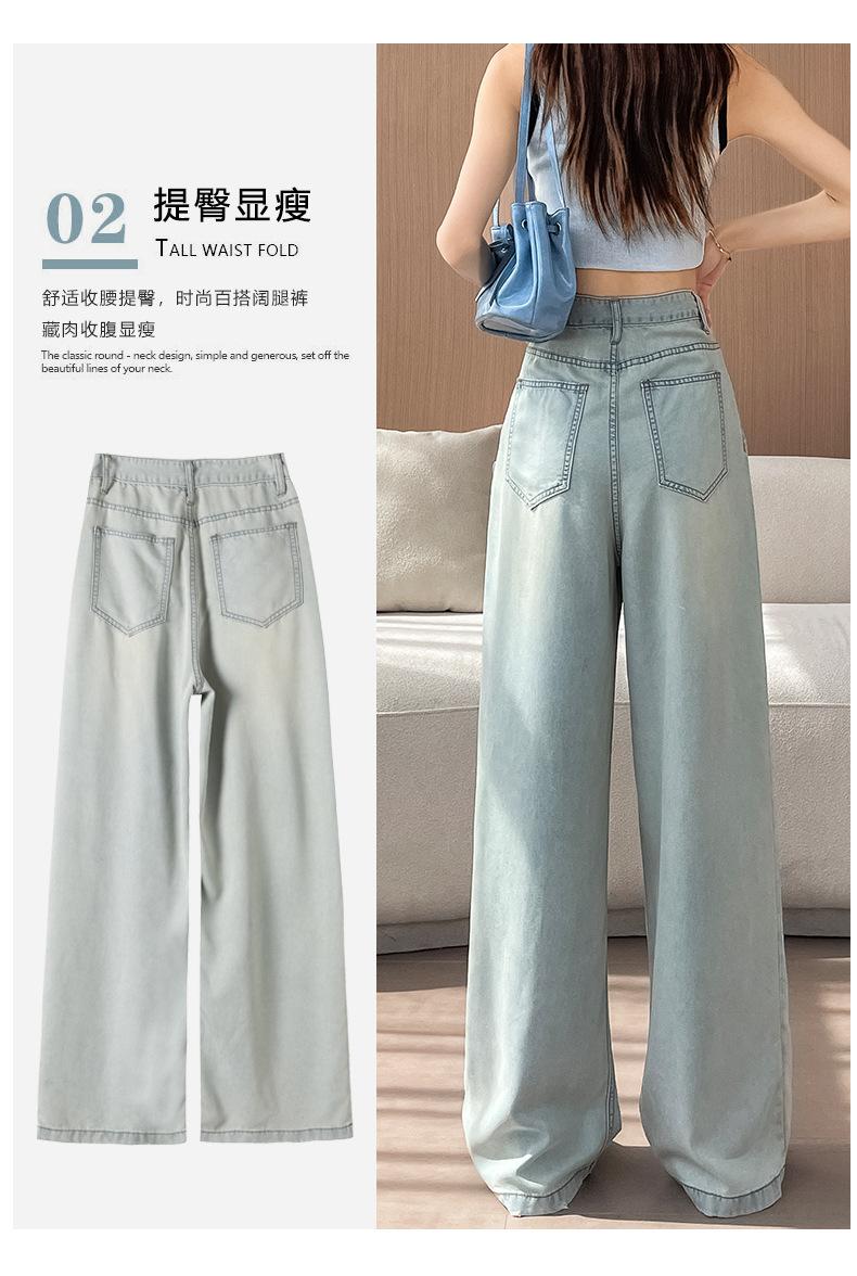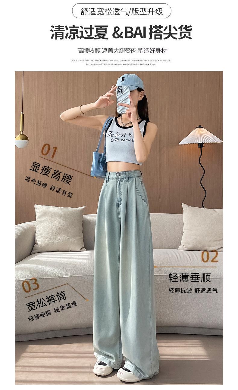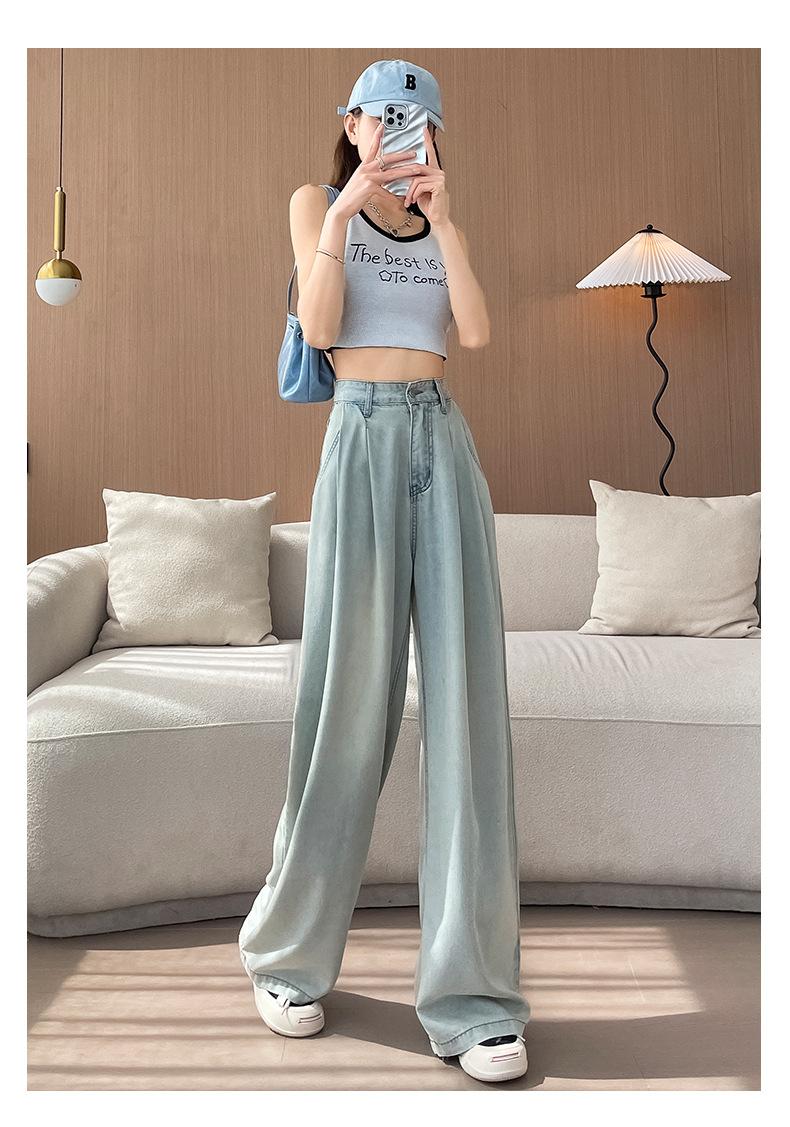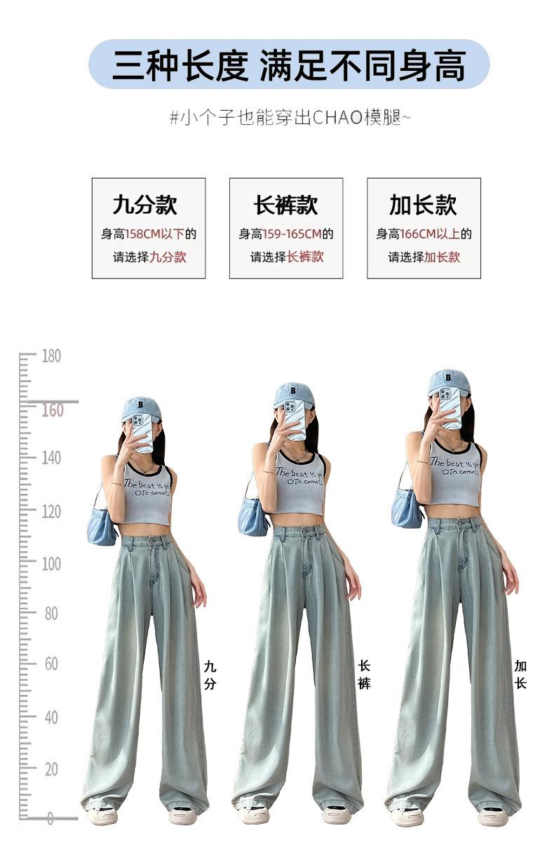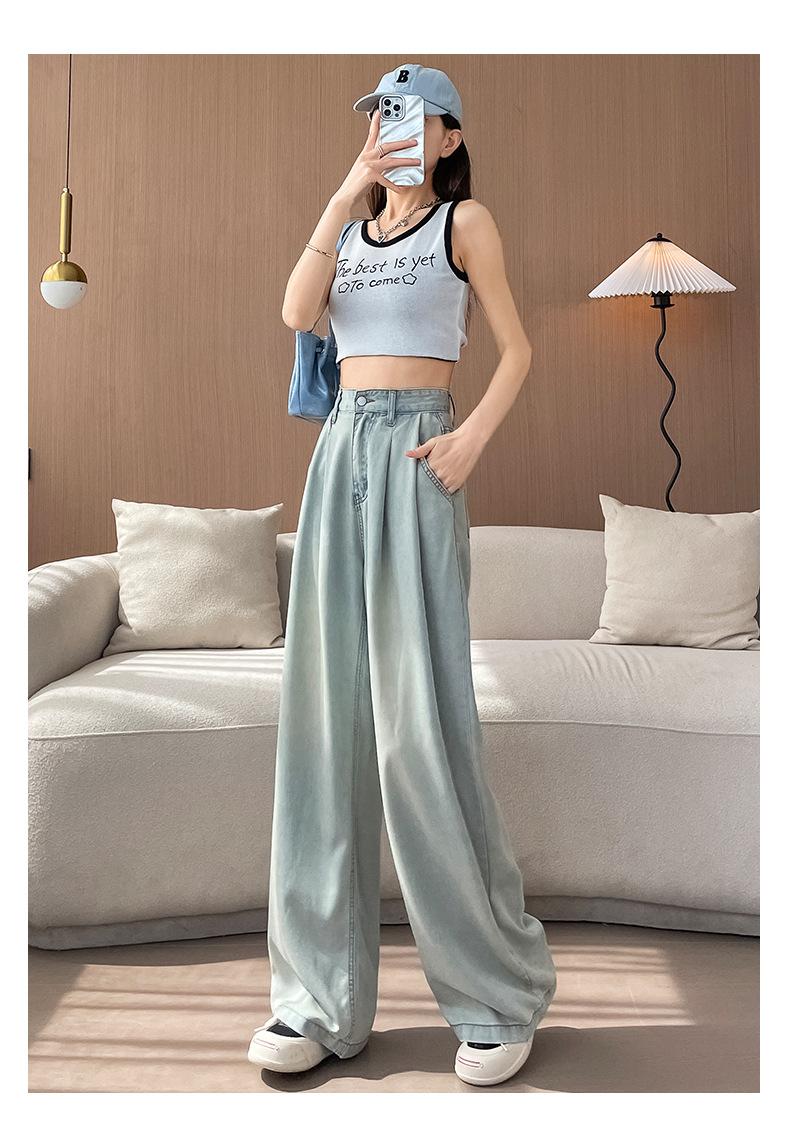 Jeans Tencel de Pierna Ancha de Color Claro para Mujer en Verano, Delgados, de Cintura Alta, Diseño Slim, Pantalones Rectos de Seda Helada hasta el Piso