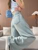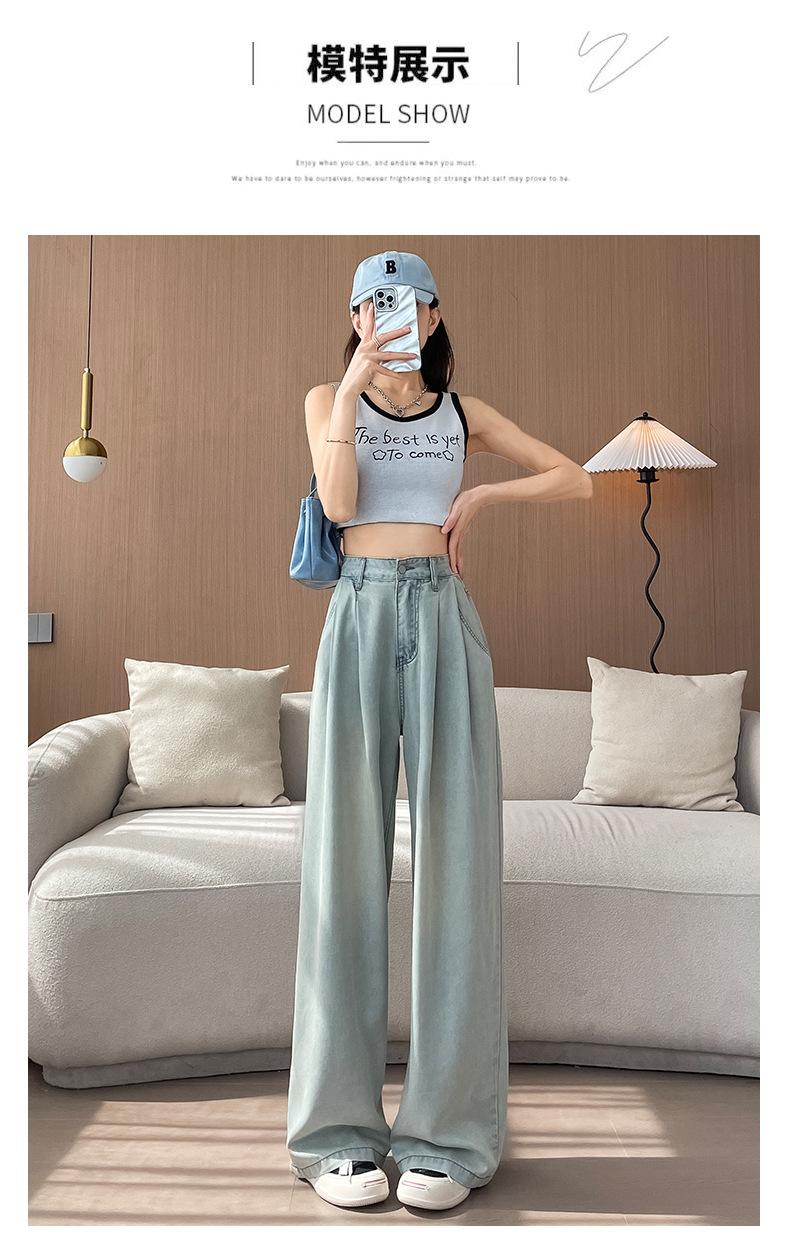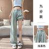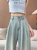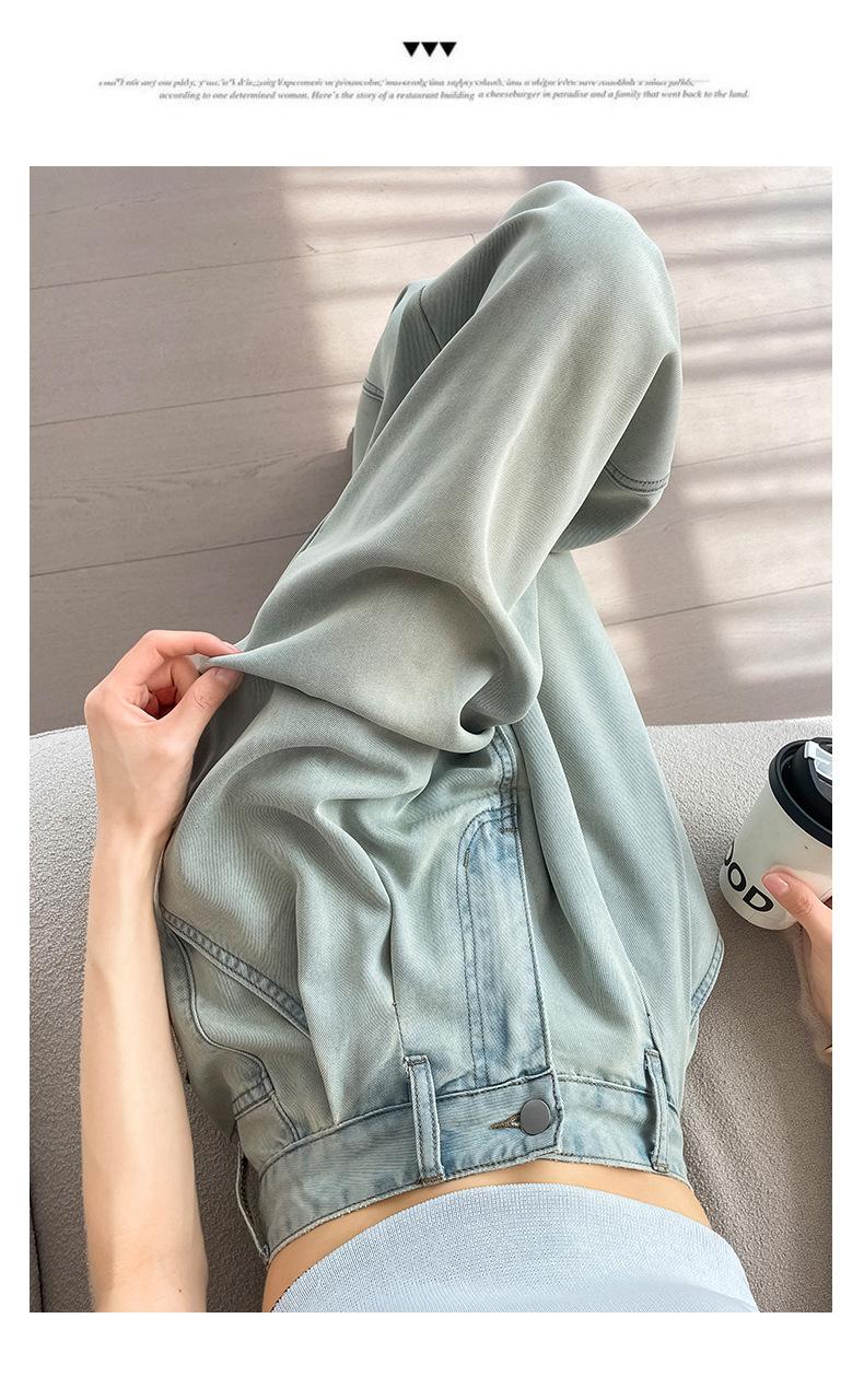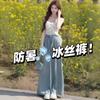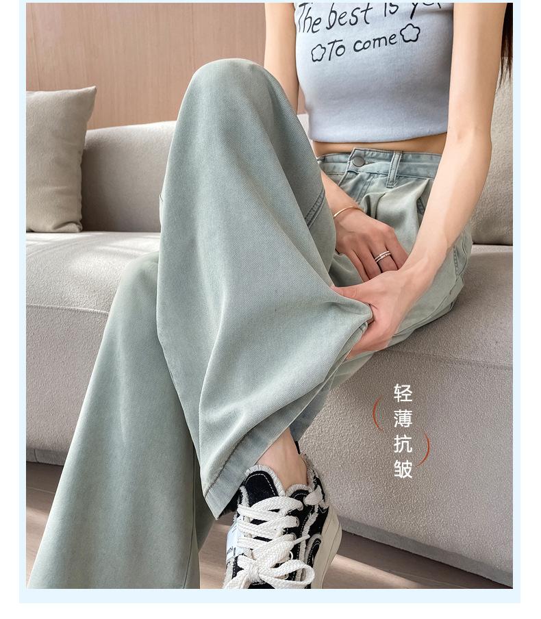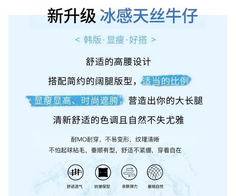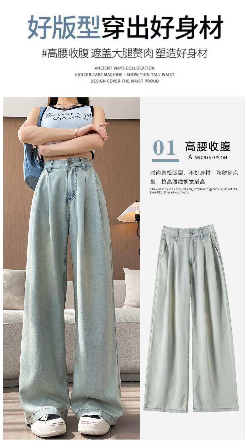 Jeans Tencel de Pierna Ancha de Color Claro para Mujer en Verano, Delgados, de Cintura Alta, Diseño Slim, Pantalones Rectos de Seda Helada hasta el Piso