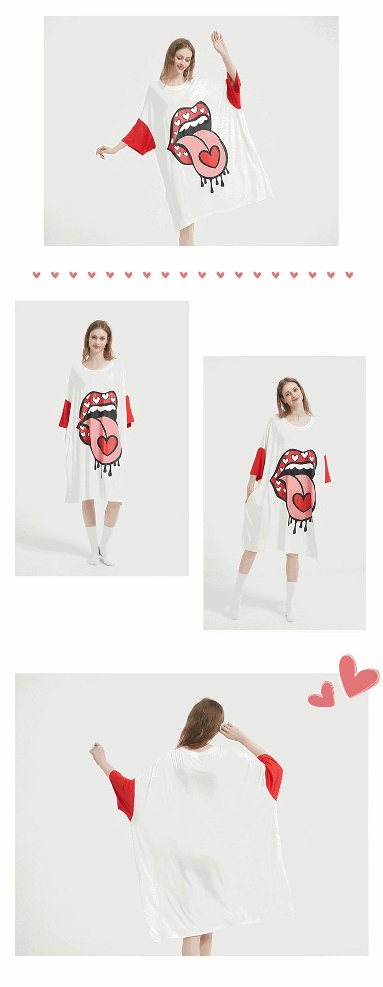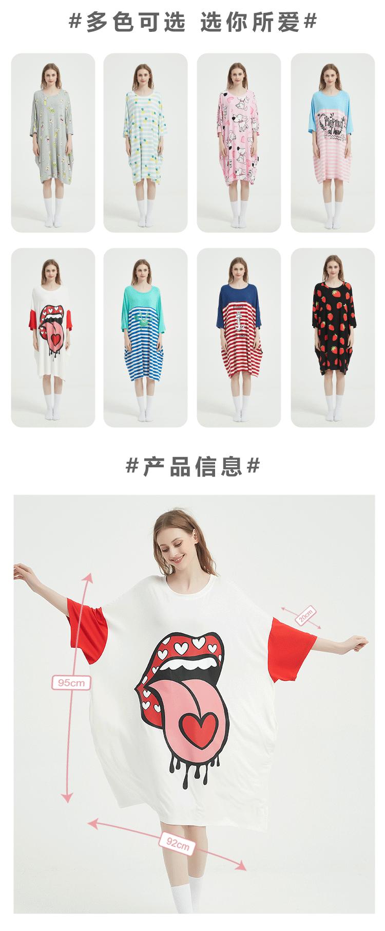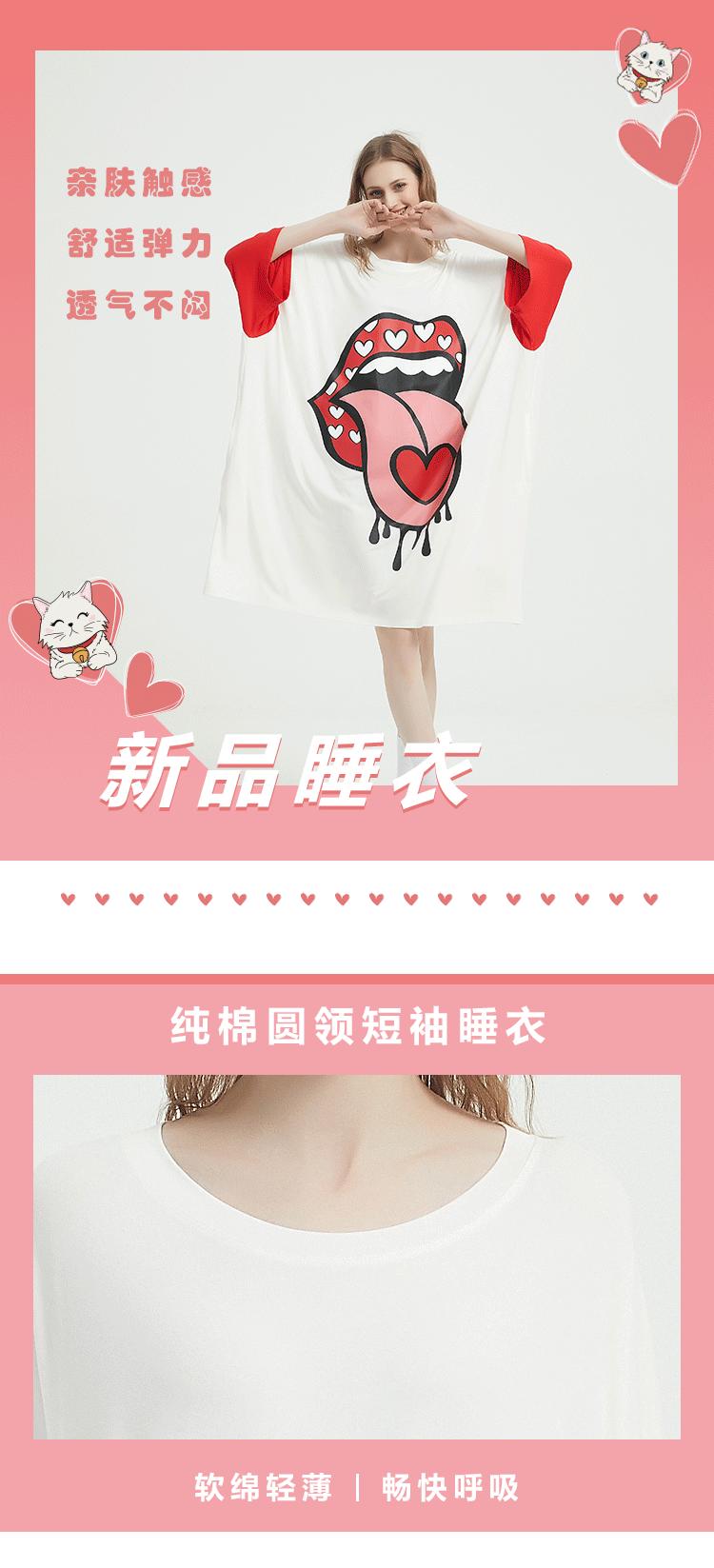 Nuevo Camisón de Verano Cómodo Amazon Talla Grande Lindo Vestido de Dibujos Animados Estampado Ropa Casual para el Hogar Cuello Redondo