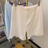 Pantalones anchos de algodón y lino blancos ajustados de cintura alta para mujer, pantalones cortos rectos casuales finos de verano