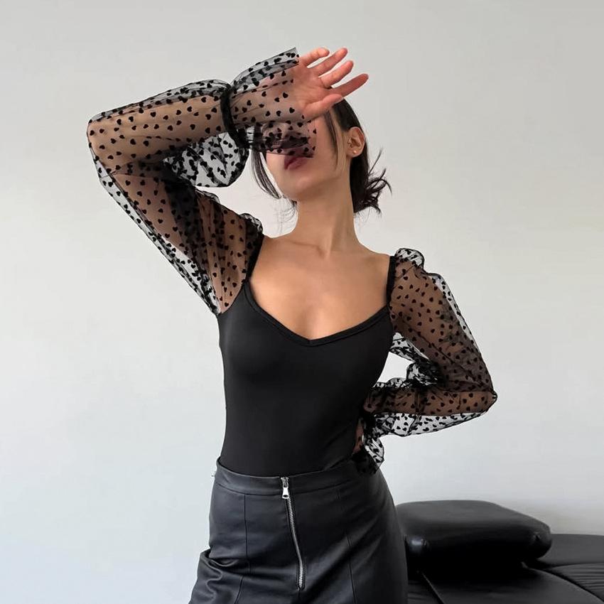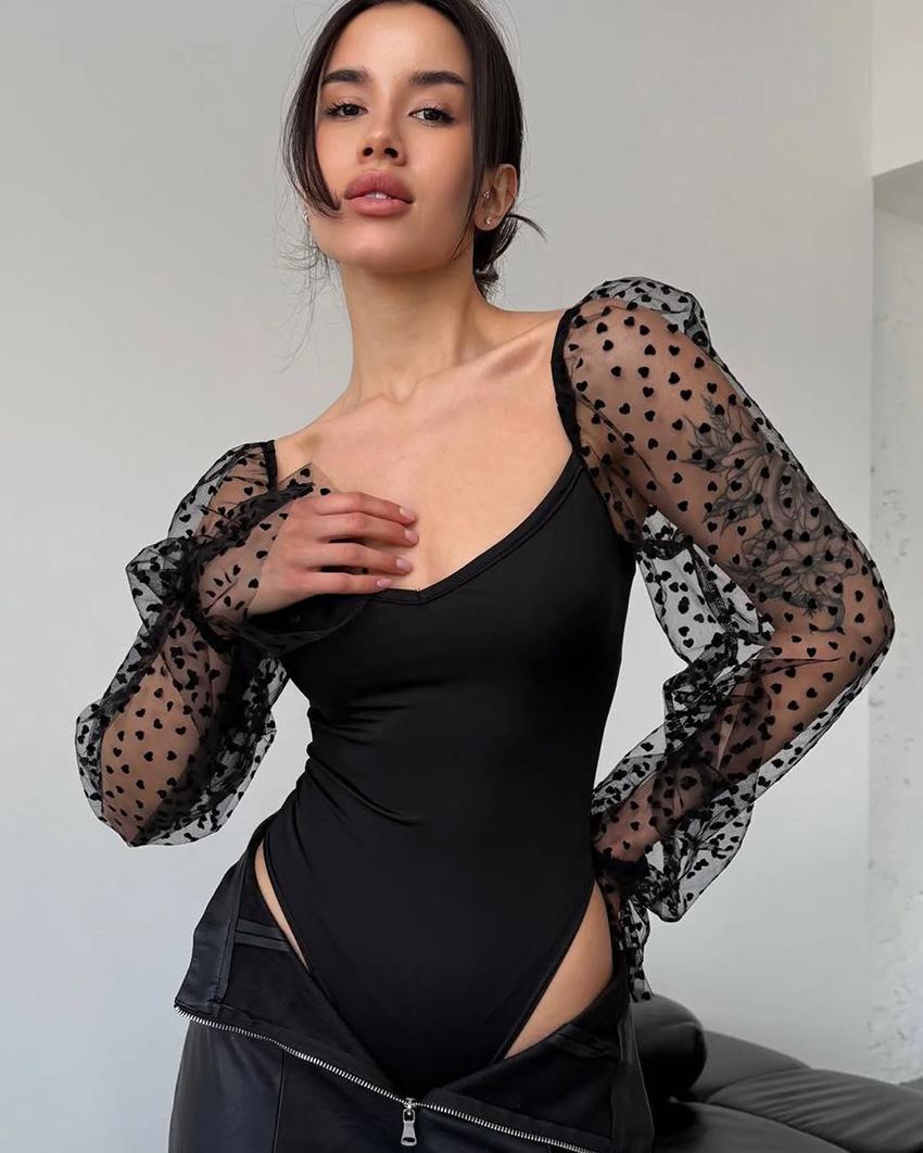 Mono sexy europeo y americano de malla de lunares moldeador de cuerpo para mujer Verano 2025 Transfronterizo de alta gama con cintura Mono Ropa de mujer
