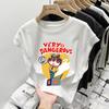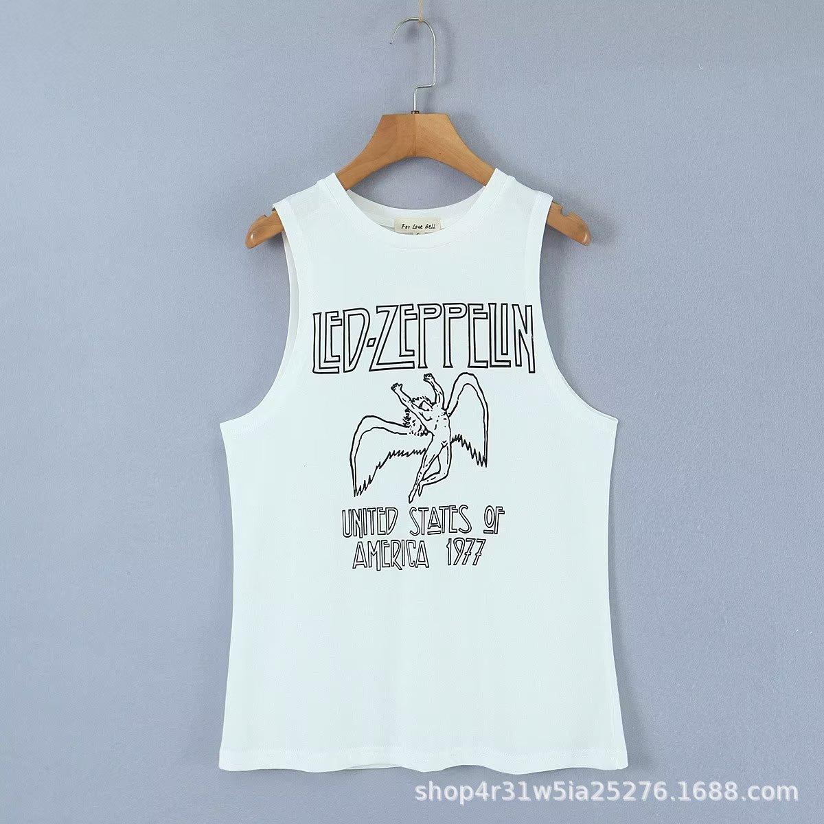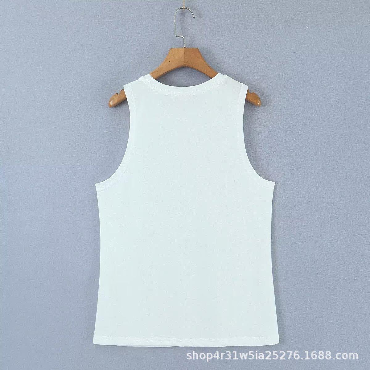 Ropa de Mujer Nueva de Exportación Europea y Americana 2023 Moda Casual Cuello Redondo Alas de Dibujos Animados Estampada Camiseta Blanca Chaleco Venta al por Mayor