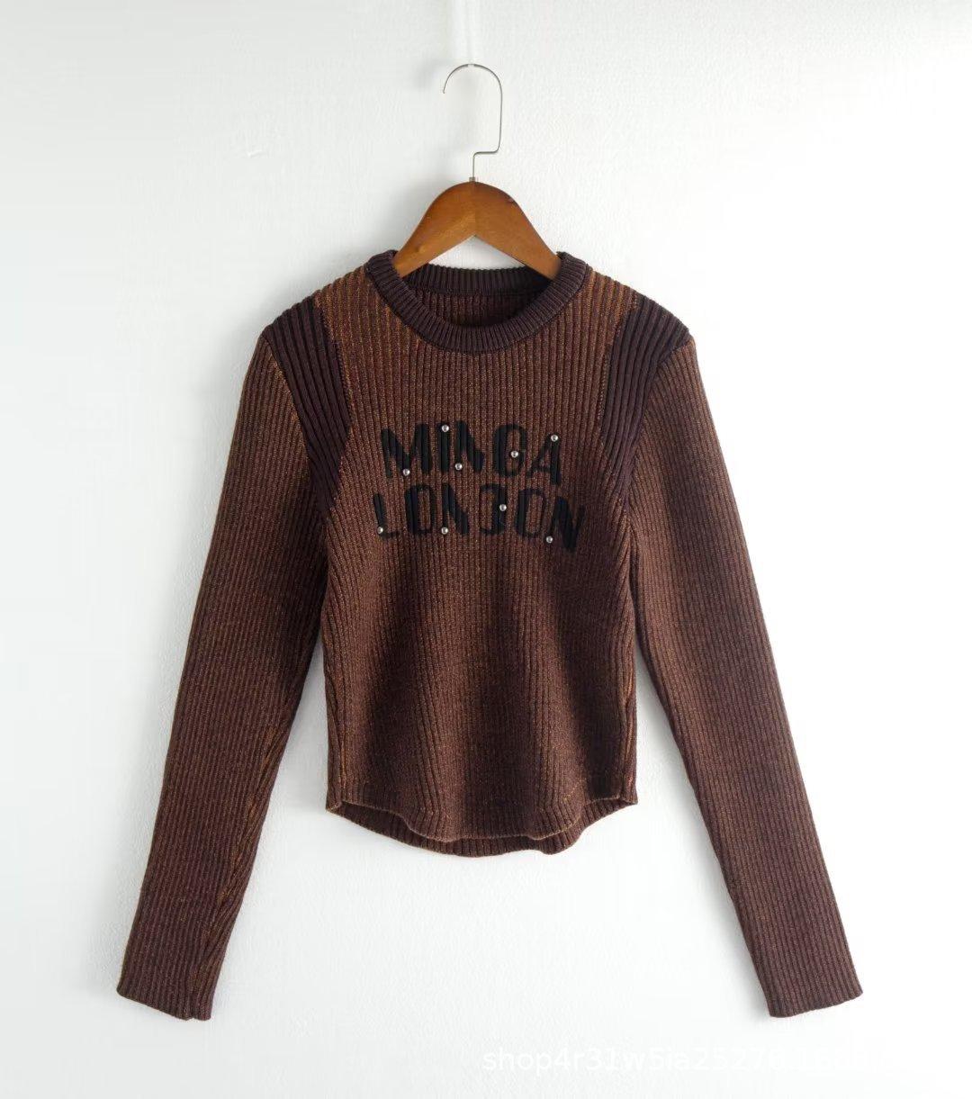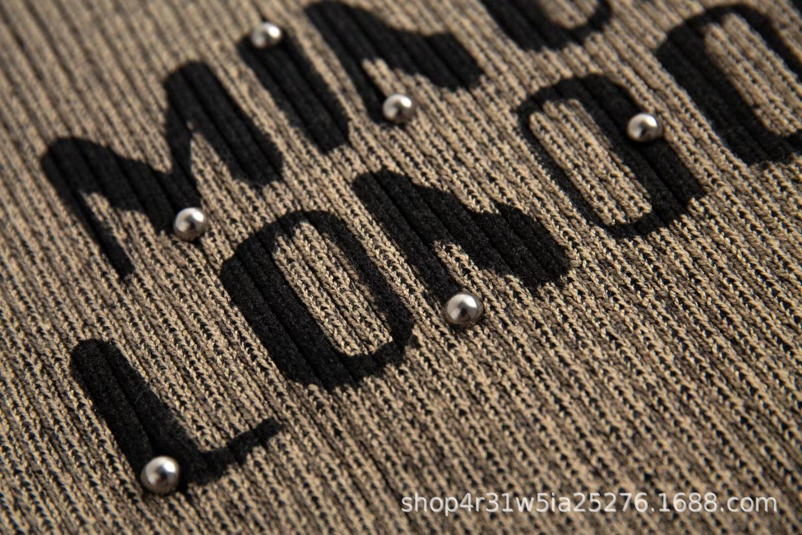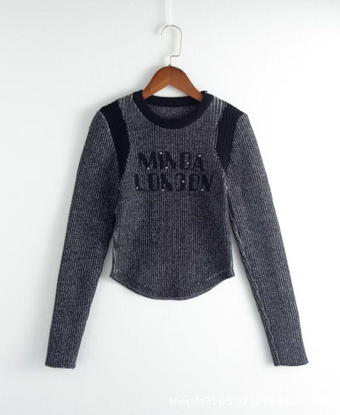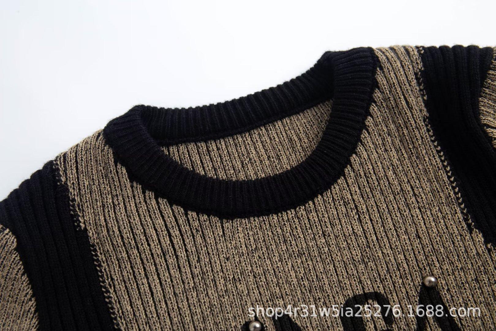 Venta al por mayor transfronteriza Europeo y Americano 2023 Invierno nuevo suéter corto de fondo con remaches y jacquard de letras en color contrastante