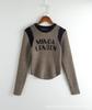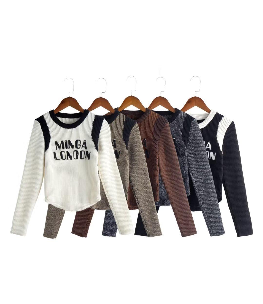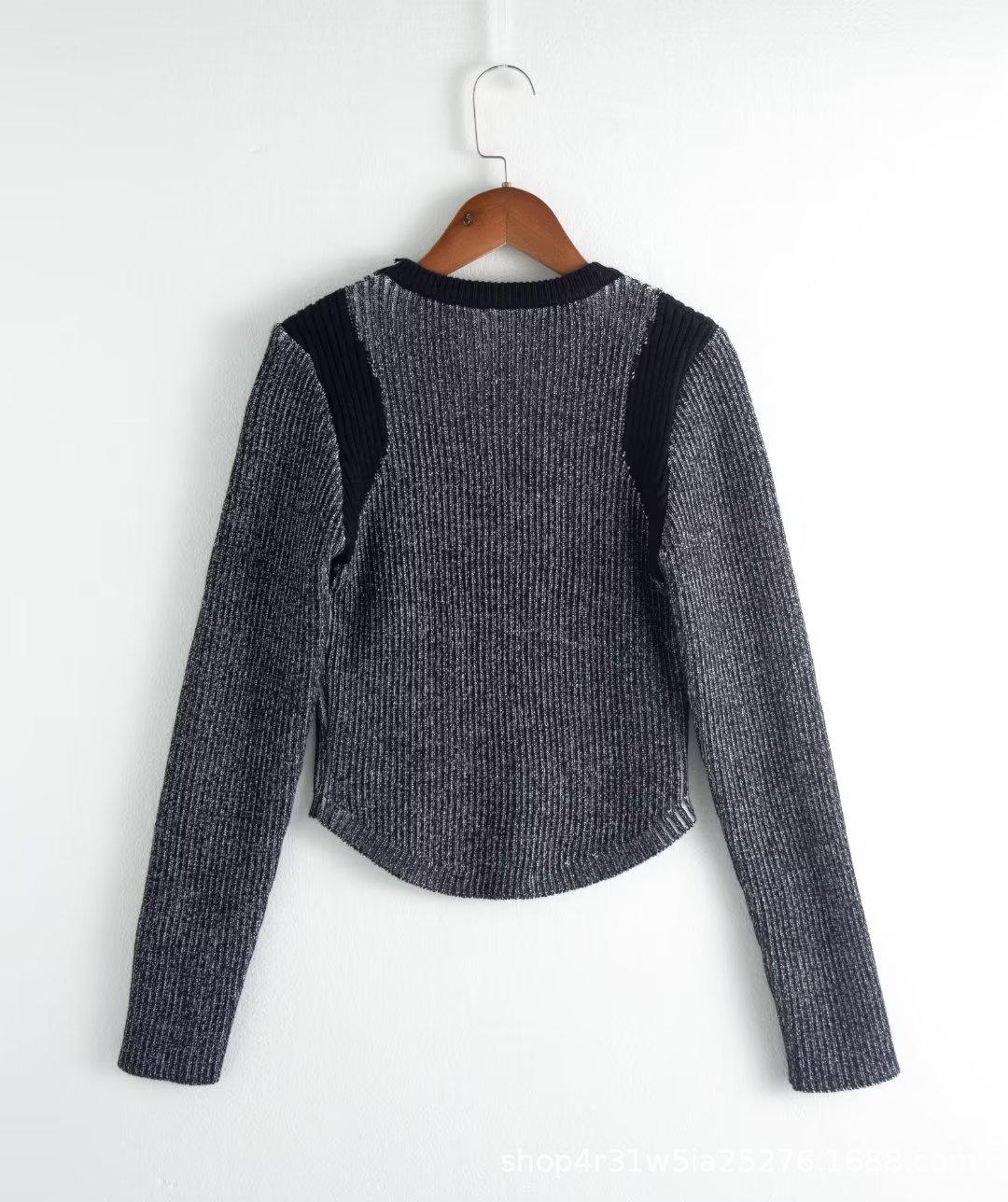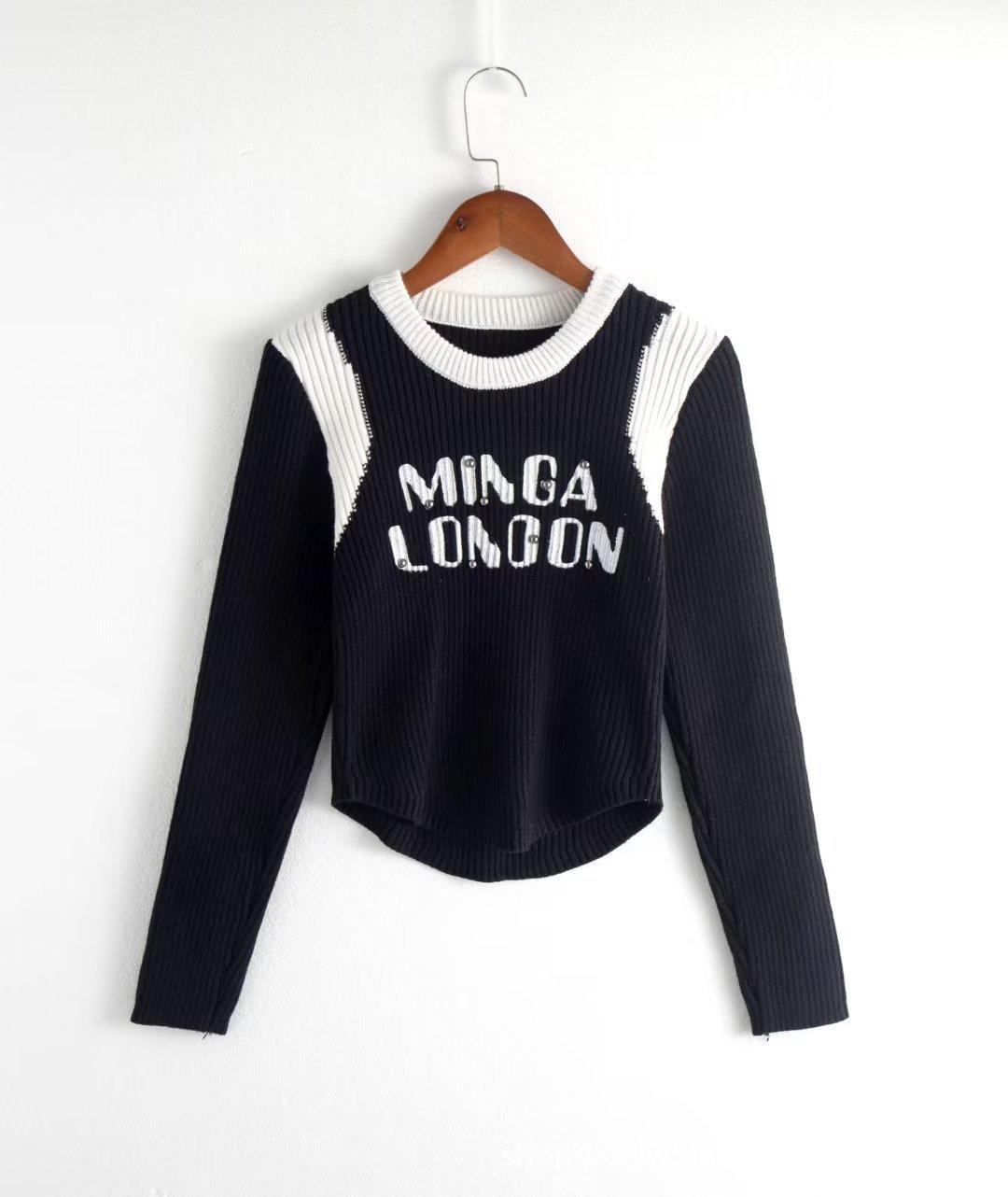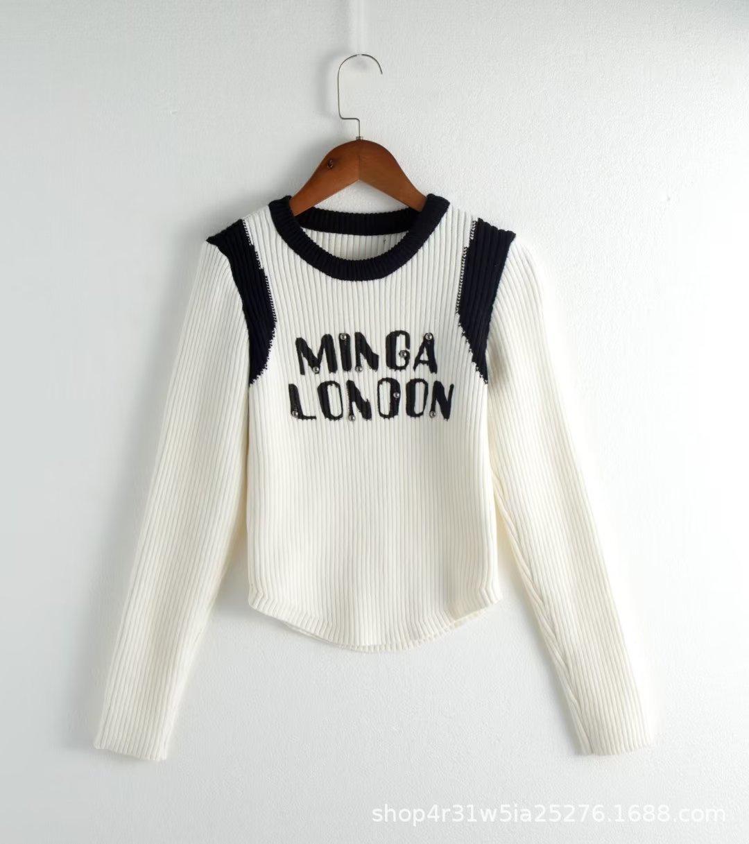 Venta al por mayor transfronteriza Europeo y Americano 2023 Invierno nuevo suéter corto de fondo con remaches y jacquard de letras en color contrastante