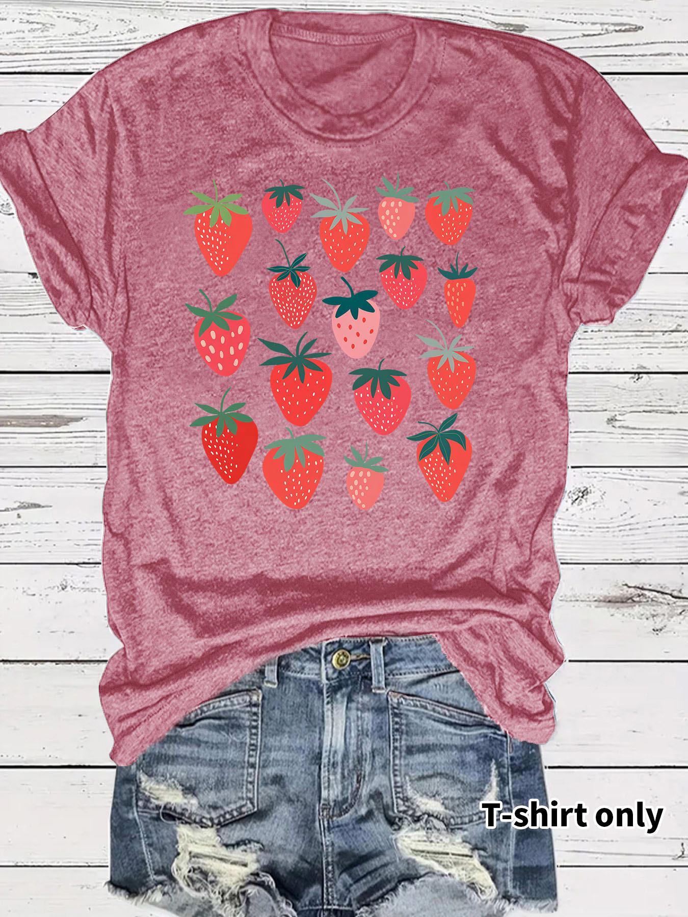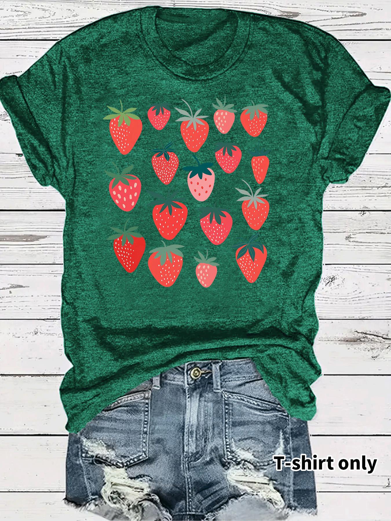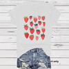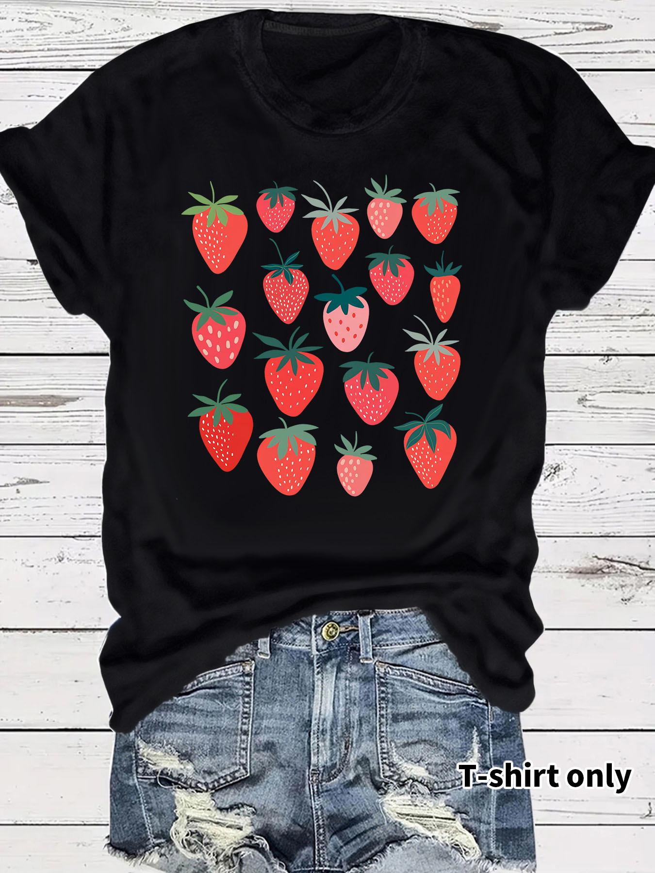 Camiseta de manga corta y cuello redondo europea y americana en stock con estampado de fruta de fresa, verano nueva camiseta cómoda