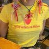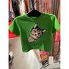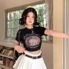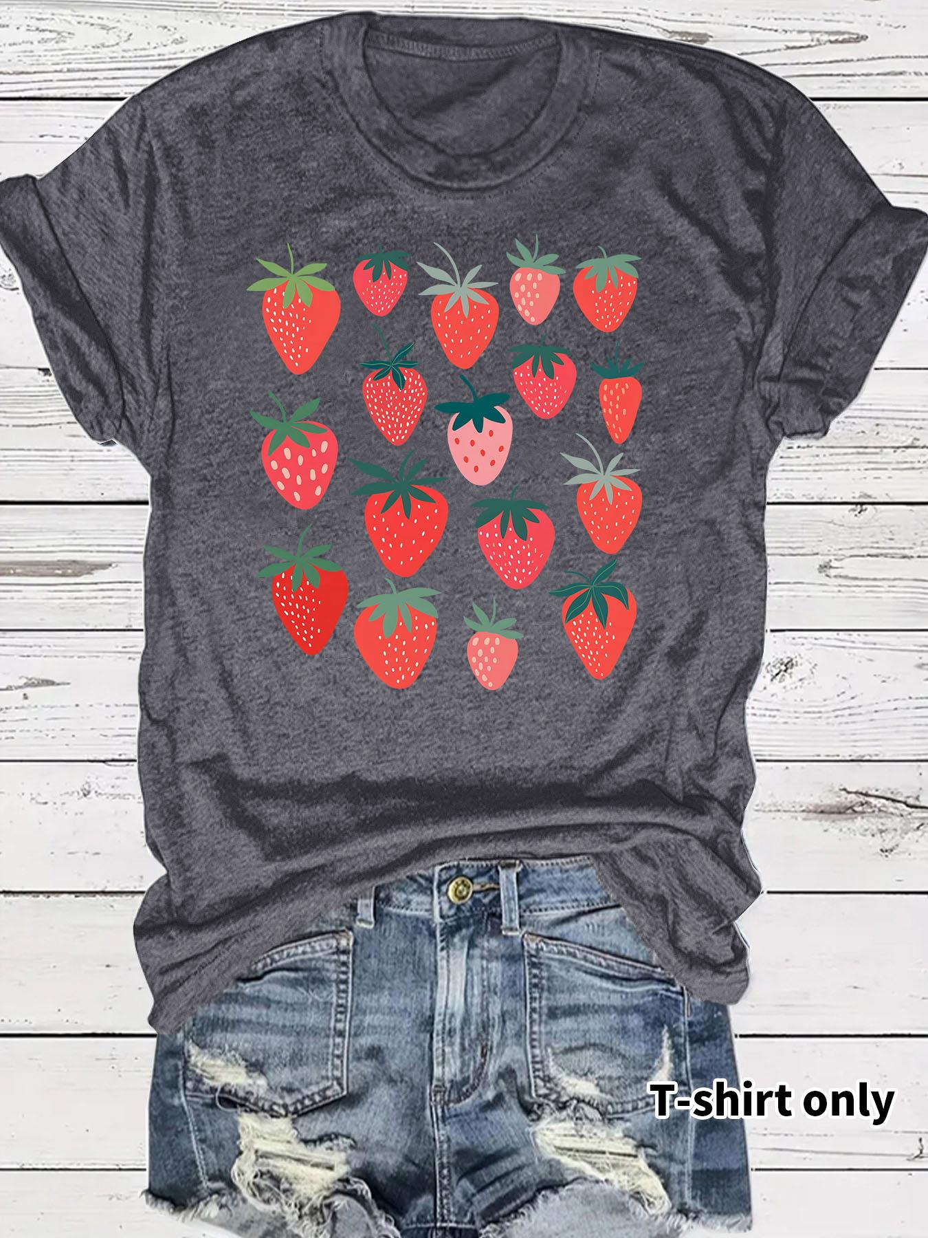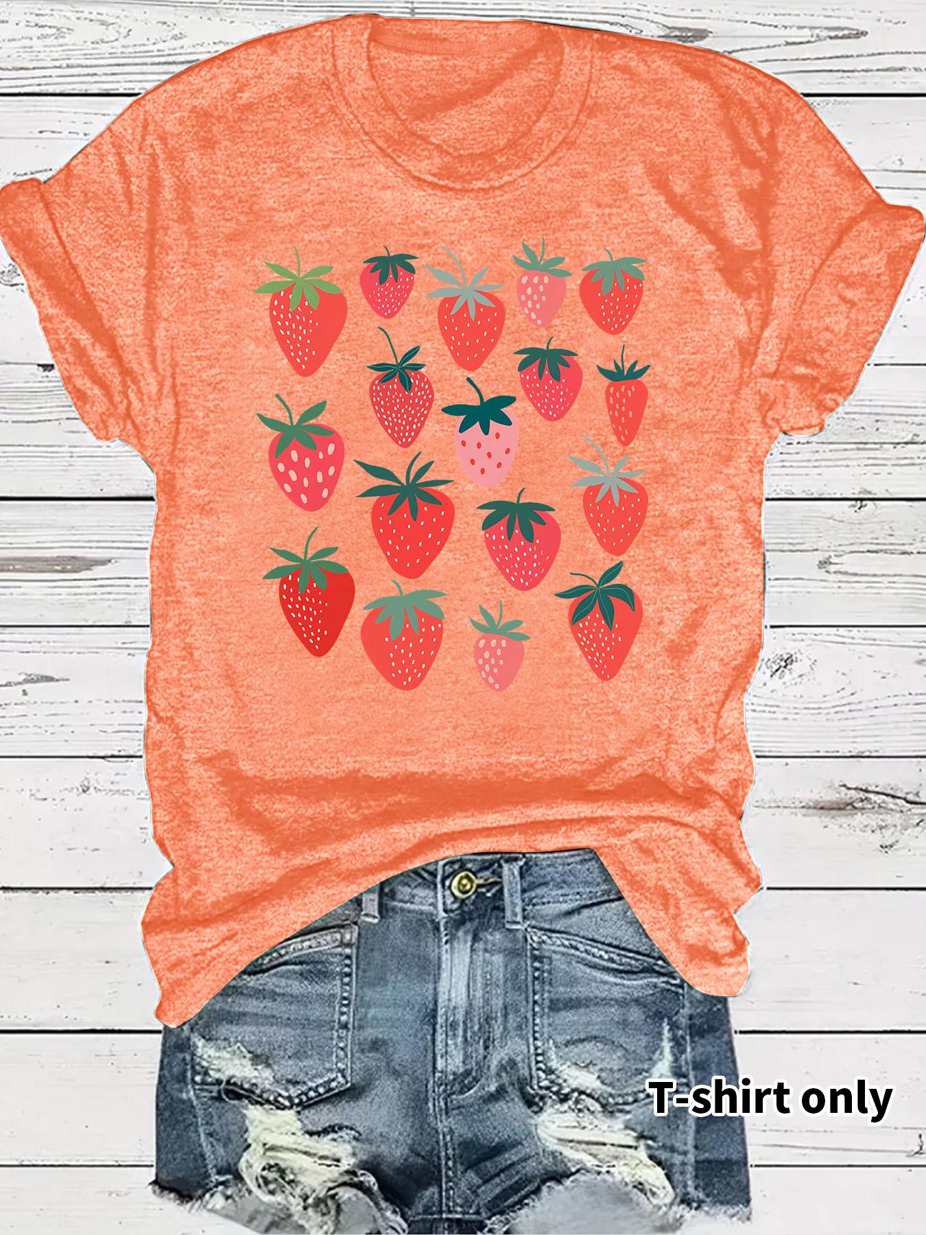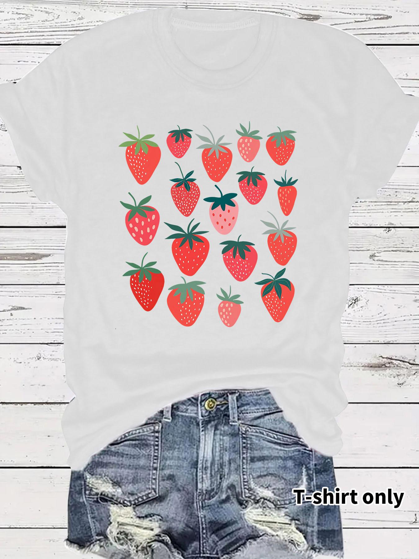 Camiseta de manga corta y cuello redondo europea y americana en stock con estampado de fruta de fresa, verano nueva camiseta cómoda
